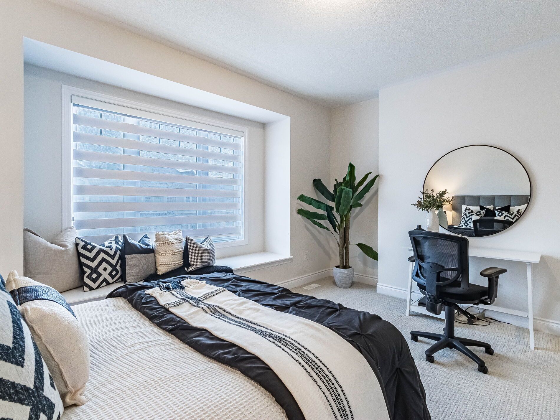 Beautiful valery home with 4 + 1 bedrooms, 5 bathrooms, offering approx. 3400 sq ft including professionally finished basement by the builder. Extensive upgrades including, engineered hardwood flooring, plaster crown moulding throughout main fl and upper hallway, 10 & 9 ceilings, great room with fireplace, upgraded tiles on main fl. Surround system on main fl, beautiful kitchen with quartz counters, quartz backsplash, breakfast counter and top of the line jenn-air ss appliances, gas stove and gas oven.. Enlarged basement windows & rough-in for wet bar. 2nd floor laundry room. All upstairs bedrooms have ensuite bathrooms & the primary bedroom with luxe 5-piece ensuite soaker tub & glass shower. Close to schools, hospital hwy, parks and lots more. Incredible value here! 10+! **extras** some furniture can be included please ask la.