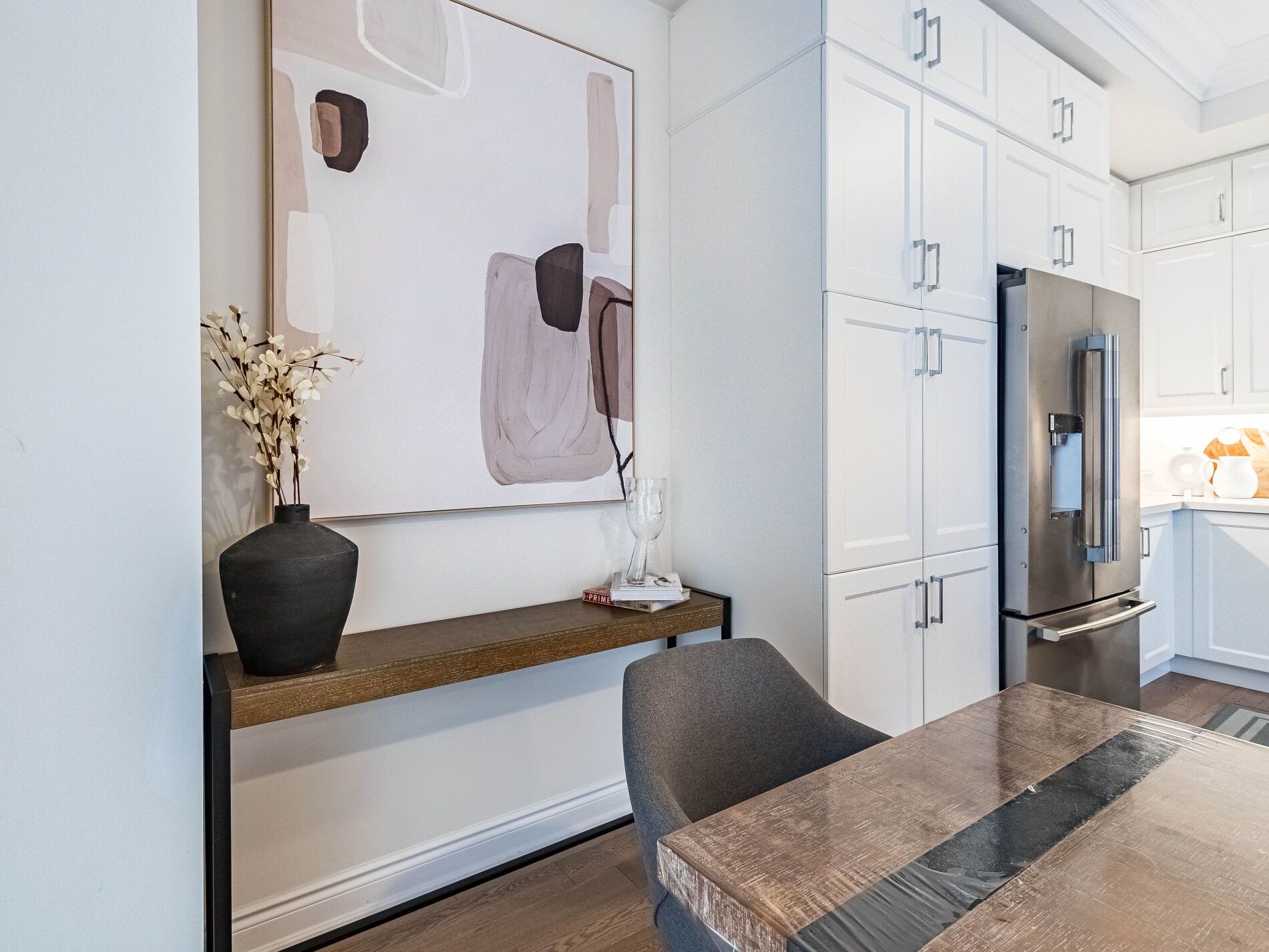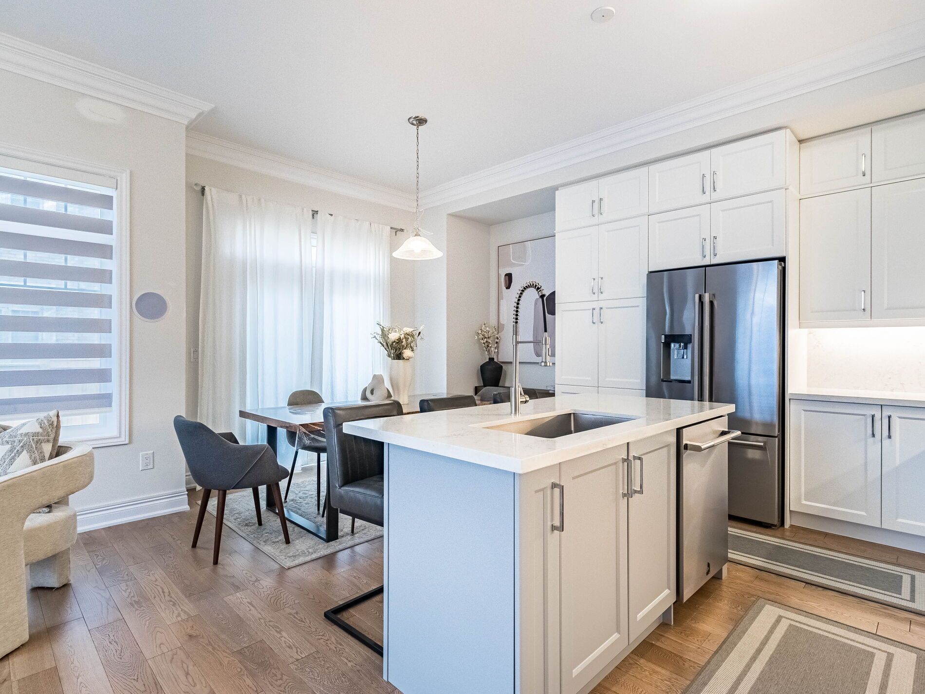 • High-end kitchen features quartz counters and top-of-the-line appliances.