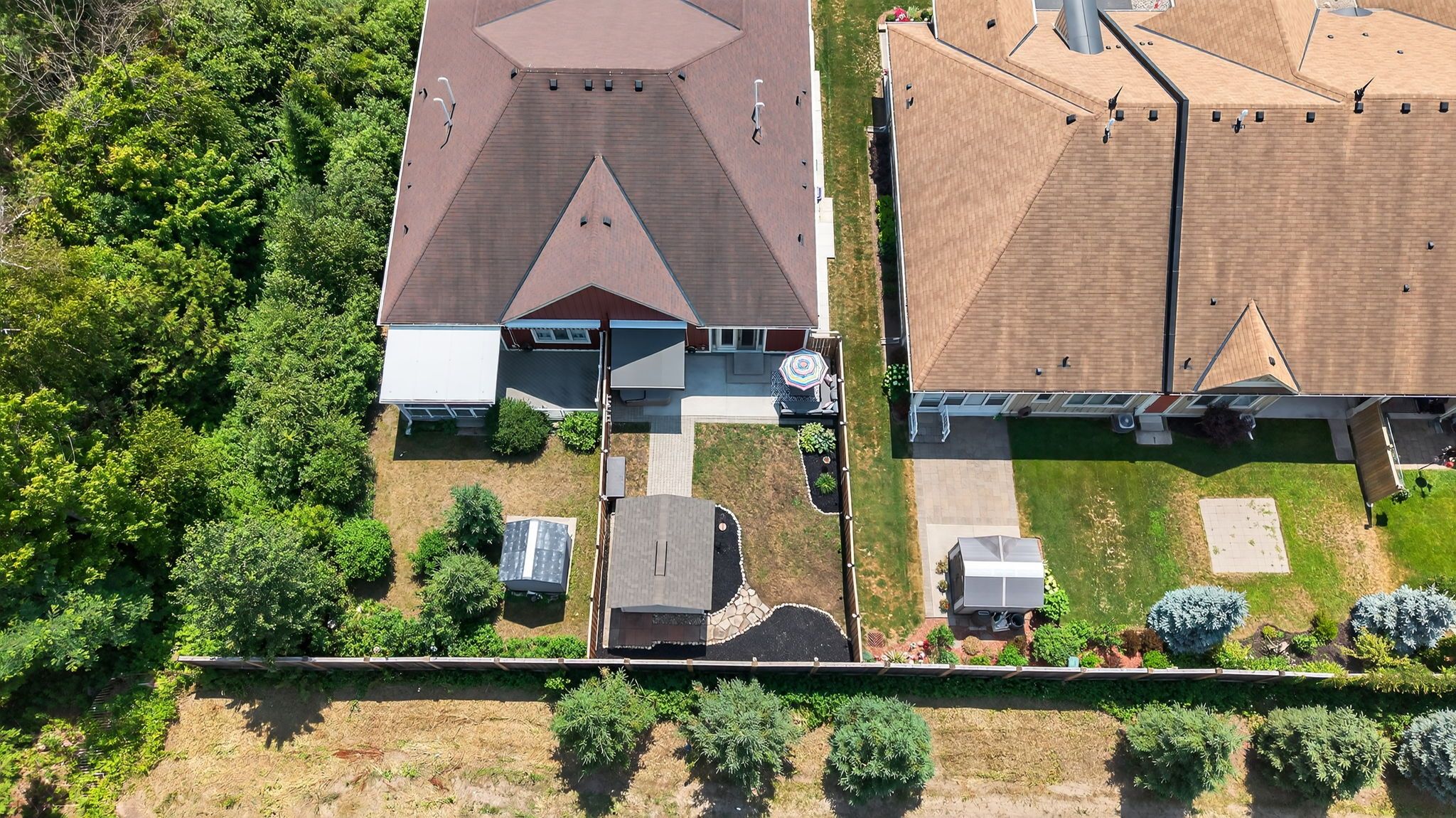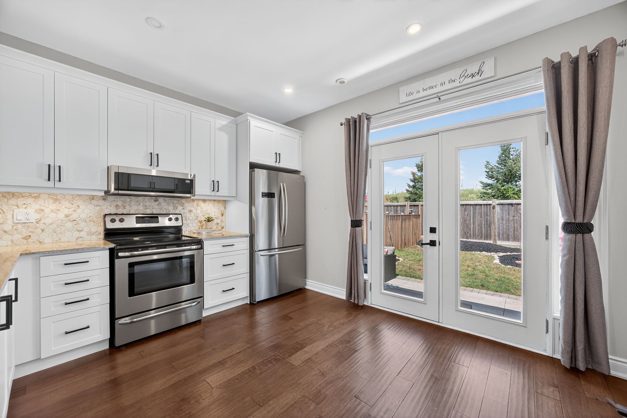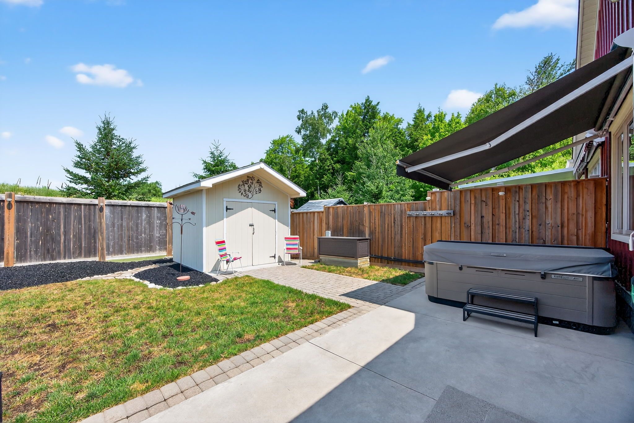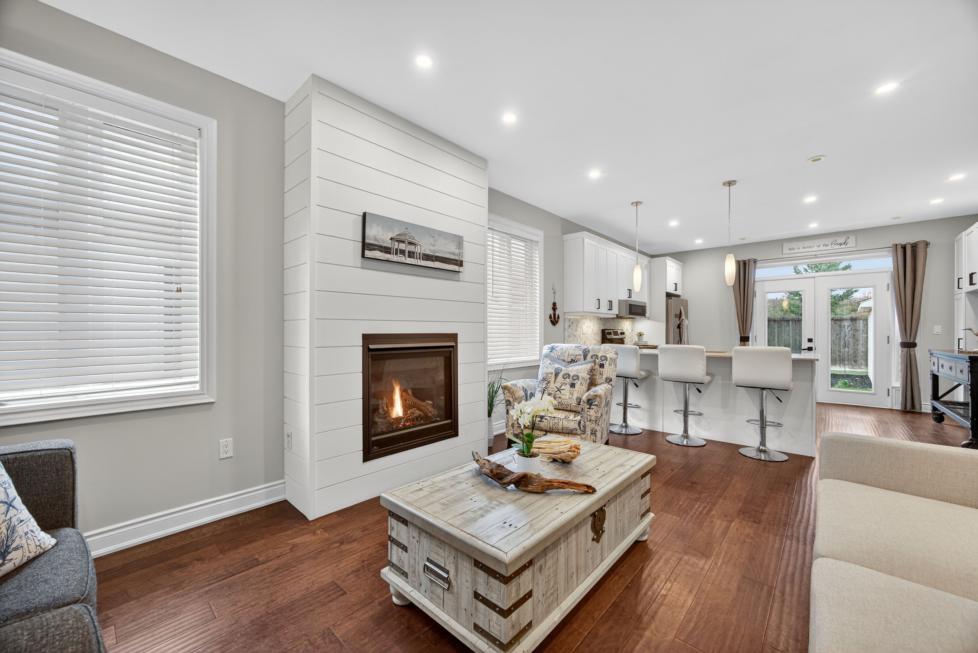 Beautifully finished freehold semi-detached home in wasaga beach offering 2 bedrooms and 2 bathrooms and attached garage! Neutrally painted throughout with 9' ceilings and a spacious kitchen featuring an abundance of cabinetry, a quartz breakfast bar, tiled backsplash, stainless steel appliances and doors leading to a private fenced yard with patio area and shed. The living area features a gas f/p and lots of natural light. The primary suite has 11' vaulted ceilings, an ensuite with shower and walk in closet and the guest bedroom is a great size and has access to a full bathroom. Attached single car garage with inside entry and driveway parking for 2 cars. Hot water is on demand! Located minutes from the beach, shops, restuarants and community centre. Ideal empty nester/retirees home or a weekend getaway for the family and no condo fees!!