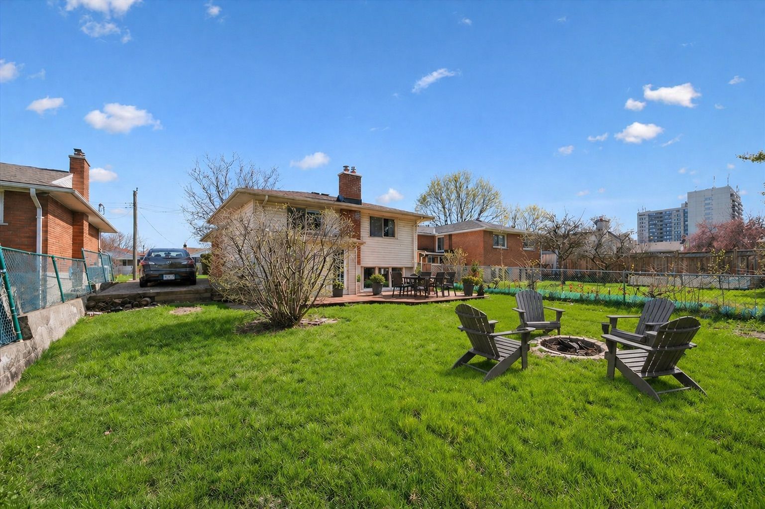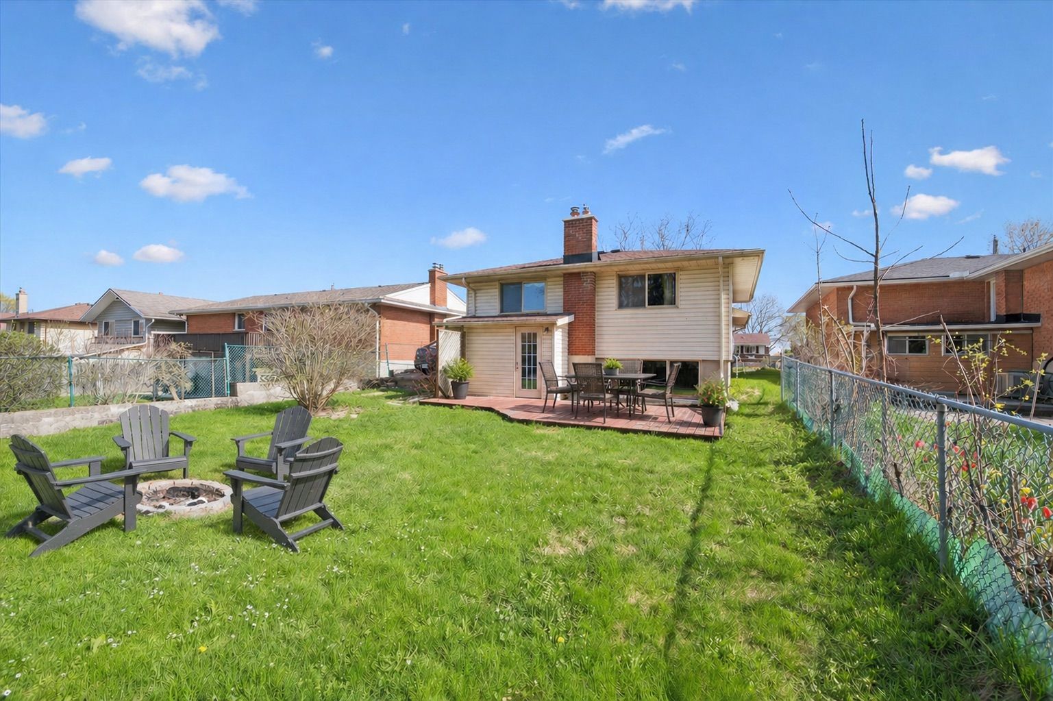 • Large private backyard with a deck for relaxation and gatherings.