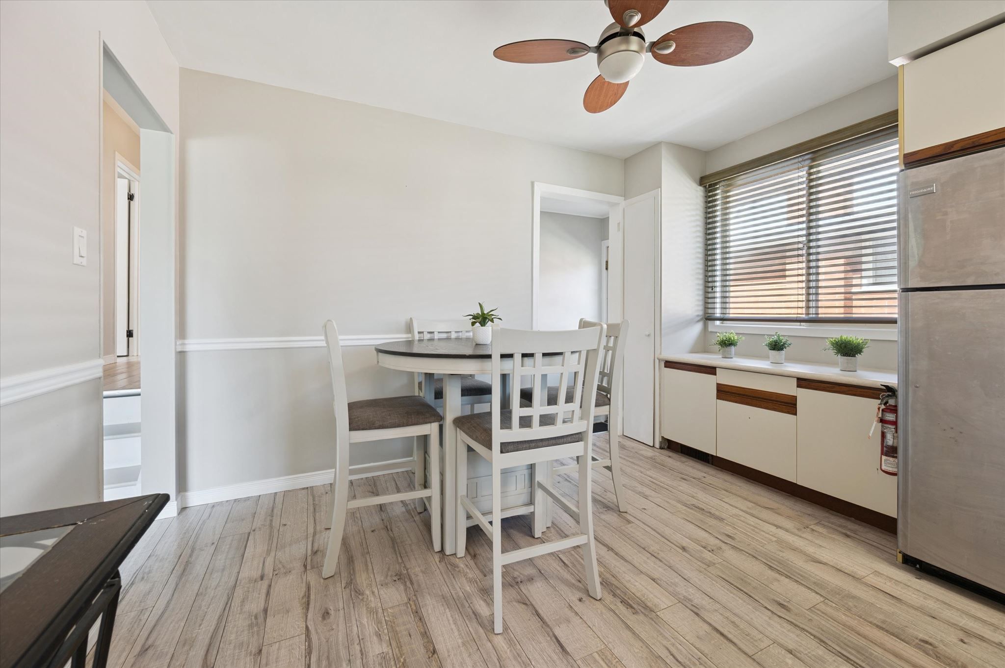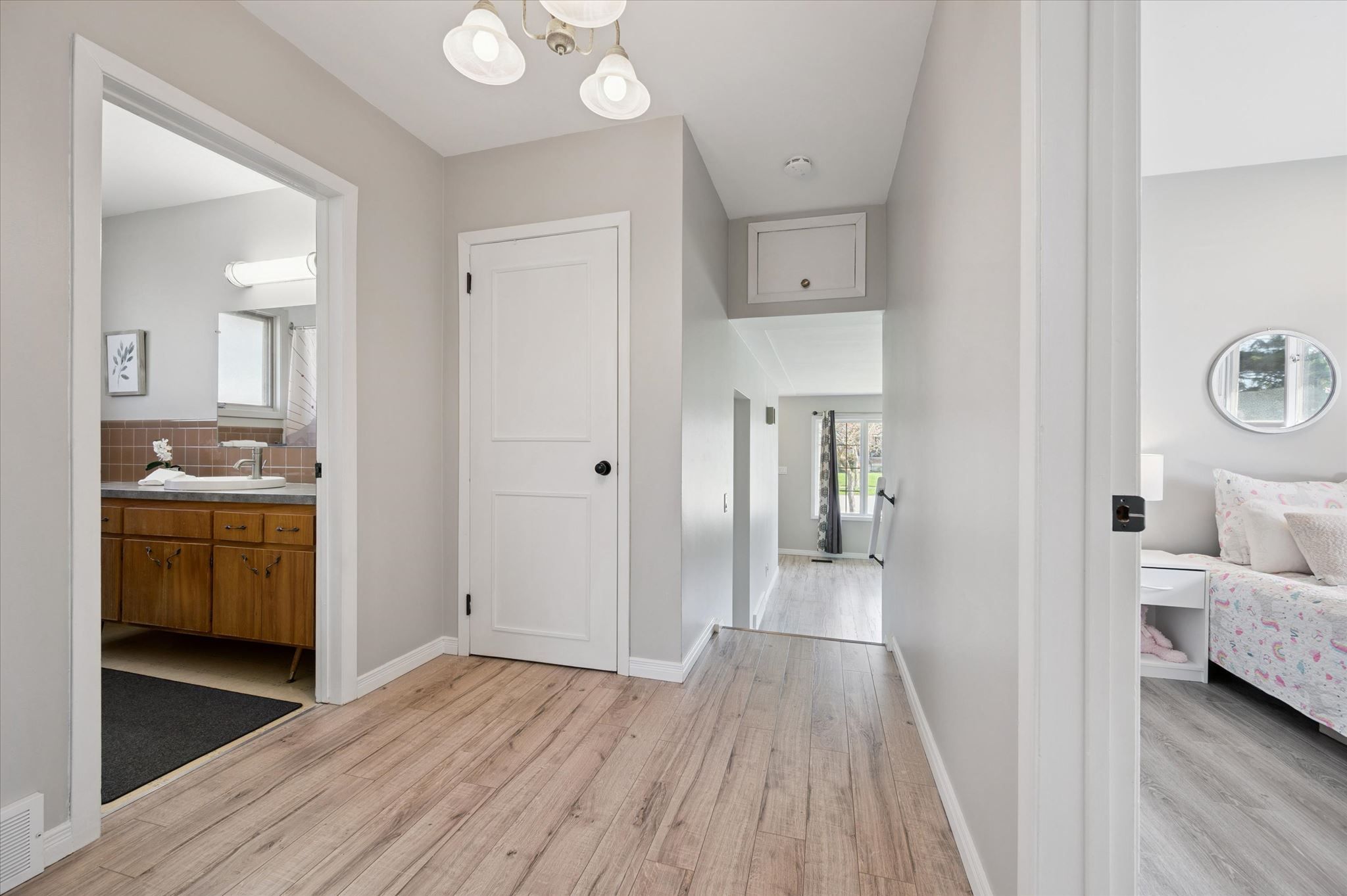 • Three generously sized bedrooms and two full bathrooms upstairs.