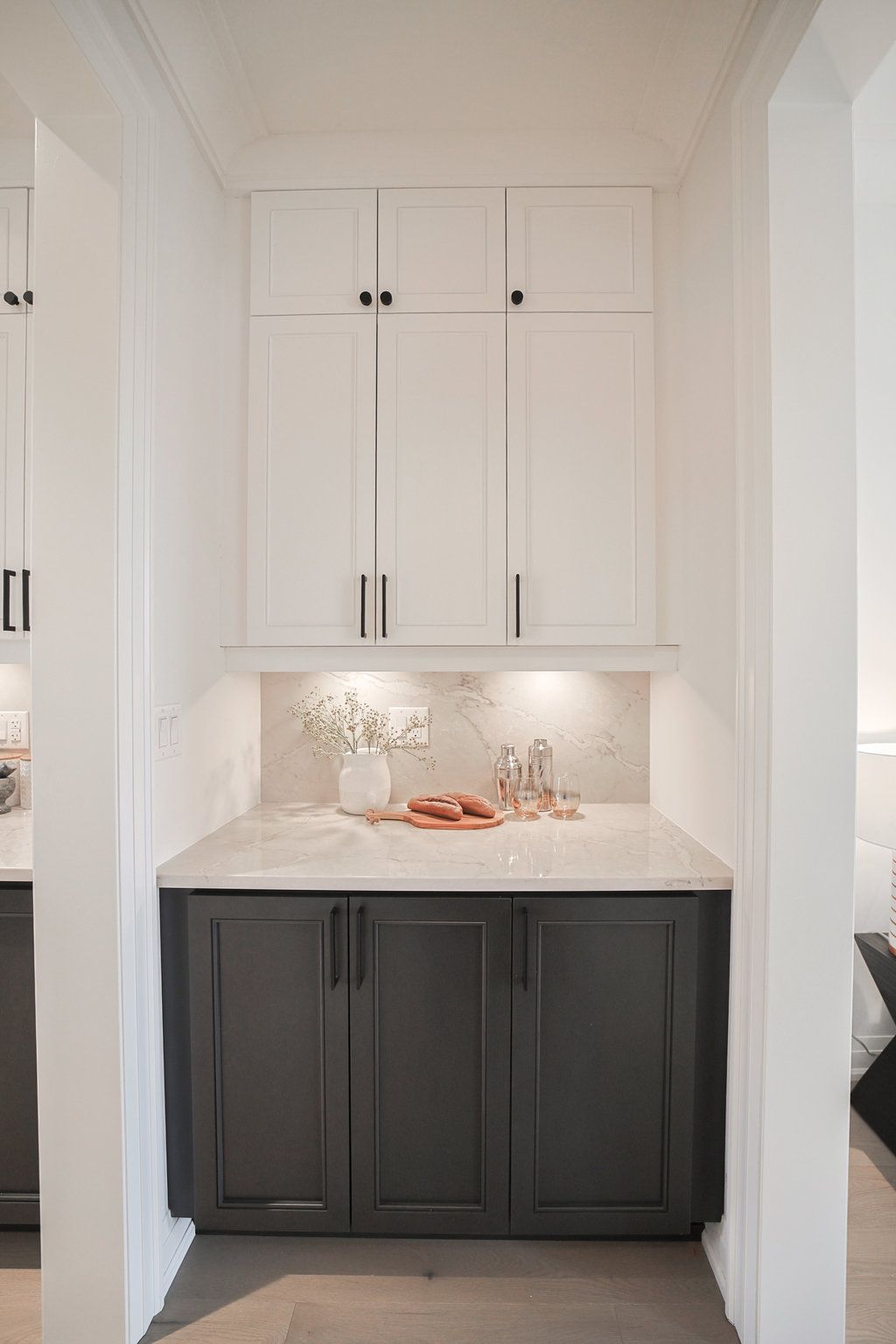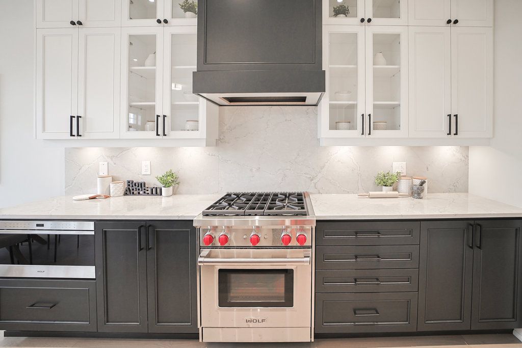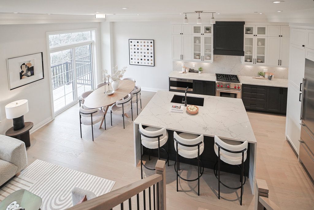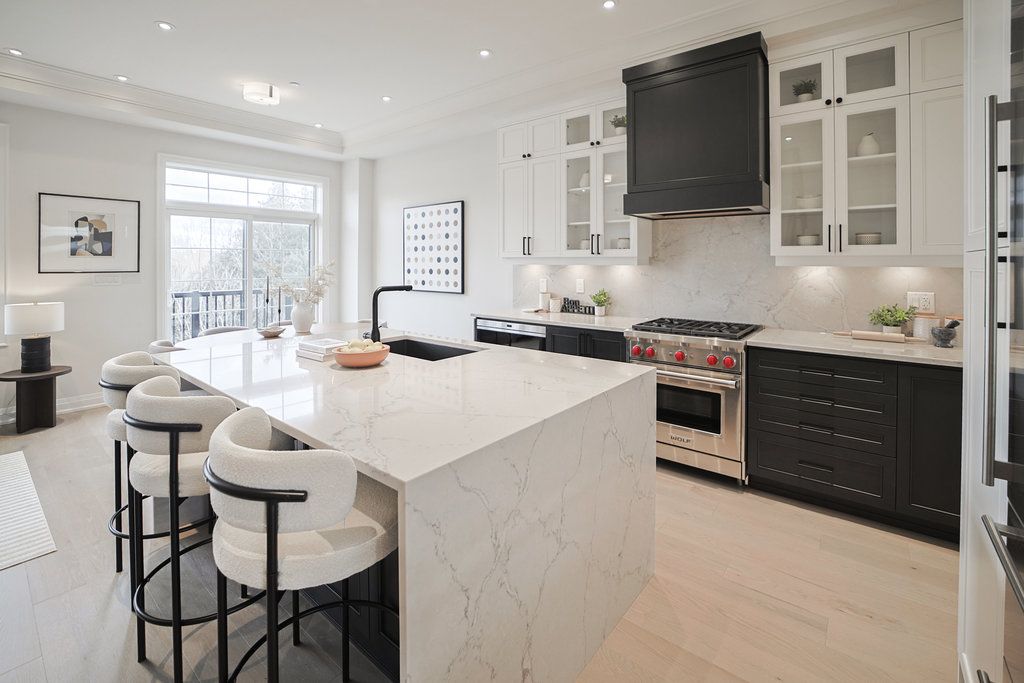 • Custom kitchen features quartz counters, large island, and high-end appliances.