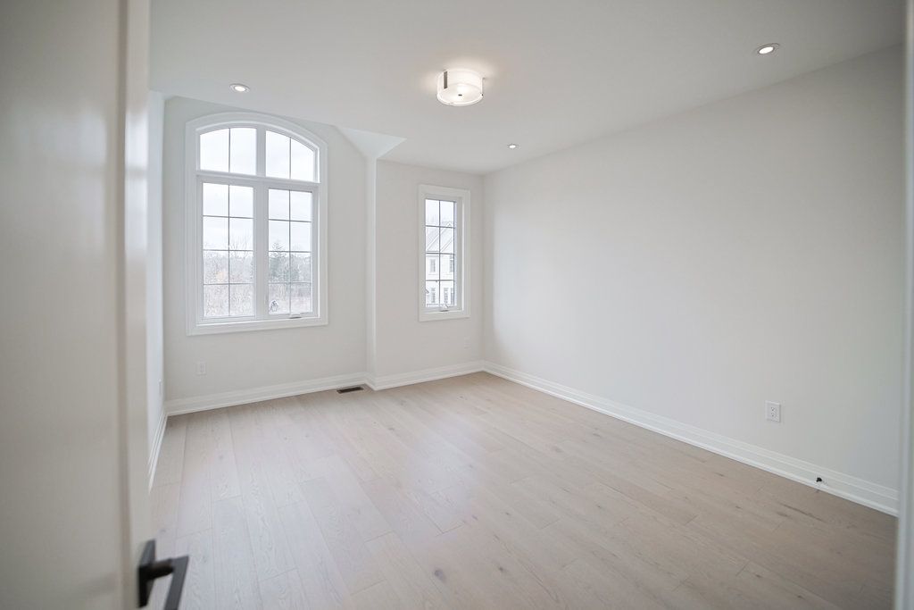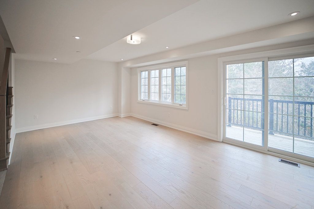 Welcome to this fabulous executive town home built by award winning 'kylemore communities'. Beautiful crescent location with garden backing on to protected forest, steps to walking trails. 3 bedrooms, 2. 5 baths approx. 2535 sq. Ft. Stunning custom two tone kitchen with upper display glass cabinets, box hood canopy, large island with breakfast bar & waterfall feature. Quartz counters & backsplash. Upgraded floor tiles. Built in s/steel sub-zero/wolf/bosch appliances, upgraded sink & faucet, built in panty. Extra cabinets in servery plus walk in pantry. Large living/dining with french doors to front terrace. Walk out to deck from large breakfast family room with modern fireplace. 5" hardwood throughout, hardwood stairs and black iron pickets throughout. Laundry room & recreation room on ground level, access to 2 car garage. Primary bedroom has french door to balcony, his/her closets, ensuite, double sinks, glass shower & built in tub. Unfinished walk out basement with large window, r/in bathroom. Upgraded tiles throughout, 30 pot lights & cornice moldings. Close to walking trails, parkland, recreation centre, transit, angus glen golf course. Good schools. Great neighbourhood!