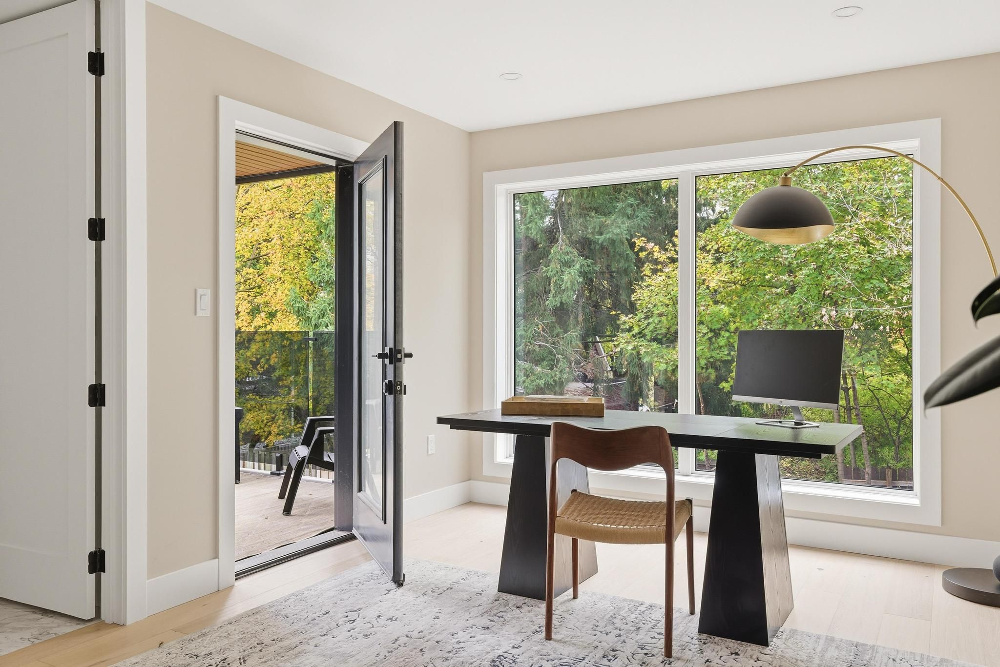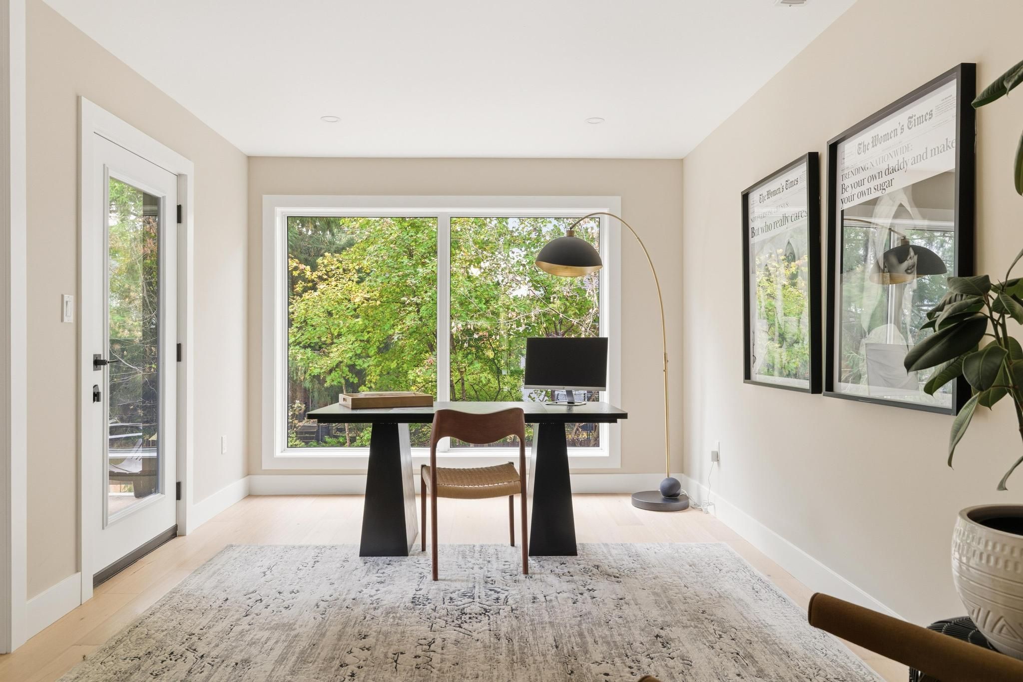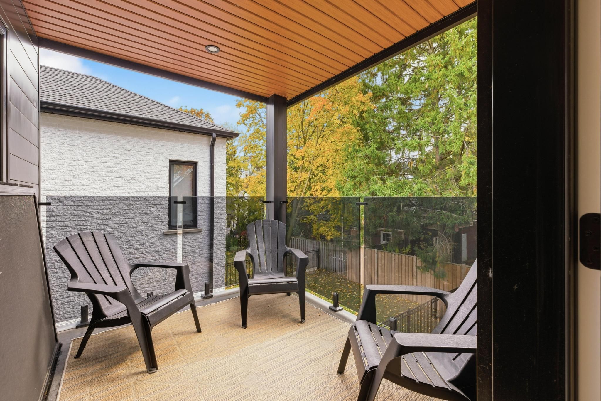 Welcome to 95 williams street, waterloo! Built in 2022 and enhanced with a 2025 main floor renovation, this exceptional home offers over 4,500 sq. Ft. Of finished living space with 5 bedrooms and 5 bathrooms. Located in the heart of uptown waterloo, you're minutes from google, top schools, parks, trails, restaurants, shops, and transit. The bright, open-concept main floor is designed for modern living and entertaining, featuring 9' ceilings, pot lights, and large windows that flood the space with natural light. The updated layout improves flow and functionality, anchored by a chef-inspired kitchen with quartz countertops, modern cabinetry, stainless steel appliances, and a large island. The living room with gas fireplace connects seamlessly to the dining area, with walkout access to the deck for easy indoor-outdoor living. The second floor offers three spacious bedrooms, including two with a jack-and-jill bathroom, plus a bright home office with balcony access, a powder room, and a dedicated laundry room. The third floor is a private retreat with a luxurious primary suite featuring a walk-in closet and a 5-piece ensuite with double sinks, marble flooring, glass shower, and soaker tub. A versatile great room on this level is perfect for a lounge, office, or studio. The finished basement adds flexibility with a fifth bedroom, 4-piece bathroom, and large rec room-ideal for guests or extended family. Enjoy a fully fenced, low-maintenance backyard with a spacious deck. Built with quality throughout, features include 16" engineered floor joists, 6" european white oak hardwood, two-zone hvac, steel roof, and an extra-high garage ready for a car lift. A rare opportunity in one of waterloo's most sought-after neighbourhoods.