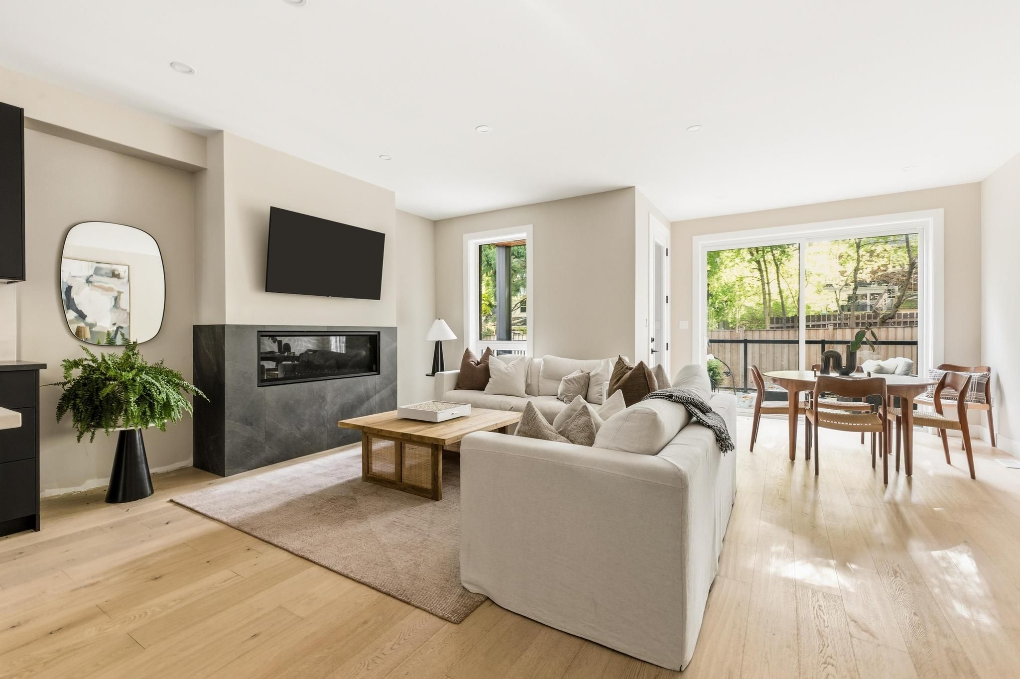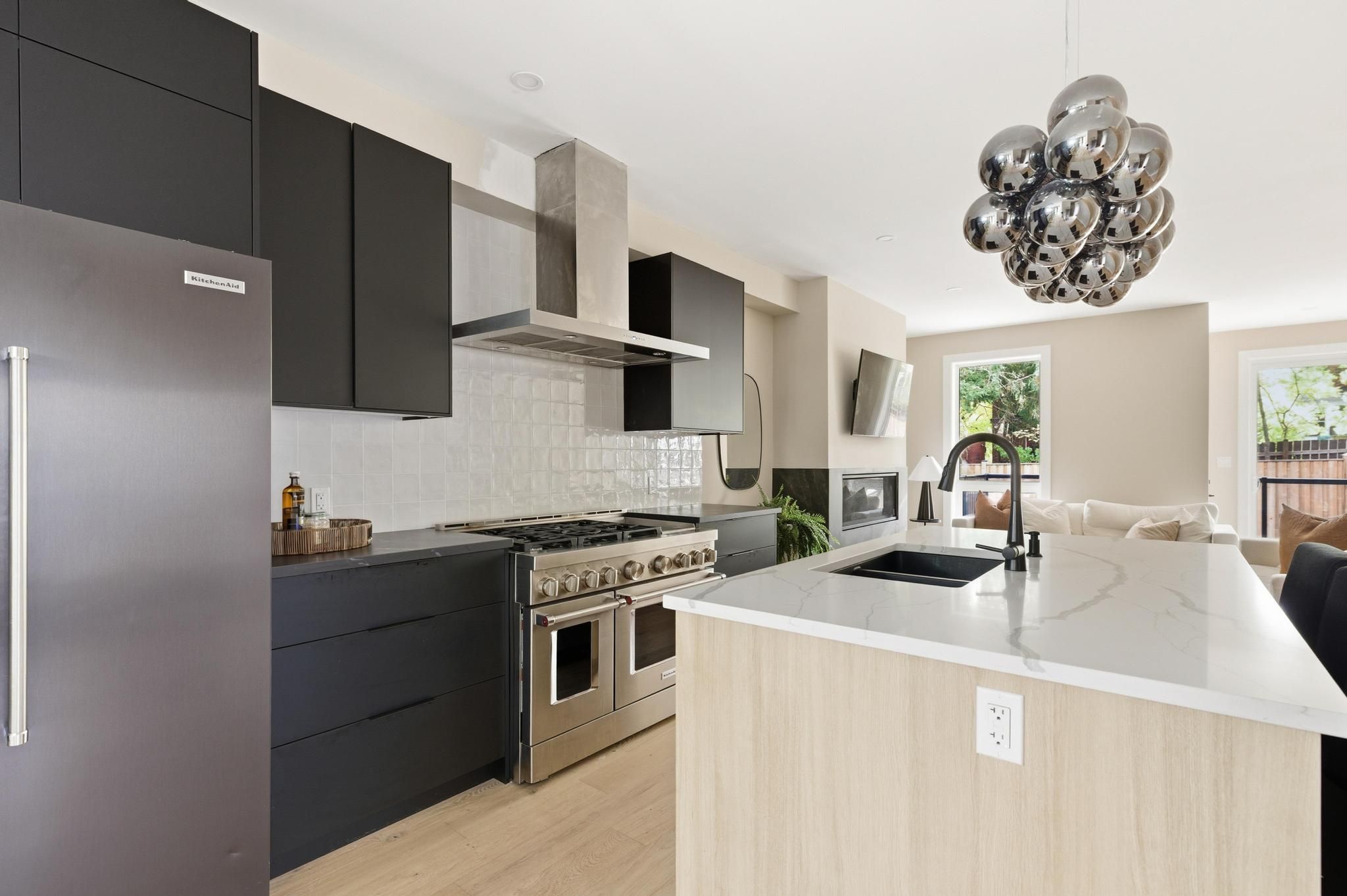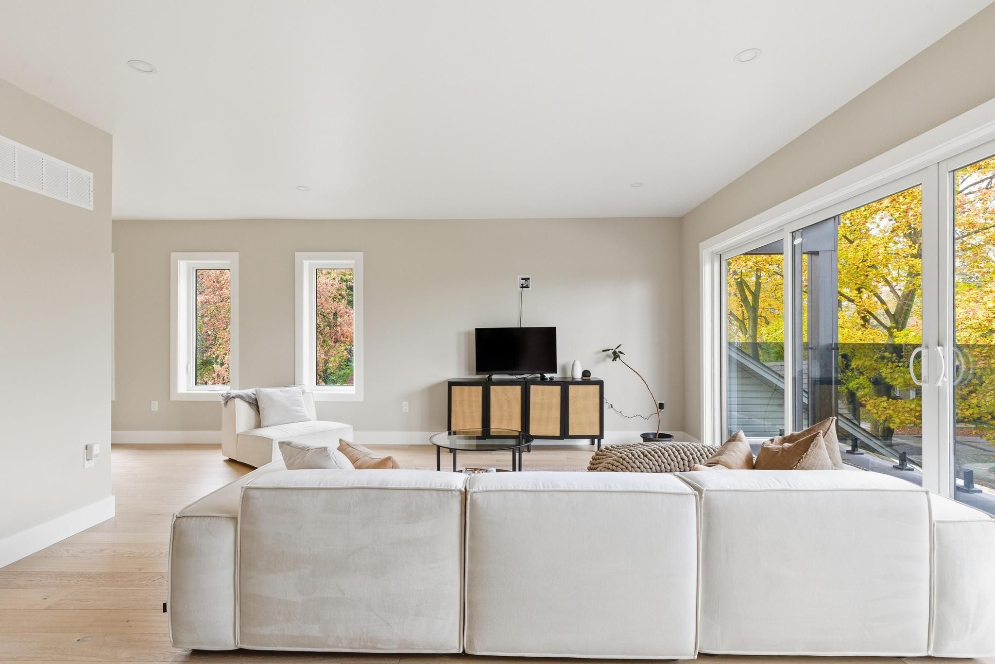 • Bright open-concept main floor with a chef-inspired kitchen and large windows.