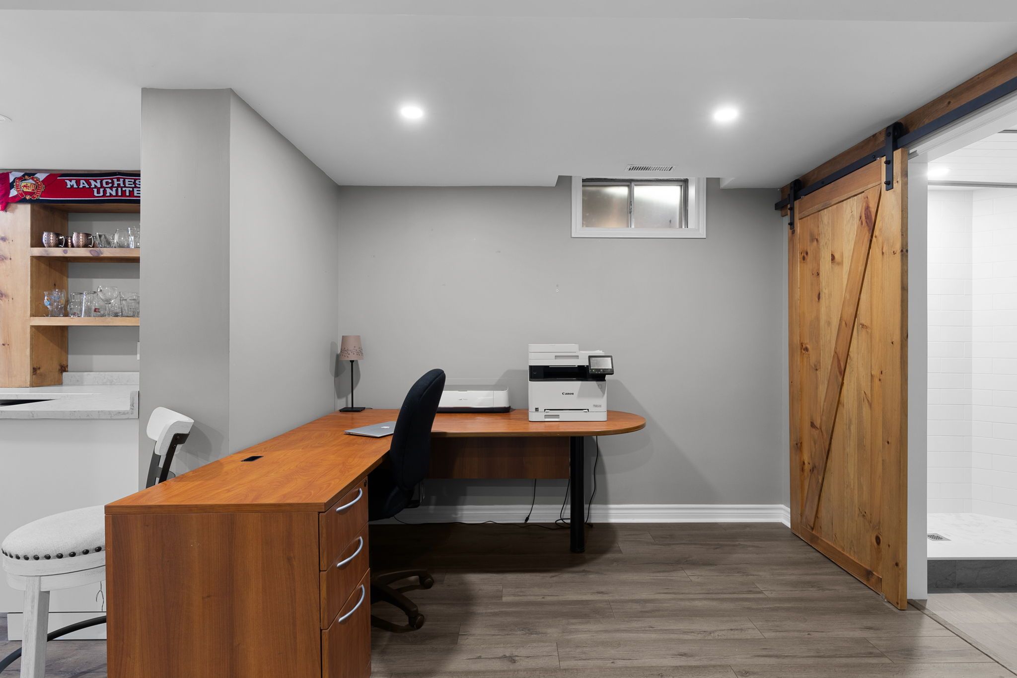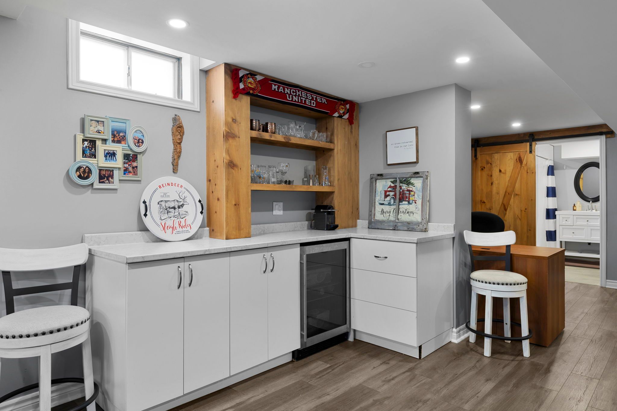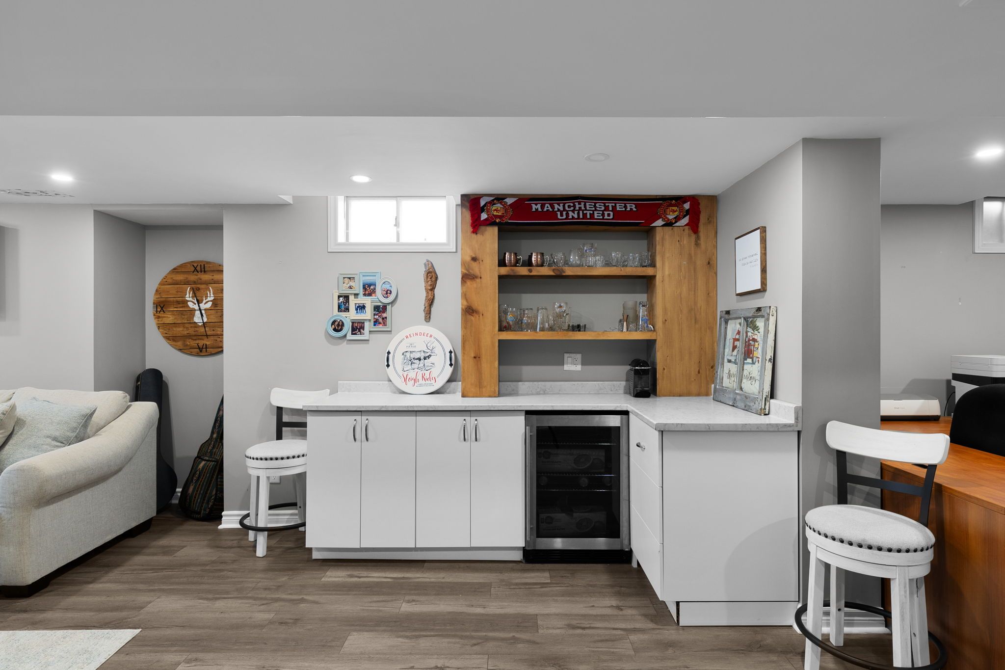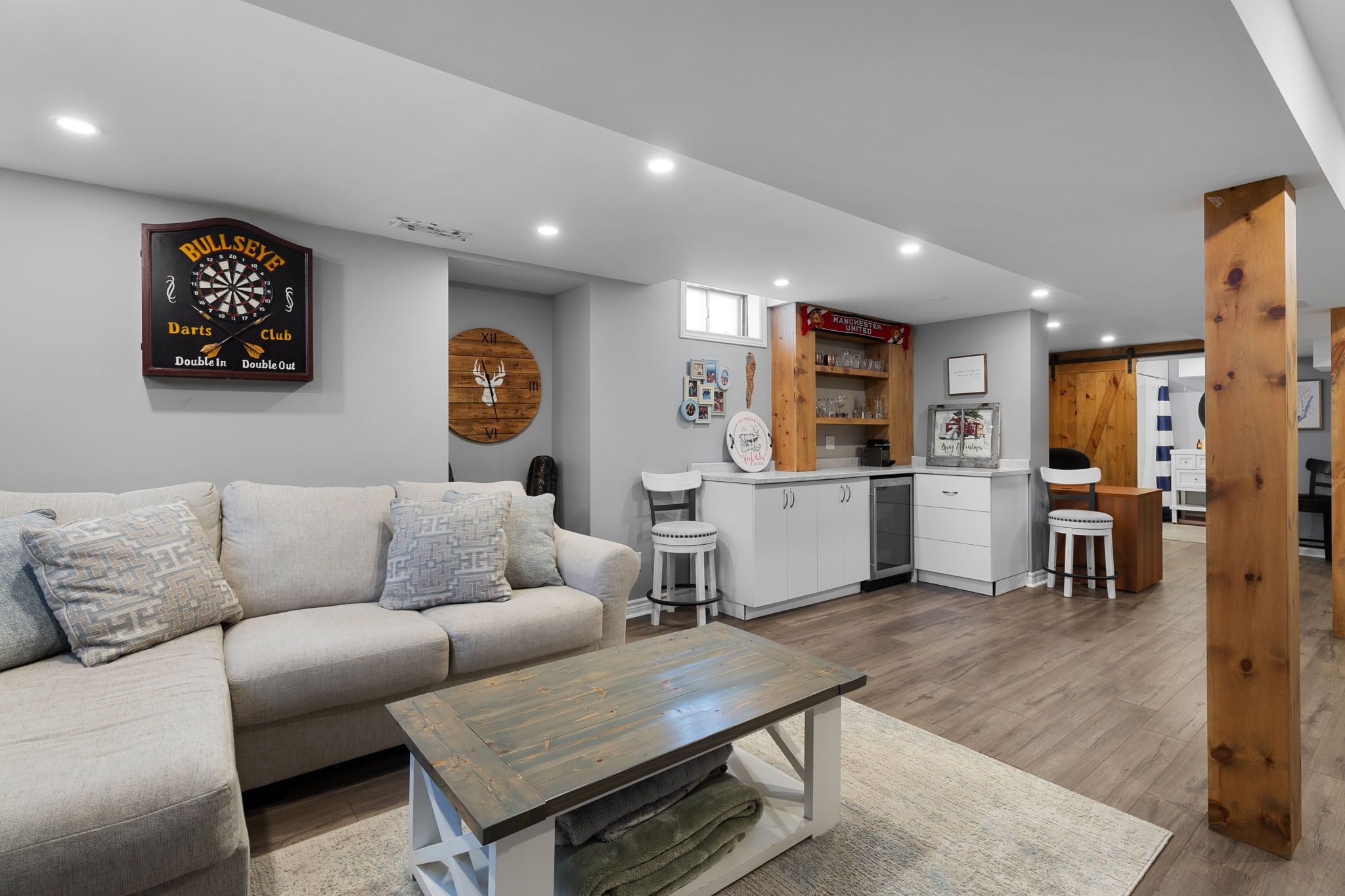 Experience the ultimate lifestyle in this family-friendly neighbourhood in alcona. The streetscape offers an idyllic setting for a classic christmas movie-timeless and peaceful, with sidewalks that invite a quiet, snowy walk & a palpable sense of community spirit. The kind of place where you expect carolers to appear at any moment, where children build snow forts & congregate for street hockey. The area offers convenient access to services & recreational opportunities including dining, shopping, schools, a public beach, boat launch, & library. Additional recreation & entertainment is available at nearby friday harbour resort & the innisfil rec. Centre. It's a short drive to barrie's south end for access to the south go station, big box stores, & even more shopping & dining options. The captivating home offers a classic layout suitable to the style of the neighbourhood, with separate living room, dining room & family room with gas fireplace on the main floor, as well as a mud-room with side entrance & garage access, & a laundry-room with access to the back yard. The stunning kitchen features a large island, quartz counters & high-end stainless steel appliances. A sliding door provides lots of light & access to the rear yard. Upstairs, you'll find three bedrooms plus an office or den. The generously sized primary bedroom includes a walk-in closet & a luxurious 3-piece ensuite. The partially finished basement adds a recreation room & bar area with bar fridge, an exercise room, & an additional, modern, 3-piece bath. The rear yard is fully fenced with lilac trees, a large deck & pergola, perfect for children, pets & entertaining. An oversized garage adds to the convenience of the home offering additional storage and lots of room for "toys". Don't miss the apple tree in the front yard! The driveway has been widened, providing room for friends and family to park comfortably while they visit. Don't wait to call this address home. One owner is a licensed realtor.