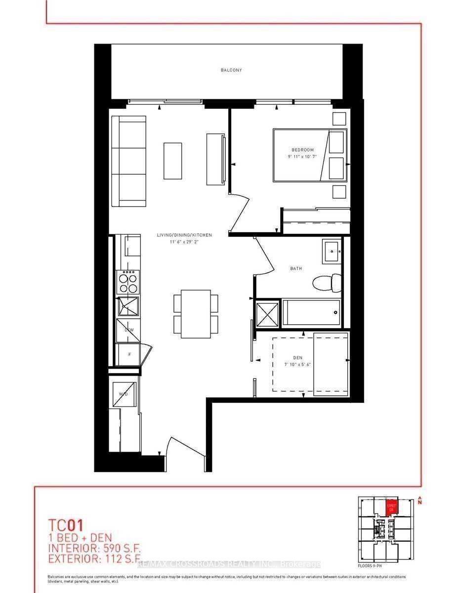 • Spacious one-bedroom unit with a den that serves as a second bedroom.