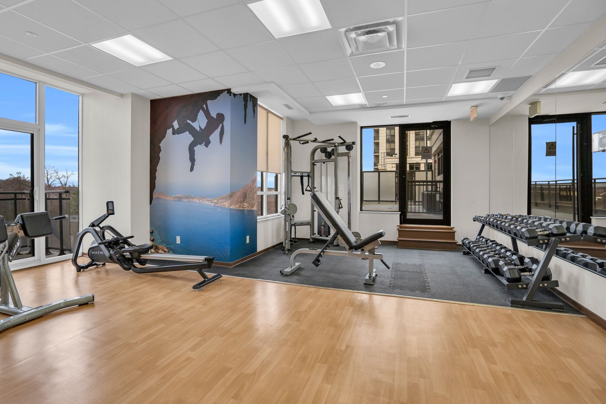 • Building amenities include a gym, rooftop terrace, and concierge service.