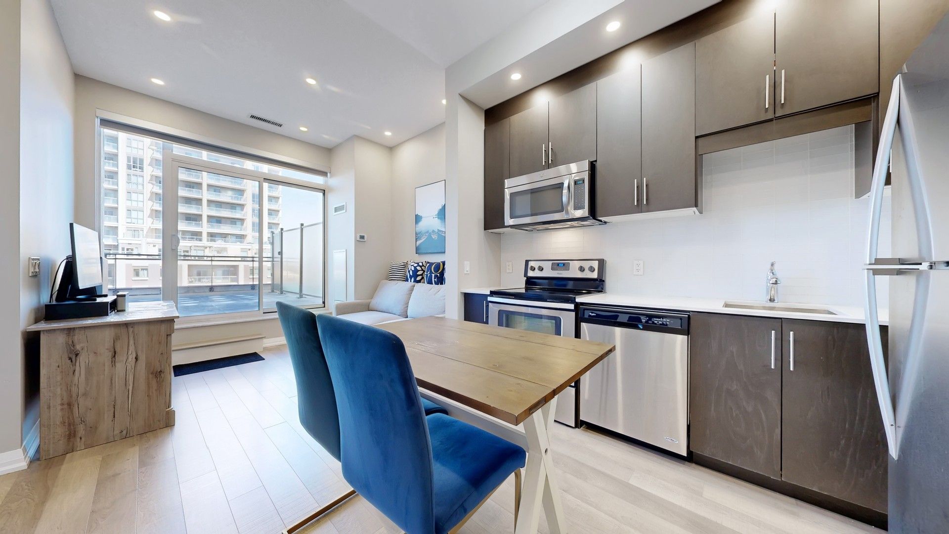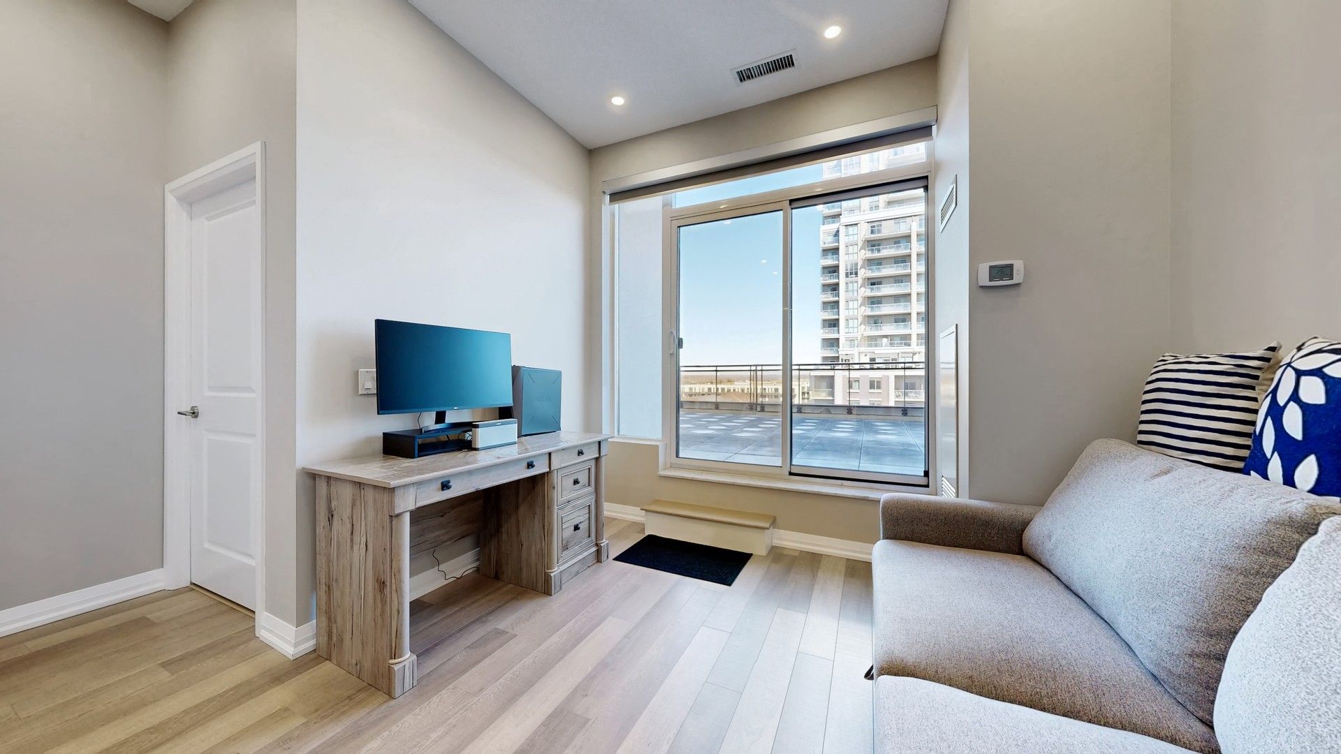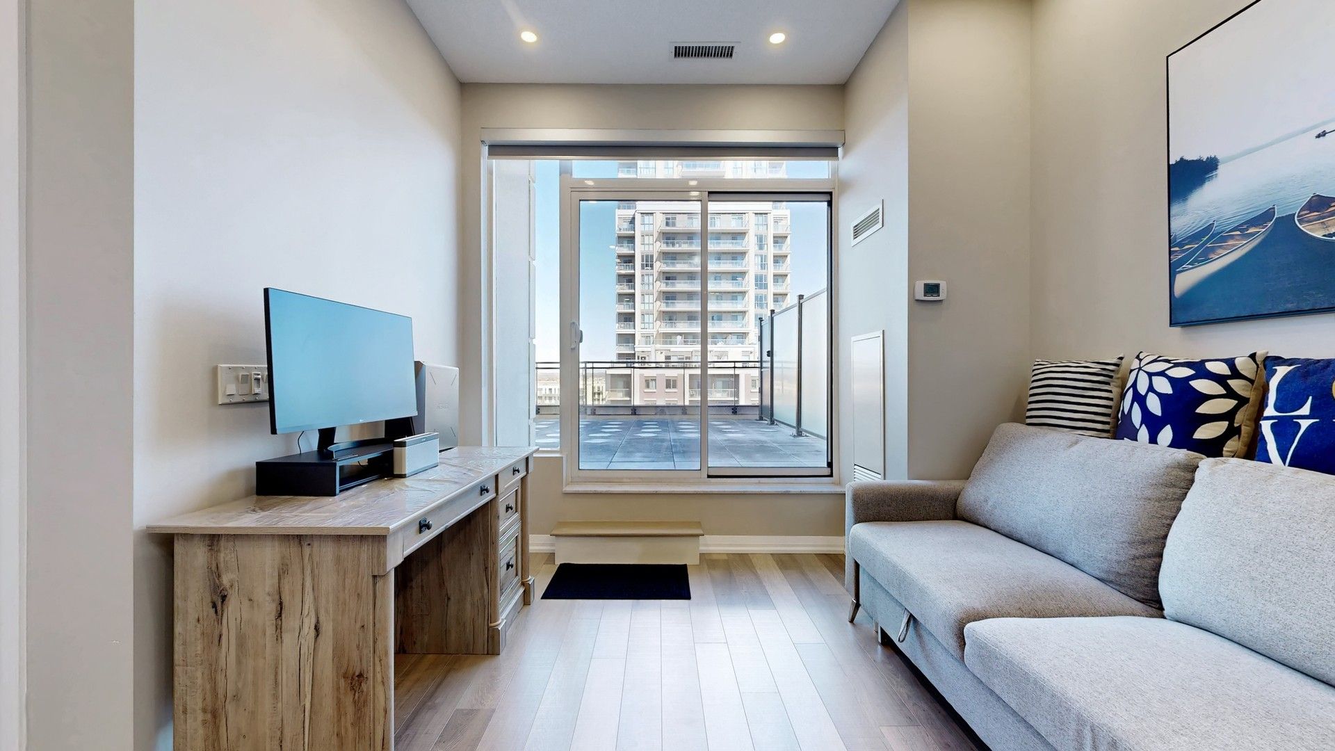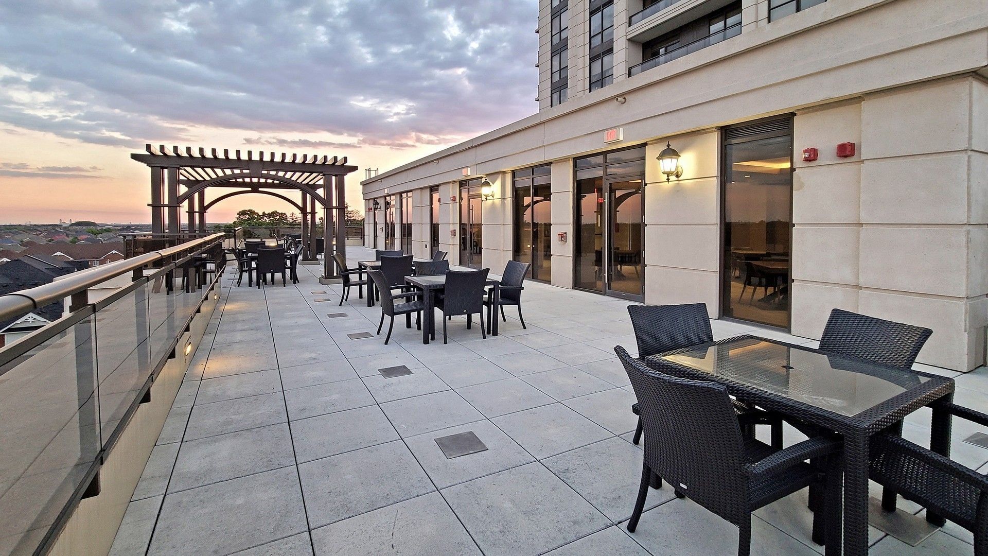 Client remarksbeautifully built greenpark condo w/ one of a kind layout. One br unit 515 sqft w/ stunning approx. 350 sqft terrace. Featuring an exceptional ~350 sqft privateterrace- perfect for outdoor living , enteriaining & relaxation. 10' ceiling. Pot lights thru out. Custom kitchen backsplash, quartz counter w/ undermount sink. Fully upgraded bathroom w/ glass shower, quartz counter & full wall mirror. Xtra large parking spot. 1 locker. S/s appliances. 24hrs concierge w/ amazing amenities. Steps to g. O. Station and shops.