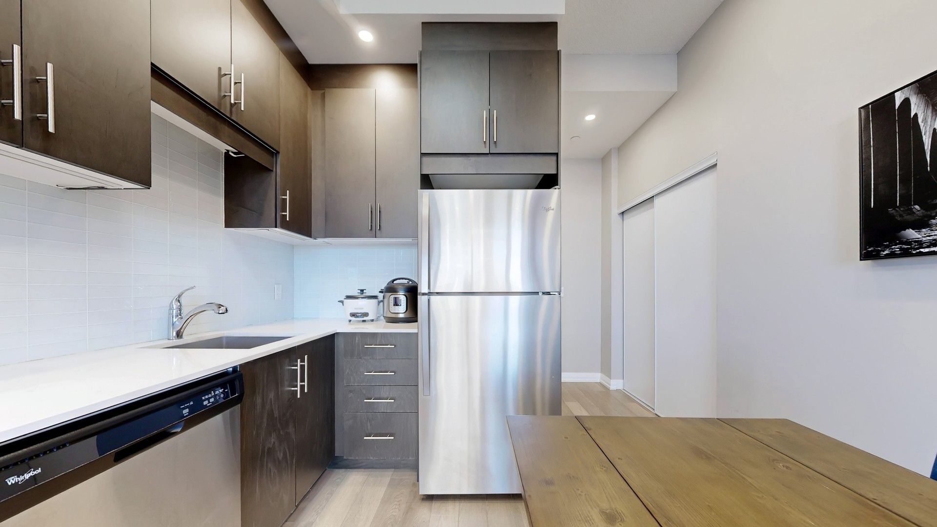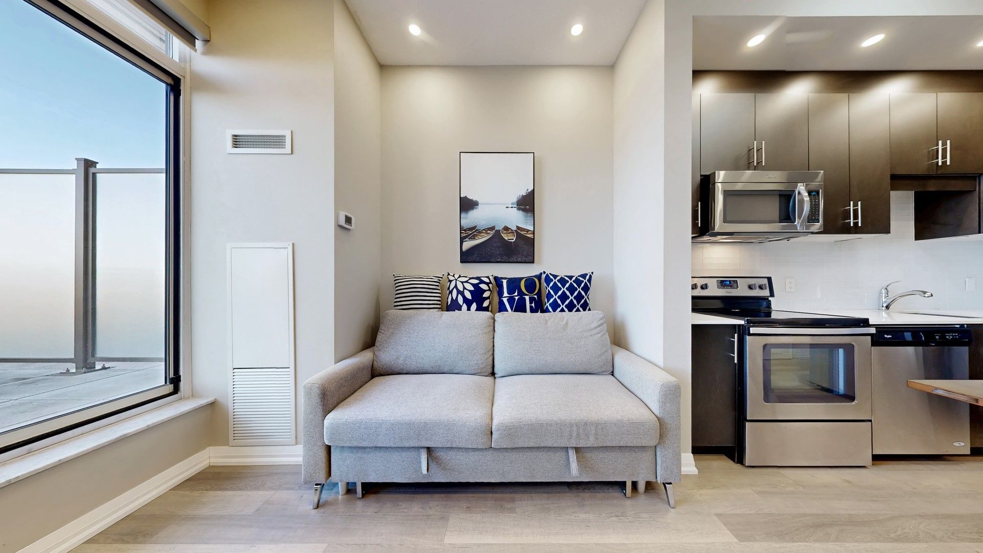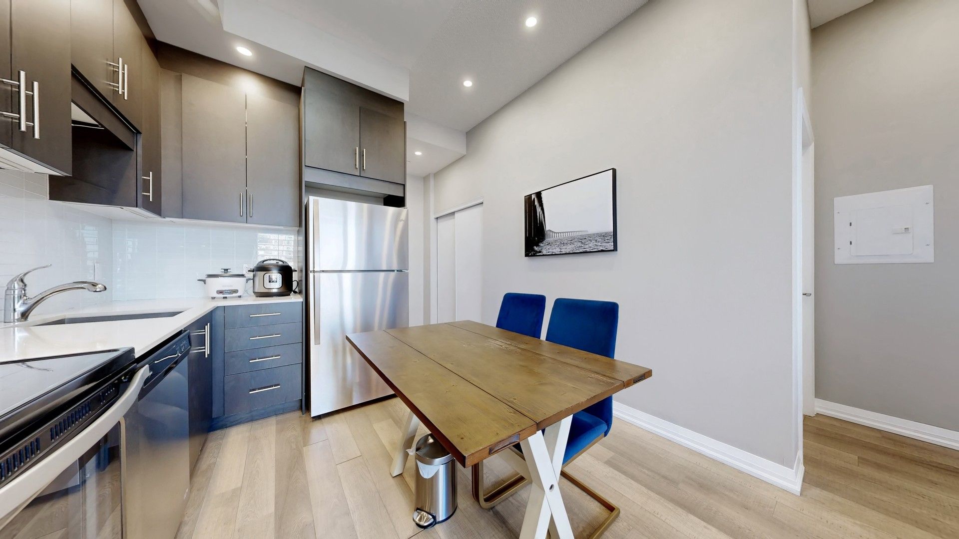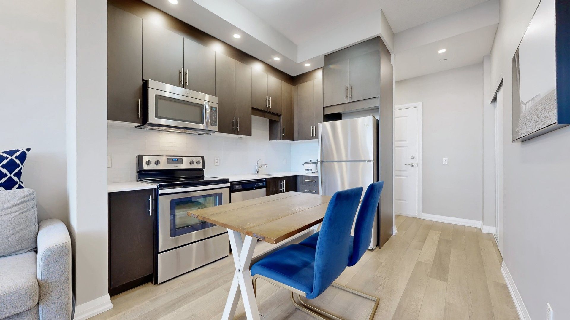 Client remarksbeautifully built greenpark condo w/ one of a kind layout. One br unit 515 sqft w/ stunning approx. 350 sqft terrace. Featuring an exceptional ~350 sqft privateterrace- perfect for outdoor living , enteriaining & relaxation. 10' ceiling. Pot lights thru out. Custom kitchen backsplash, quartz counter w/ undermount sink. Fully upgraded bathroom w/ glass shower, quartz counter & full wall mirror. Xtra large parking spot. 1 locker. S/s appliances. 24hrs concierge w/ amazing amenities. Steps to g. O. Station and shops.