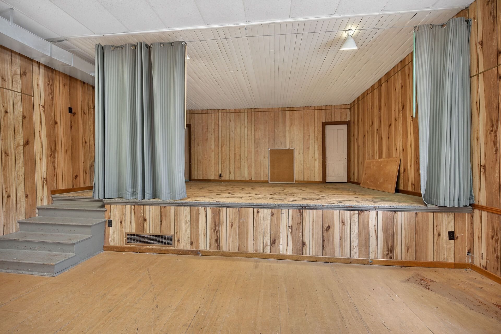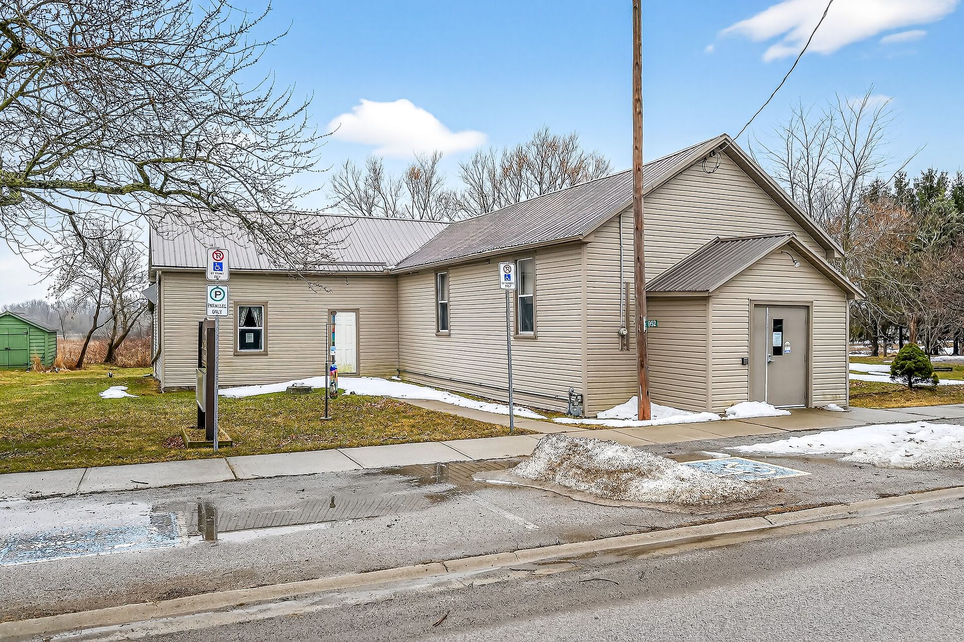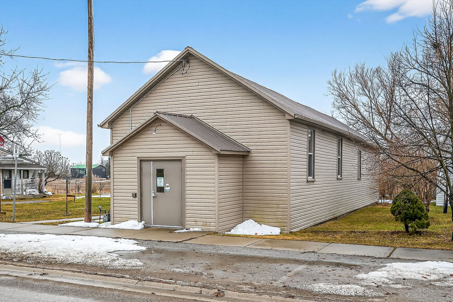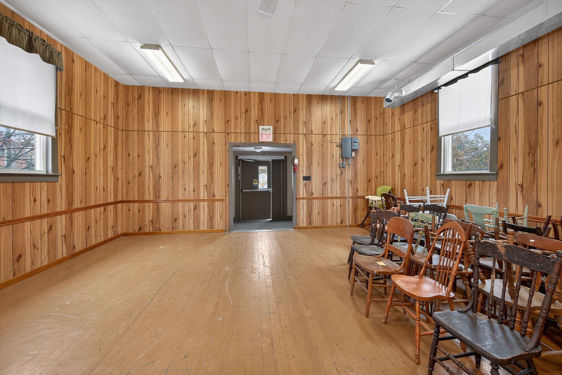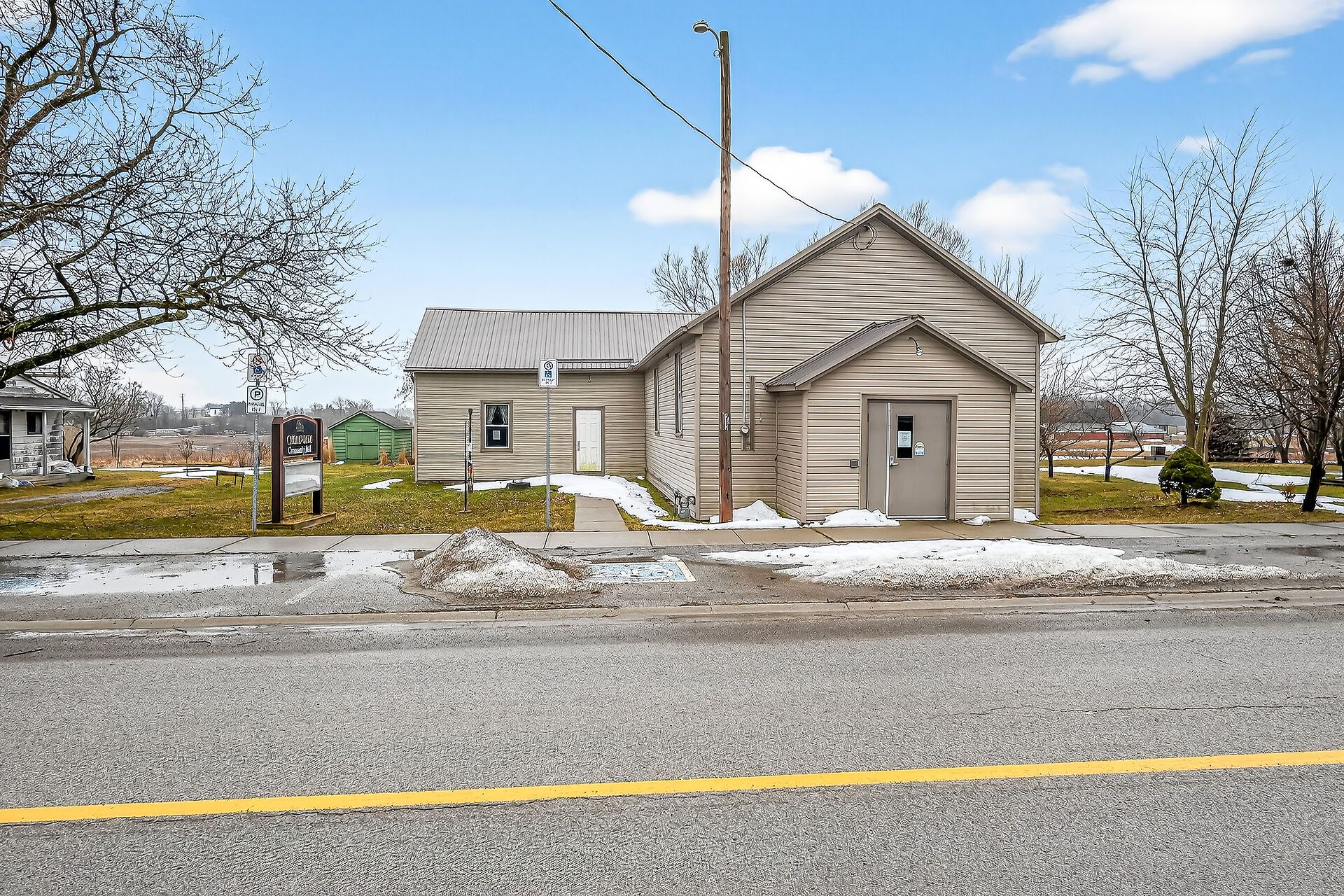Versatile commercial building in the quaint hamlet of cheapside, previously known as "the cheapside community hall" - offers 2363 sq ft with a welcoming foyer, large hall with high ceilings and hardwood floors, newer vinyl windows plus stage area and backstage area. Large commercial sized kitchen with older cabinetry and access to two public washrooms. Clad in vinyl siding with a metal roof, and includes a natural gas furnace. Water provided by a cistern, and a holding tank for sanitation. Zoning is ir - rural instititional - which permits uses such as day care, place of entertainment, place of sports and recreation, private club, school, office, and more! Sitting on a 0. 124 acre lot close to the hamlet - only a km or so from lake erie. Worth a look!