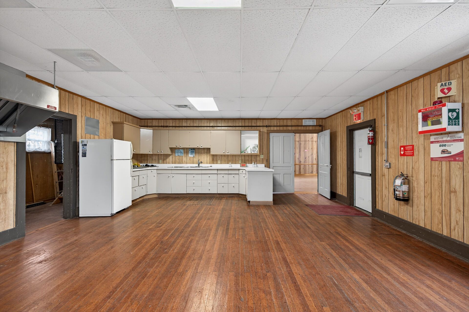 • Includes a large commercial kitchen suitable for various uses.