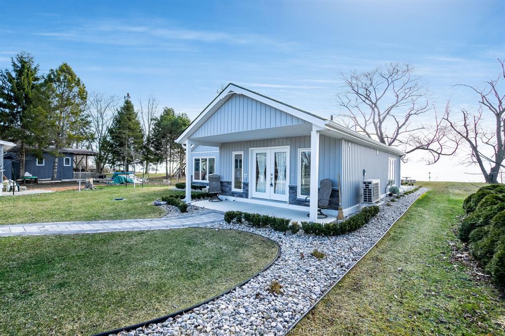 Welcome to your private waterfront retreat in wheatley - where price, location & quality come together. Priced right for this 2023-built home sitting on a 50x504 ft lot w/200 ft into the water. Located 1 block from wheatley provincial park, 5 min to campers cove & talbot trail golf club. Featuring 2 beds, 2 baths (incl. 4pc ensuite & walk-in closet), this open-concept, main floor home is perfect for entertaining or a relaxing getaway. Enjoy vaulted ceilings, panoramic lake views when you wake or while cooking in the stunning kitchen w/dual seated island & built in sink, cherry wood dovetail cabinetry & granite countertops. Relax on the covered porch, patio & bose sound system (in/out). Built to last w/brick & vinyl board & batten exterior, metal break wall & armoured stone shoreline. High-end finishes incl. In-floor heating & stunning epoxy concrete floors. 200 amp, municipal water w/filtration, heated 1. 5 car garage.