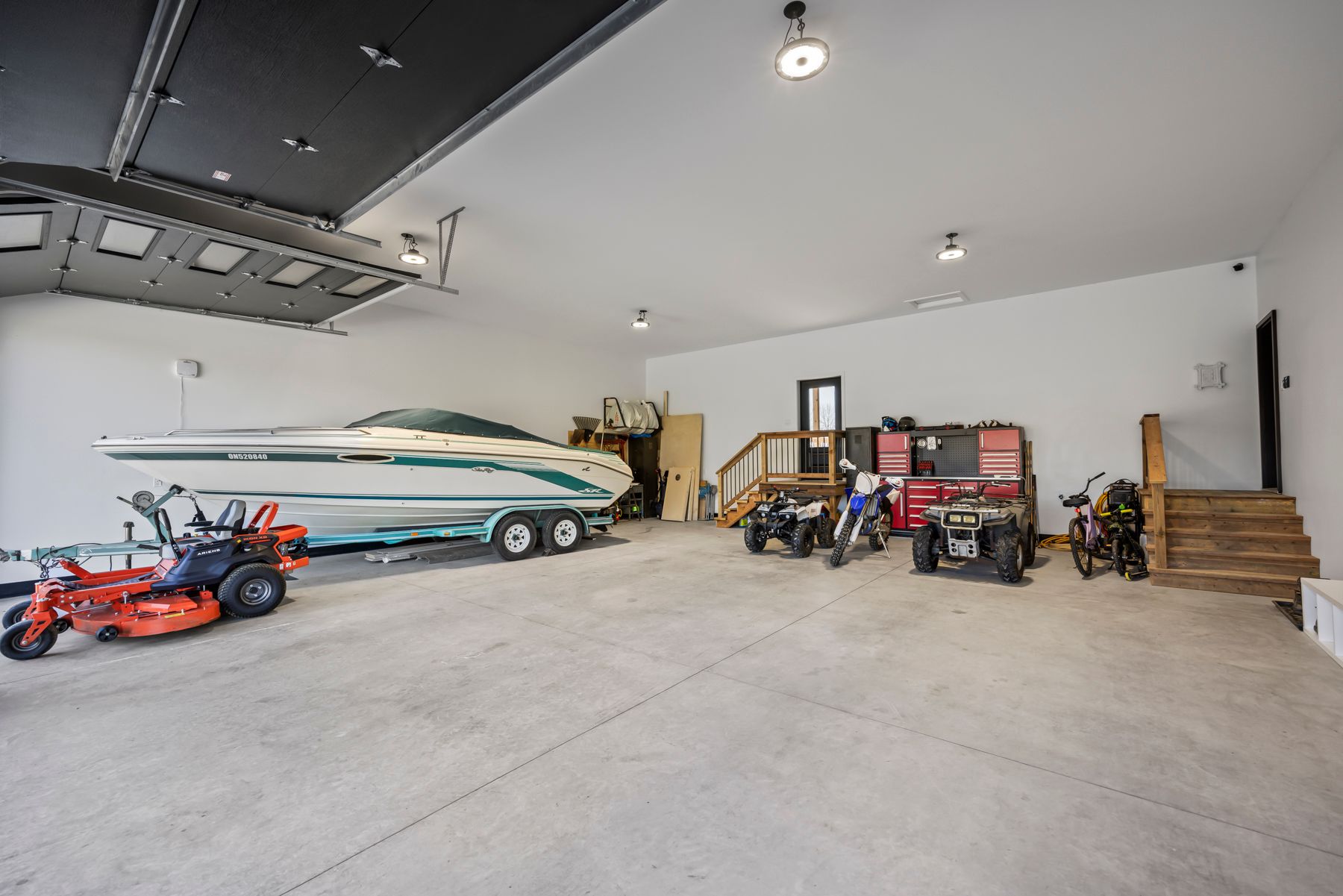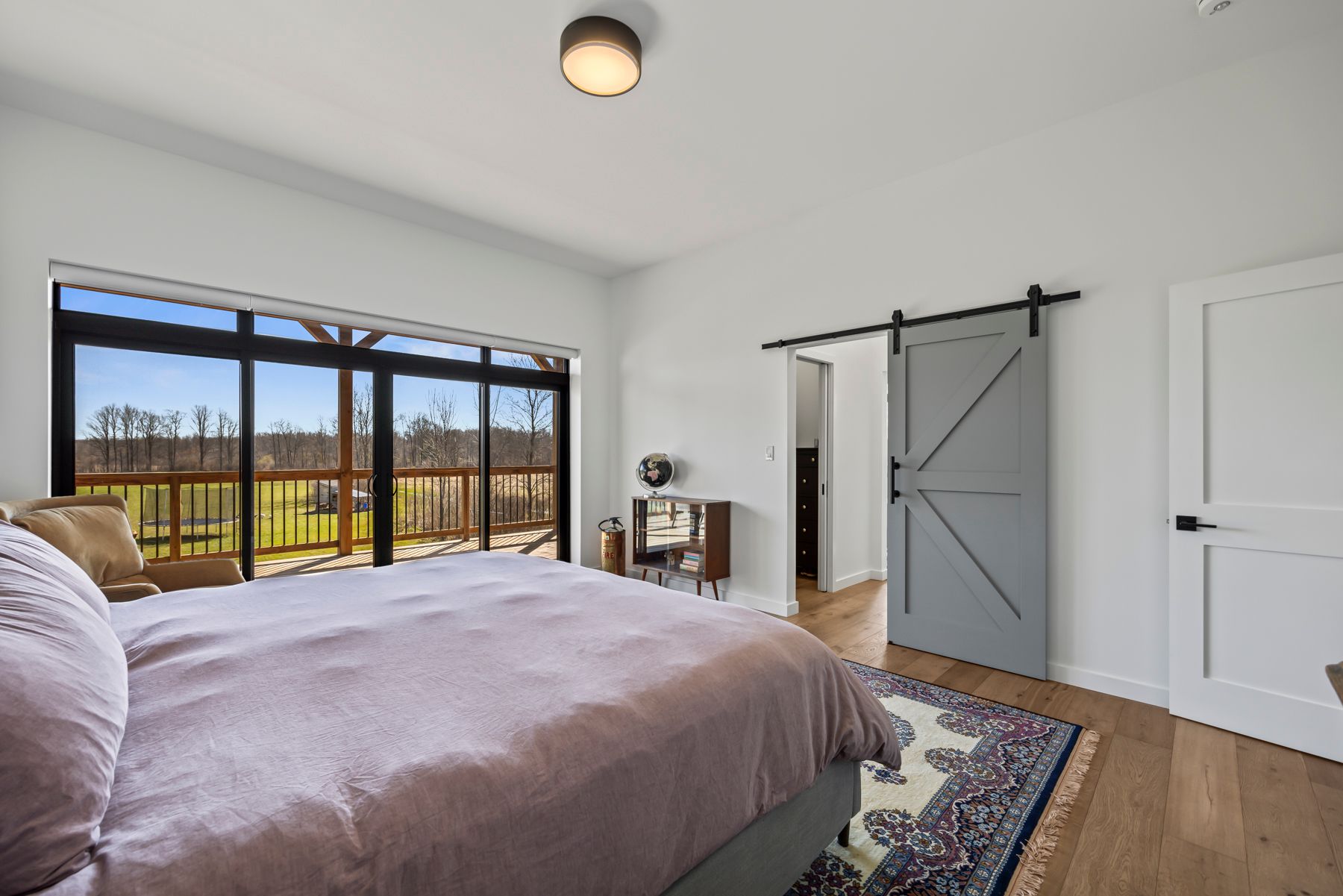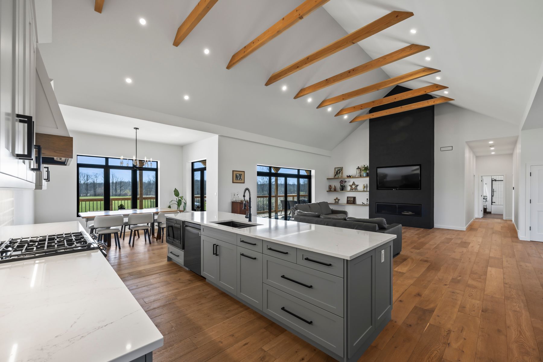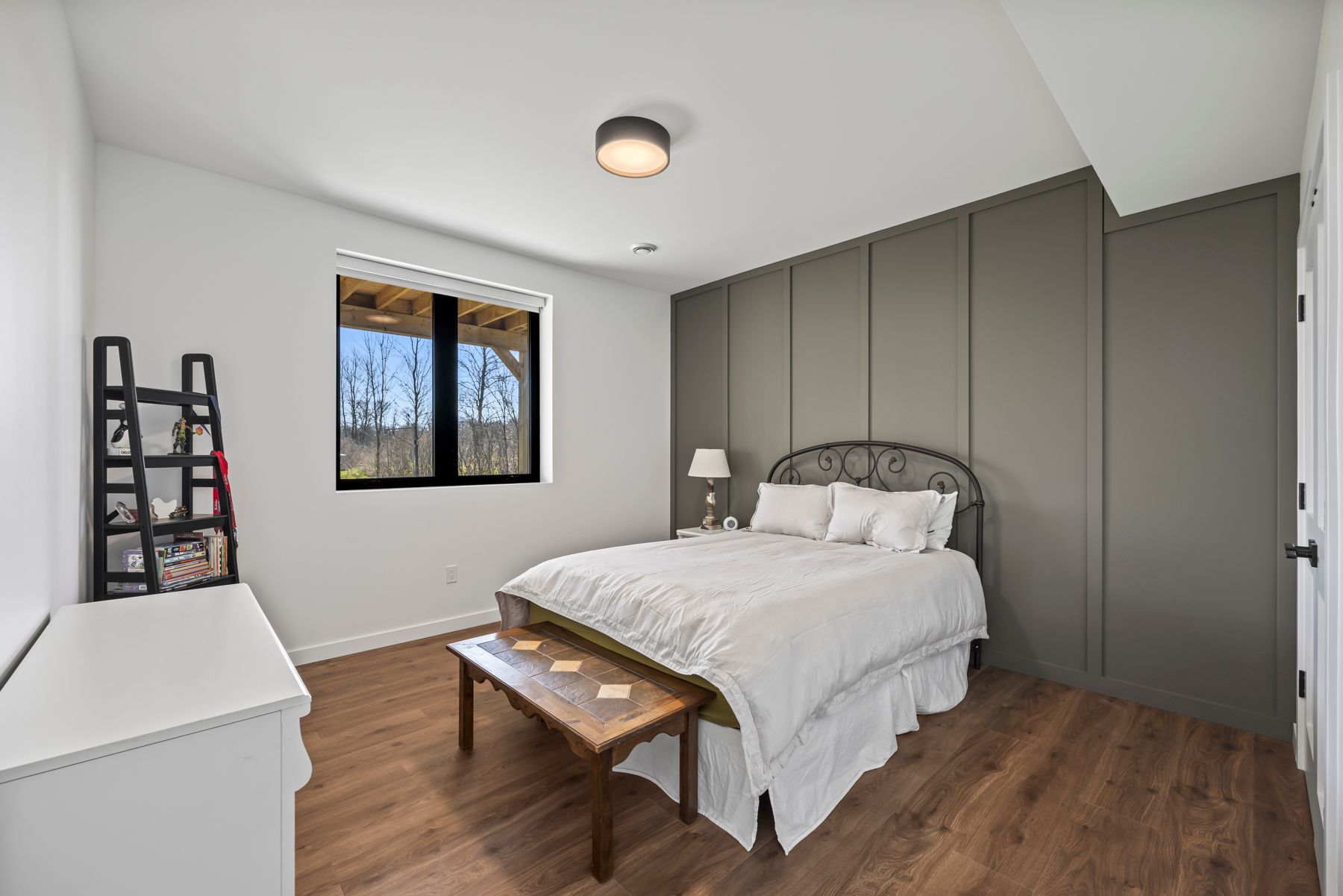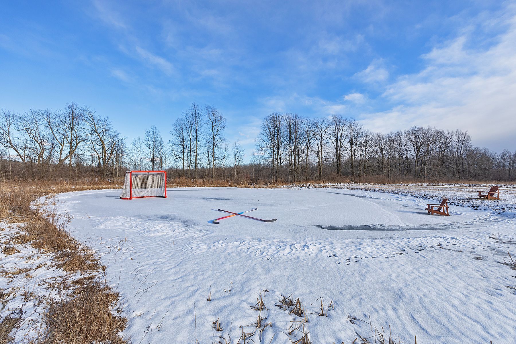 Discover luxury country living at its finest with this breathtaking custom-built bungalow by reno kings, offering over 4,500 sq ft of exceptional design on over 4 serene acres. With an icf foundation extending right up to the trusses and 18-foot cathedral ceilings, this home blends quality craftsmanship with timeless elegance. Step inside to a bright open-concept layout featuring engineered white oak hardwood floors throughout the main level. The spacious living room, centered around a sleek stucco fireplace, effortlessly flows onto a large deck through impressive 12-foot sliding patio doors, ideal for entertaining or unwinding in the fresh country air. Overlooking the peaceful pond, the deck offers the perfect spot to relax and take in the beauty of nature. The chef's kitchen is a dream come true, boasting quartz countertops, a generous island, soft-close cabinetry, and a custom coffee bar. Retreat to the primary bedroom, complete with his-and-hers walk-in closets and a luxurious 5-piece ensuite featuring a soaker tub, double sinks, and a custom glass shower, providing a spa-like experience you'll never want to leave. Also on the main level, youll find a second bedroom, an elegant 4-piece bath, and a chic powder room. A large mudroom with built-in storage and a convenient laundry room offers easy access to the expansive 1,213 sq ft garage, providing ample space for vehicles, storage, and all your toys. The fully finished lower level offers a large rec room, two additional bedrooms, a home office, a gym, and a modern 3-piece bathroom. This home offers high-end finishes, meticulous attention to detail, and country living you've been dreaming of. Don't miss out on this exquisite property and book your showing today!