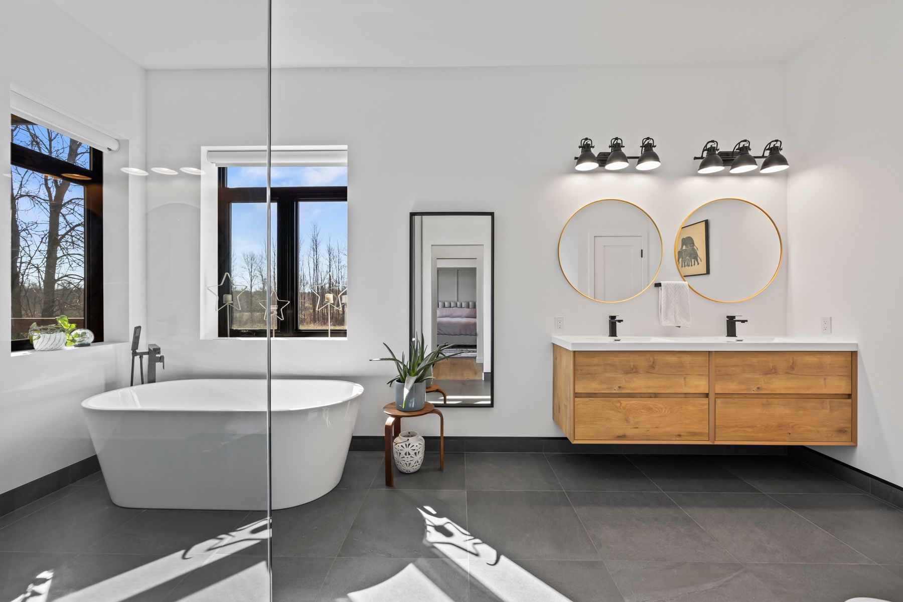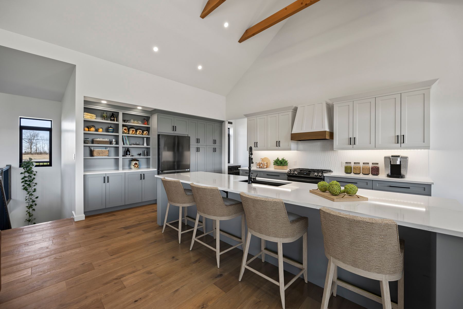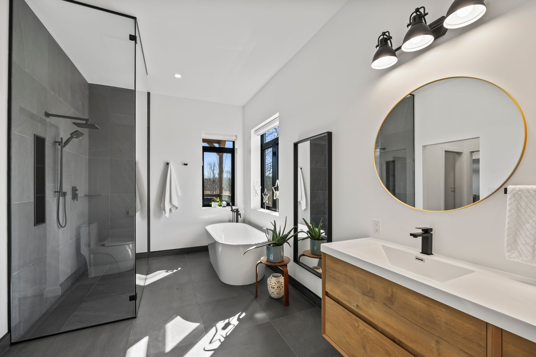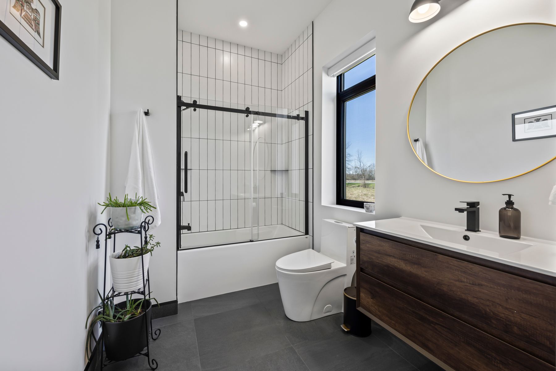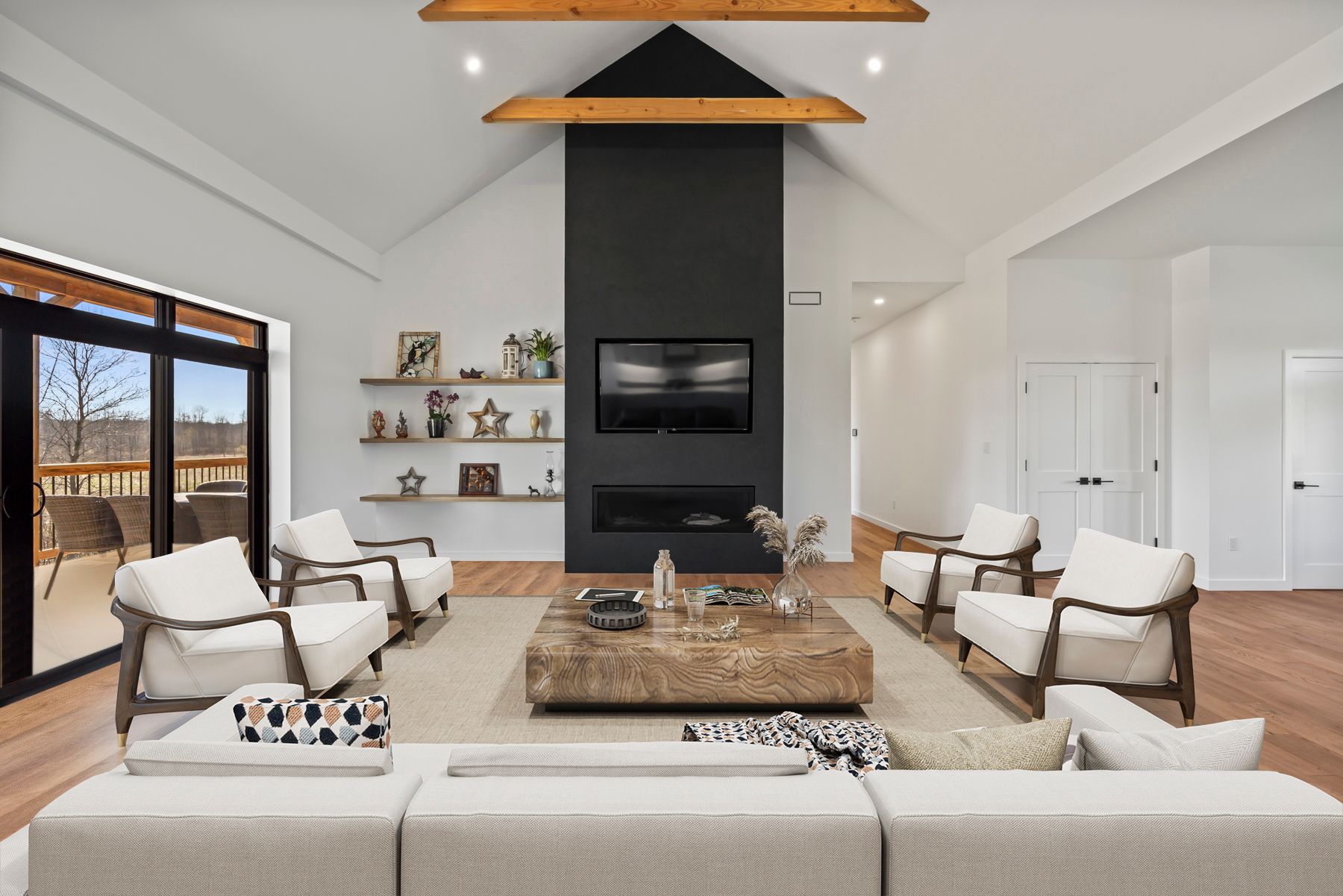 Discover luxury country living at its finest with this breathtaking custom-built bungalow by reno kings, offering over 4,500 sq ft of exceptional design on over 4 serene acres. With an icf foundation extending right up to the trusses and 18-foot cathedral ceilings, this home blends quality craftsmanship with timeless elegance. Step inside to a bright open-concept layout featuring engineered white oak hardwood floors throughout the main level. The spacious living room, centered around a sleek stucco fireplace, effortlessly flows onto a large deck through impressive 12-foot sliding patio doors, ideal for entertaining or unwinding in the fresh country air. Overlooking the peaceful pond, the deck offers the perfect spot to relax and take in the beauty of nature. The chef's kitchen is a dream come true, boasting quartz countertops, a generous island, soft-close cabinetry, and a custom coffee bar. Retreat to the primary bedroom, complete with his-and-hers walk-in closets and a luxurious 5-piece ensuite featuring a soaker tub, double sinks, and a custom glass shower, providing a spa-like experience you'll never want to leave. Also on the main level, youll find a second bedroom, an elegant 4-piece bath, and a chic powder room. A large mudroom with built-in storage and a convenient laundry room offers easy access to the expansive 1,213 sq ft garage, providing ample space for vehicles, storage, and all your toys. The fully finished lower level offers a large rec room, two additional bedrooms, a home office, a gym, and a modern 3-piece bathroom. This home offers high-end finishes, meticulous attention to detail, and country living you've been dreaming of. Don't miss out on this exquisite property and book your showing today!