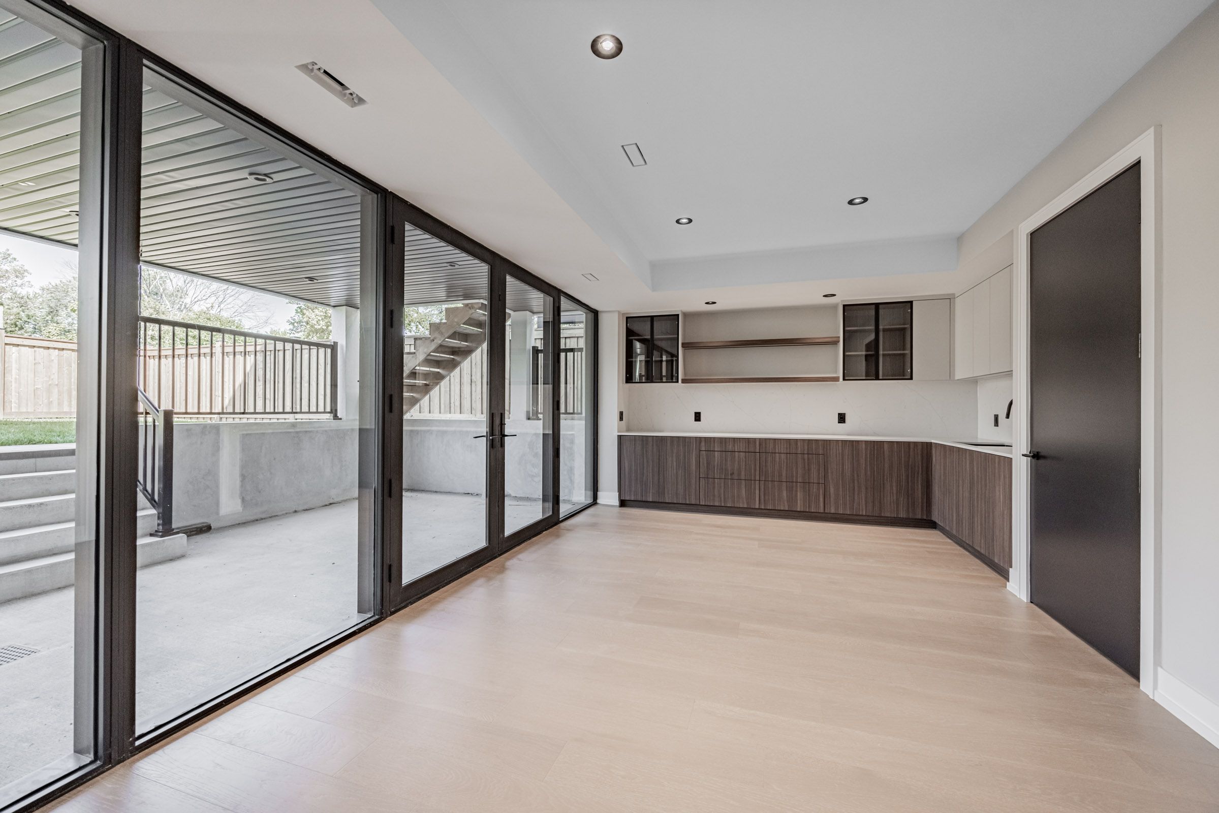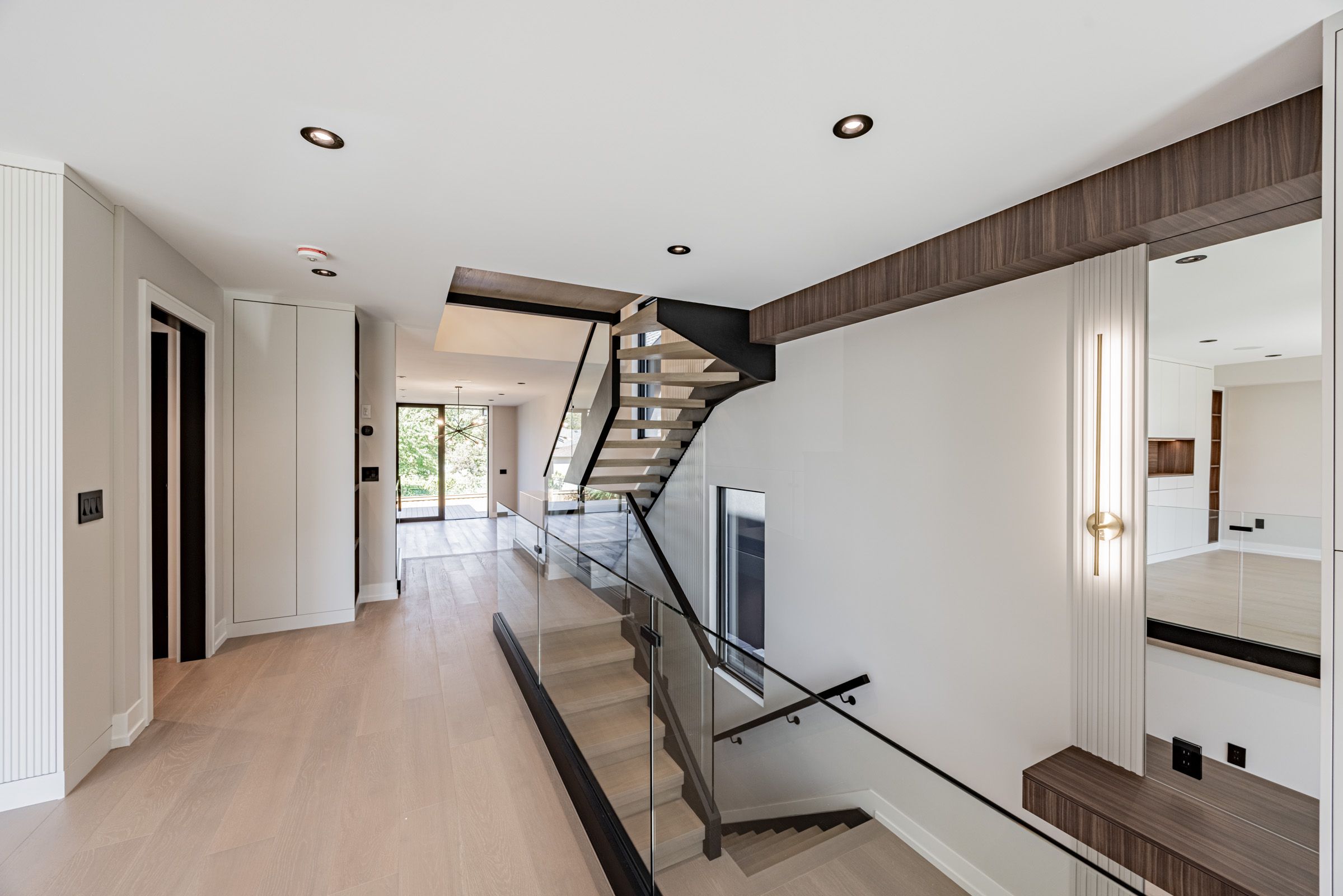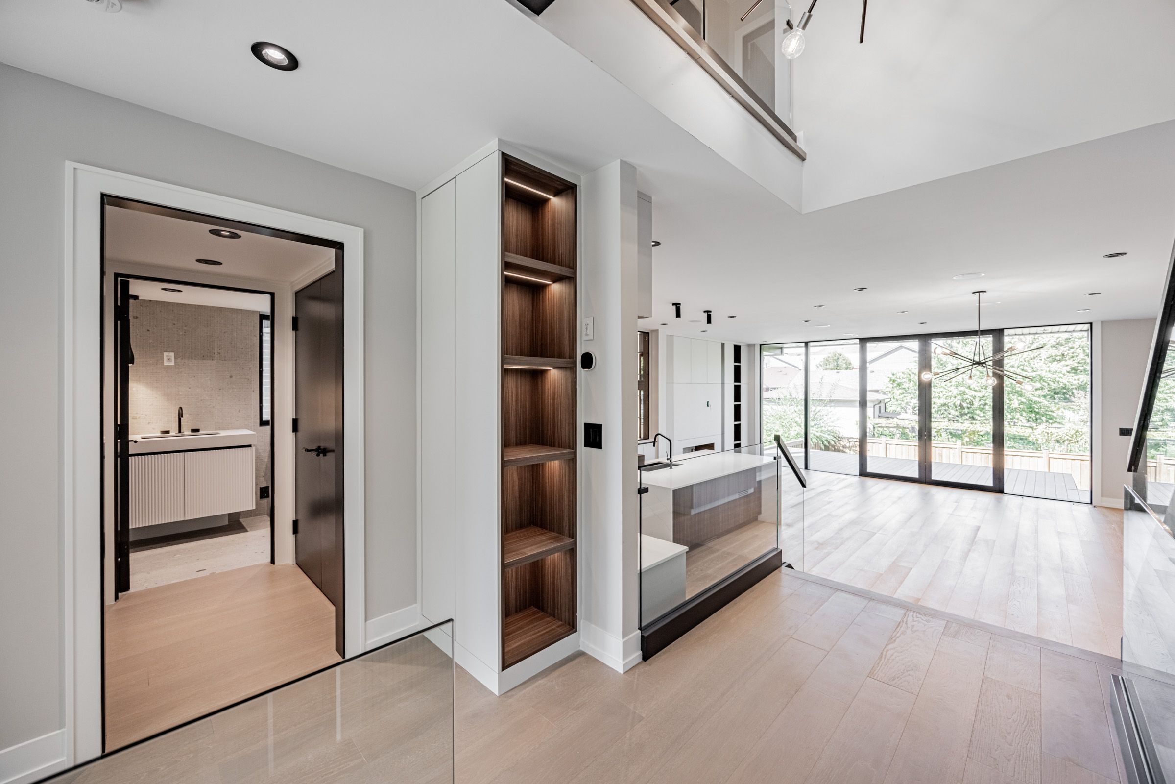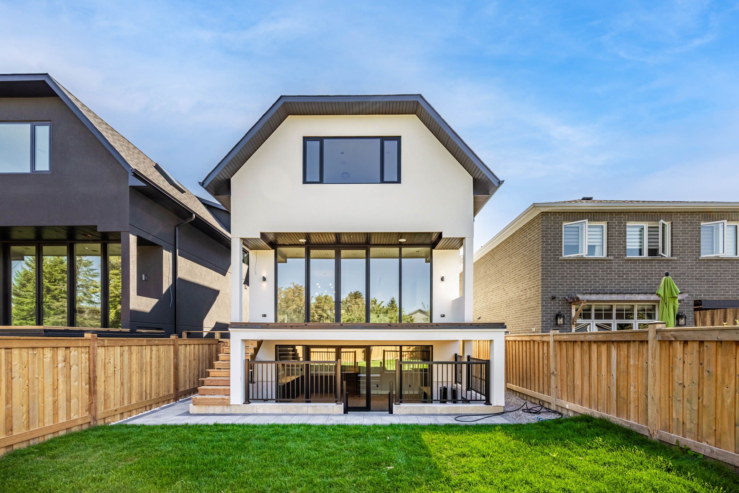 Luxury, perfected. A montbeck developments masterpiece yours to move into today! This masterfully designed open-concept home exudes sophistication with white oak flooring, soaring ceiling heights, and floor-to-ceiling windows that flood the interiors with natural light. Seamless indoor/outdoor living is achieved with the living room, dining room, and kitchen each opening to a partially covered balcony patio perfect for year-round enjoyment. At the heart of the home, the bespoke designer kitchen makes a bold statement in both form and function. Outfitted with top-tier fisher & paykel appliances, exquisite quartz countertops with full-height backsplash, and an oversized waterfall island, its an entertainers dream. An abundance of thoughtfully integrated storage enhances both style and practicality. The adjoining living and dining spaces radiate sophistication and warmth, featuring custom millwork and a sleek linear electric fireplace that serves as a striking focal point. The primary suite boasts a spa-inspired ensuite with soaker tub, glass shower, dual-sink vanity, and a fully customized walk-in closet with illuminated built-ins and tailored cabinetry. Three additional bedrooms each offer custom desks, built-in closets, and stylish ensuites with designer finishes. The finished lower level expands the living space with a large family/recreation room, 3-piece bath, radiant heated floors, a wet bar, and a rough-in for a home theatre or fitness studio. Additional features include a versatile front room for office or formal living, integrated ceiling speakers, and an attached garage with a striking black-tinted glass door.