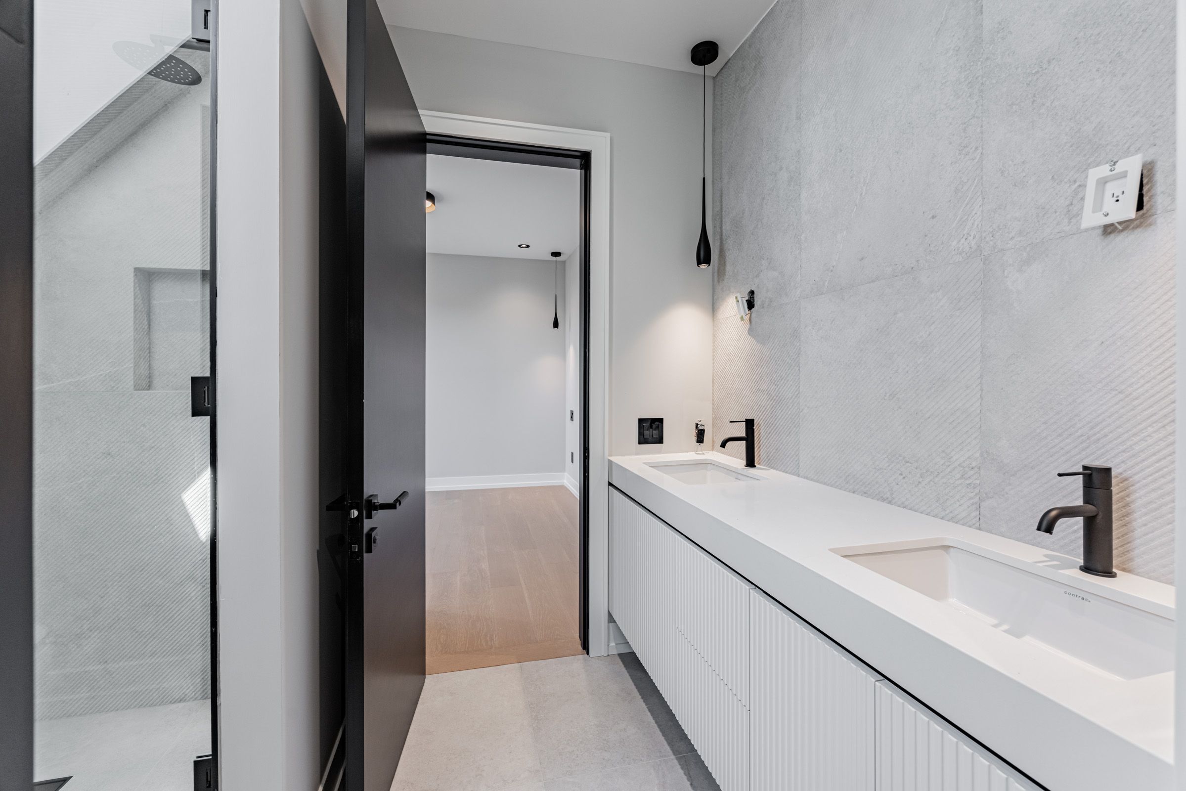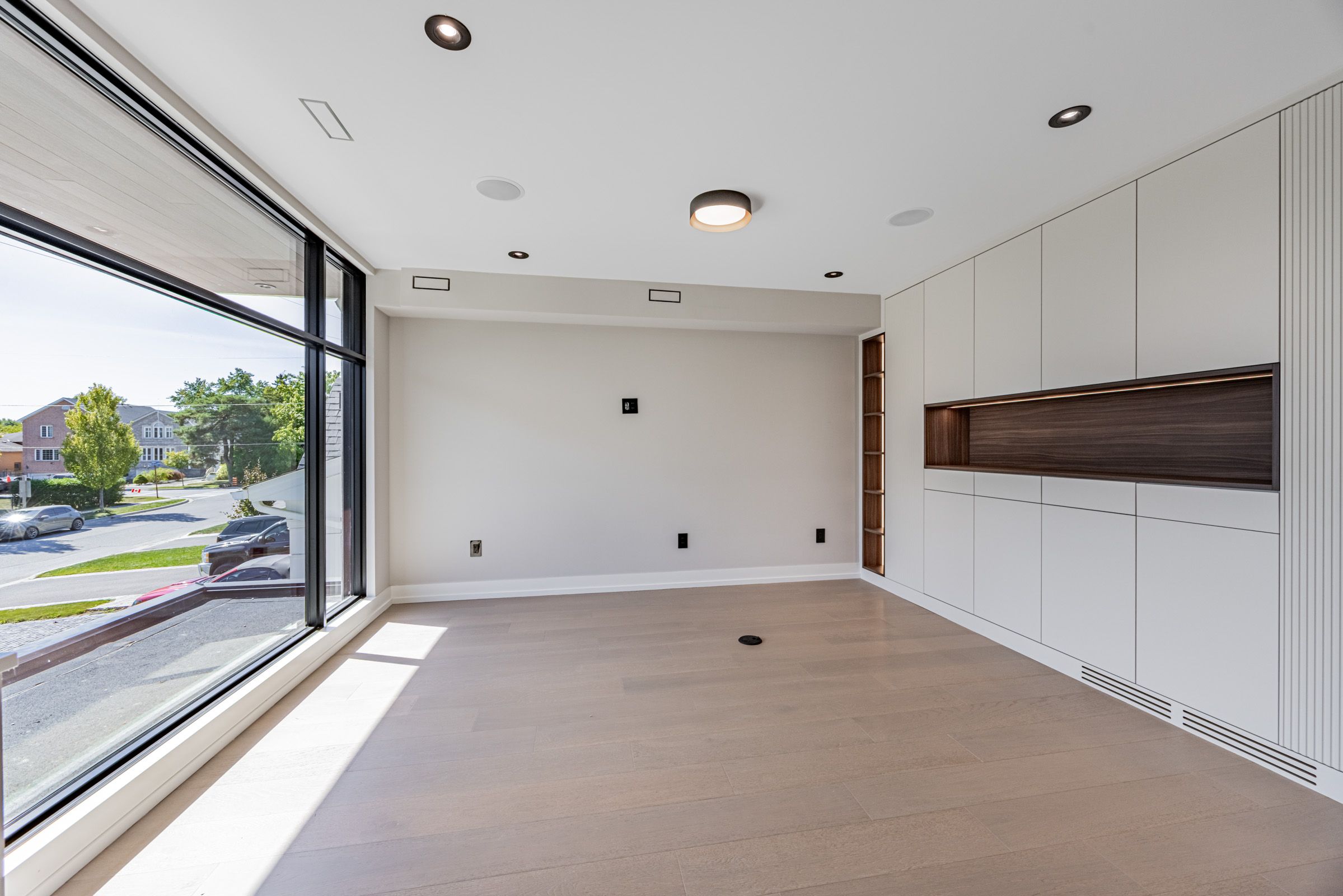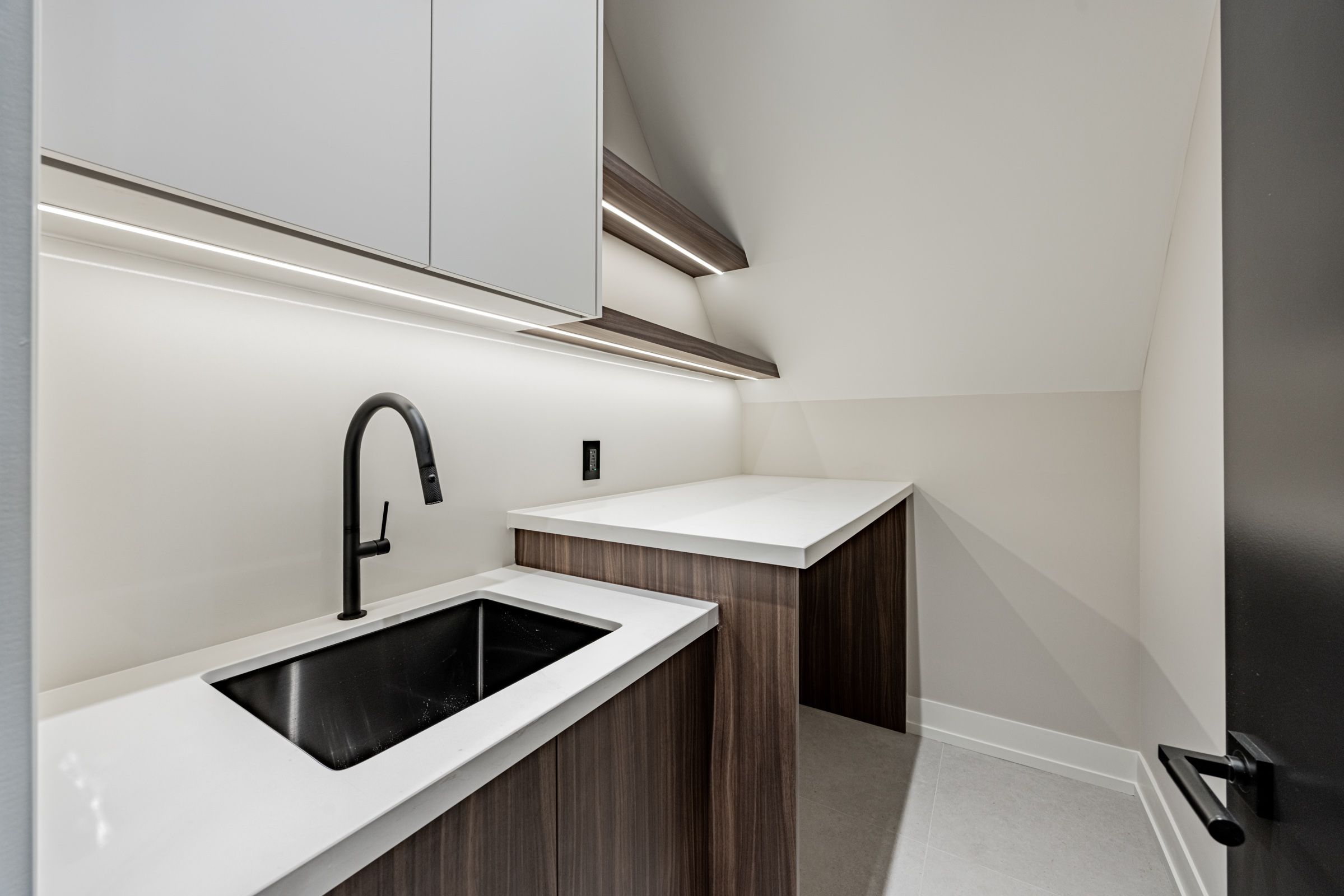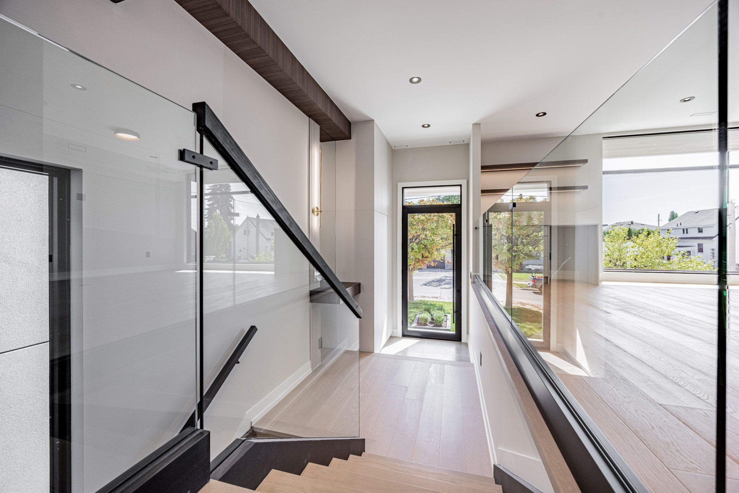 Luxury, perfected. A montbeck developments masterpiece yours to move into today! This masterfully designed open-concept home exudes sophistication with white oak flooring, soaring ceiling heights, and floor-to-ceiling windows that flood the interiors with natural light. Seamless indoor/outdoor living is achieved with the living room, dining room, and kitchen each opening to a partially covered balcony patio perfect for year-round enjoyment. At the heart of the home, the bespoke designer kitchen makes a bold statement in both form and function. Outfitted with top-tier fisher & paykel appliances, exquisite quartz countertops with full-height backsplash, and an oversized waterfall island, its an entertainers dream. An abundance of thoughtfully integrated storage enhances both style and practicality. The adjoining living and dining spaces radiate sophistication and warmth, featuring custom millwork and a sleek linear electric fireplace that serves as a striking focal point. The primary suite boasts a spa-inspired ensuite with soaker tub, glass shower, dual-sink vanity, and a fully customized walk-in closet with illuminated built-ins and tailored cabinetry. Three additional bedrooms each offer custom desks, built-in closets, and stylish ensuites with designer finishes. The finished lower level expands the living space with a large family/recreation room, 3-piece bath, radiant heated floors, a wet bar, and a rough-in for a home theatre or fitness studio. Additional features include a versatile front room for office or formal living, integrated ceiling speakers, and an attached garage with a striking black-tinted glass door.