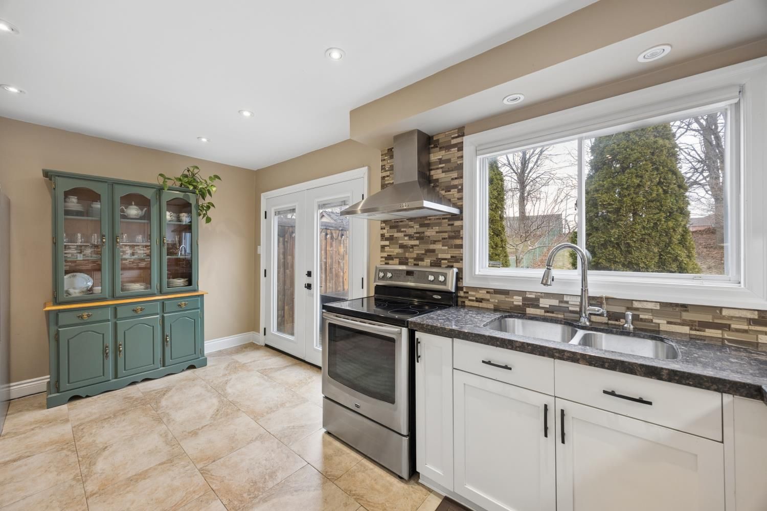 Beautiful 3 bedroom 2 bathroom semi with built in garage shows pride of ownership. Open concept main floor has updated kitchen with granite countertops, stainless steel appliances , pots and pan drawers, pantry and w/o to deep fenced private back yard with no neighbours behind. 2 spa like bathrooms with heated floors. Loads of pot lights on all levels. Garage access from house.. Hard surface flooring throughout. Many recent updates including totally new 3 pc bath on lower level, updated french door to deck and new garage door, this property is in a great family area located close to parks, schools, public transit , rec centre and easy access to 401.