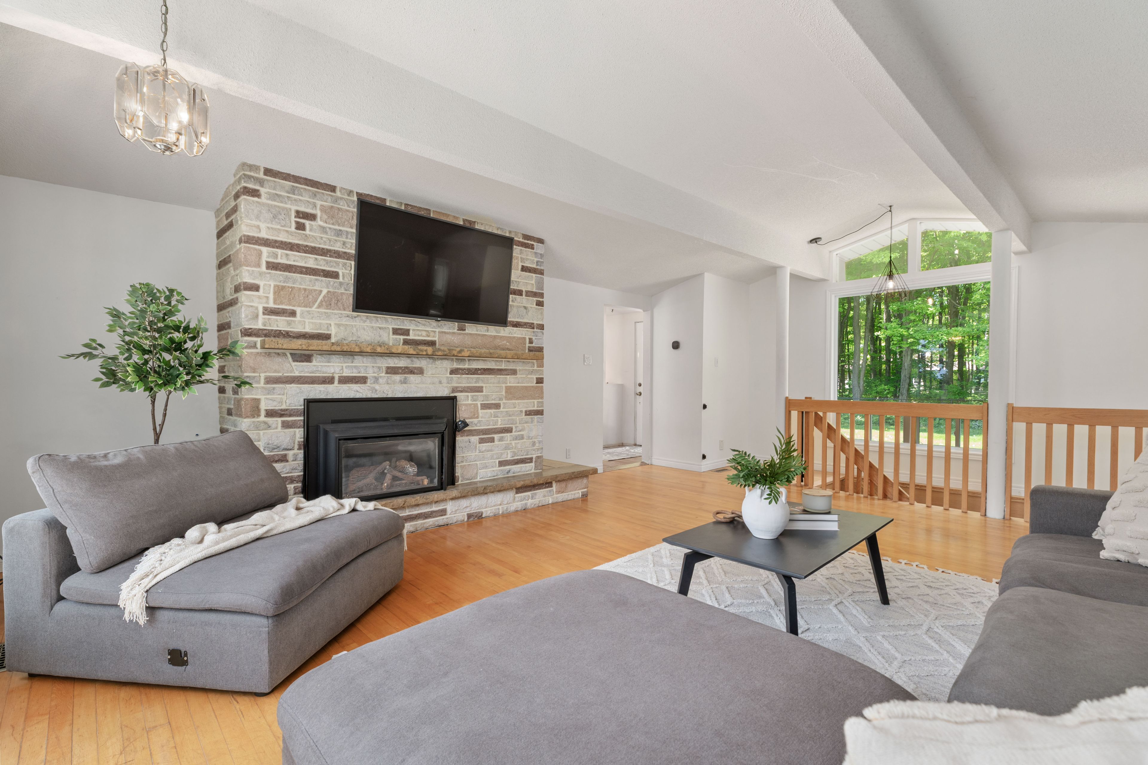 Looking for a new place to call home in the new year? This could be the one! Escape to country living in beautiful mono township, offering the perfect balance of tranquility and convenience-just 45 minutes to pearson airport and easy access to the gta. Enjoy a vibrant lifestyle right at your doorstep with an array of unique shops, dining, theatre, local markets, wineries, skiing, golf, and hiking. The bruce trail access is minutes away, and after a day outdoors, unwind at a relaxing spa in nearby hockley valley. This fabulous upgraded bi-level bungalow features a fully finished and renovated walk-out lower level, offering two additional bedrooms and a new 4-piece bathroom. Cozy up by two gas fireplaces and take in the gorgeous views through floor-to-ceiling windows and doors, leading to a raised deck overlooking 1. 90 acres of beautifully landscaped grounds with select mature specimen trees. The sun-filled centre island kitchen is ideal for both quiet family meals and larger gatherings, making it a welcoming hub for entertaining. Additional highlights include newer mechanical systems: heat pump & a/c water filtration system water softener hot water tank this property is perfectly suited for a young family or retirees looking to downsize while enjoying the comfort, privacy, and lifestyle of country living-without sacrificing accessibility.