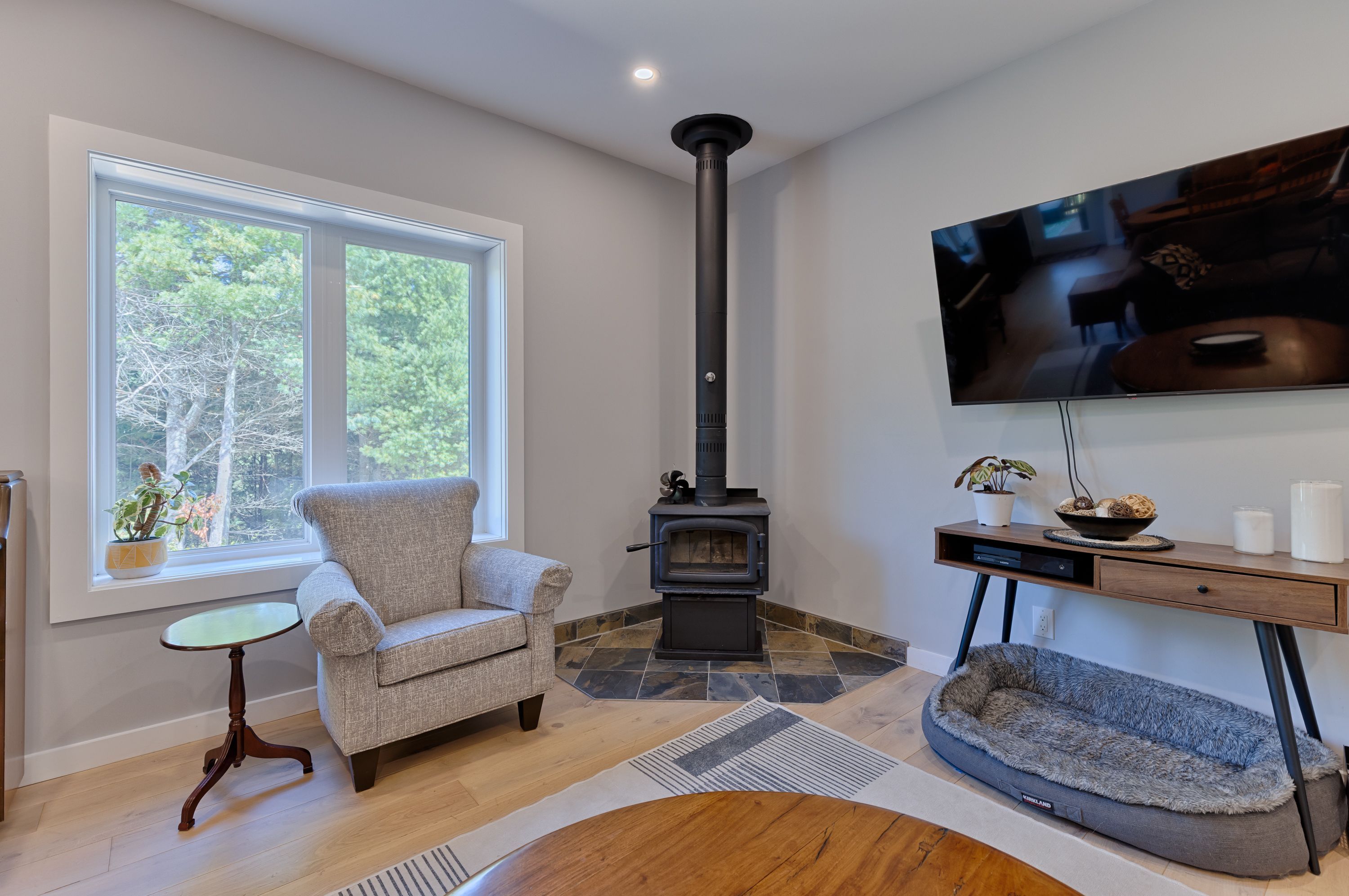 Exceptional full height icf custom bungalow built in 2022 (foundation and walls in house and garage). Nestled on a private one acre lot step inside to discover an inviting open-concept main floor. The heart of the home lies in the gourmet kitchen, boasting stainless steel appliances, quartz countertops, and a generous island. Beautiful plank floors guide you through the main level to spacious bedrooms, including a primary suite complete with a walk-in closet and a four-piece ensuite and a large living room with a cozy wood burning fireplace. Walk to the dining room from the deck after cocktail hour with friends. The expansive basement offers a large third bedroom and a good sized roughed in bathroom. From the basement you can walk out to your soothing hot tub. The basement has in floor heating installed and the home comes with a forced air gas fireplace and central air. The large double car garage has plenty of extra room (29 ft by 24 ft) with a high ceiling and 2 auto door openers with direct access to a large mud/laundry room. No slow internet here nrtco fibre optic cable ensures high speed for working from home. This kind of privacy in a dream come true home is an opportunity reaching out to you.