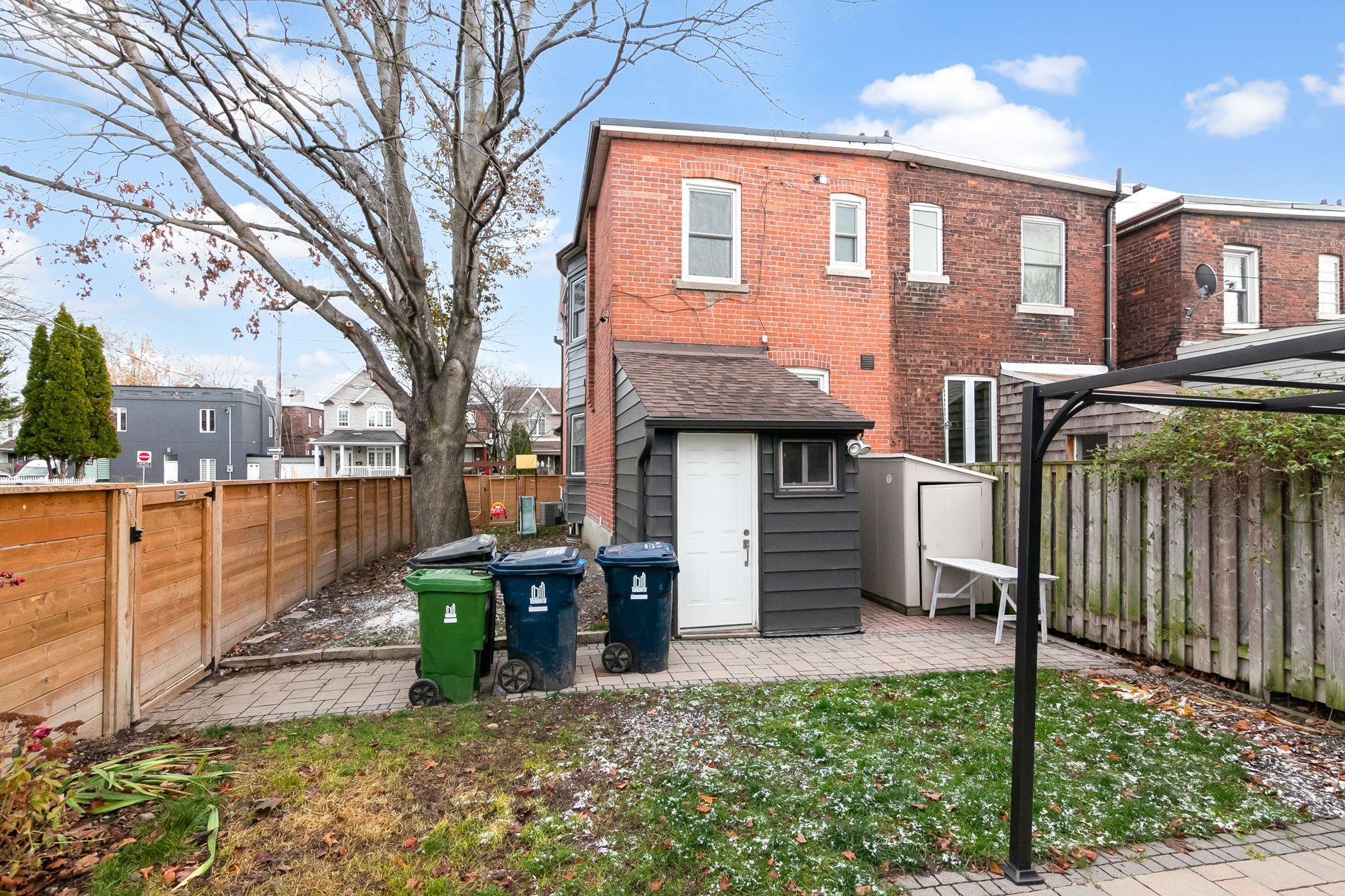 Beautifully updated semi in christie pits! Excellent corner lot with 3 bedrooms, 3 bathrooms & over 1,800 sqft of total living space. This home features modern hardwood throughout, an open concept kitchen with breakfast bar, stainless steel appliances & w/o to backyard. Upper level includes a spacious primary bedroom with beautifully exposed brick, bay window & large closet. 2 additional well sized bedrooms & full 4pc bath. Laundry in 3rd bedroom can easily be moved downstairs if preferred. Large lower level rec room with wall kitchen, 3pc bathroom, den & additional laundry room. Private backyard with new fence recently installed. Ample street parking available.