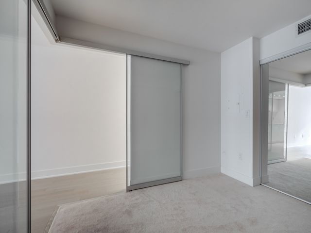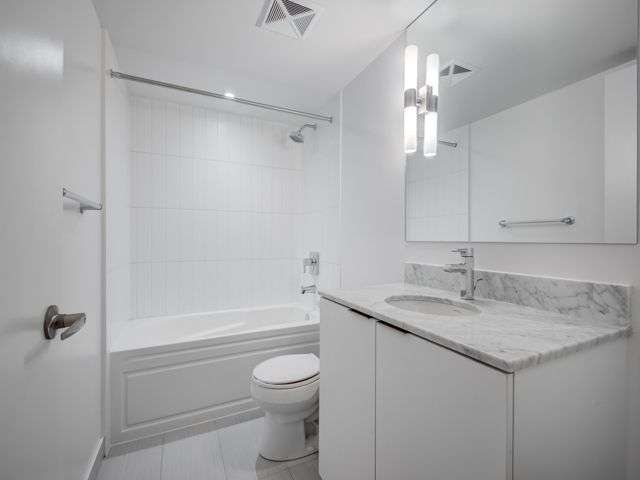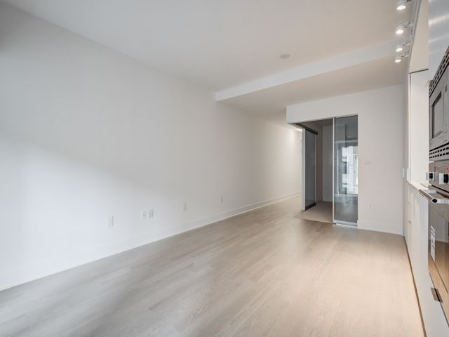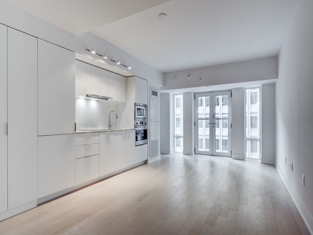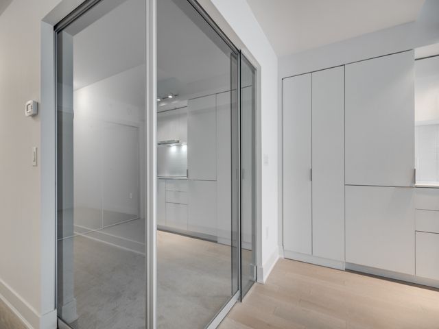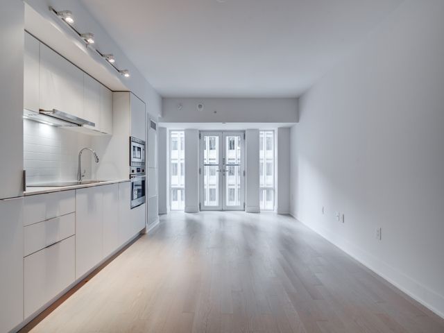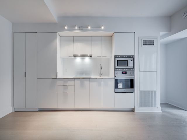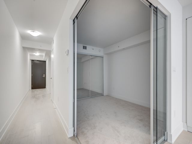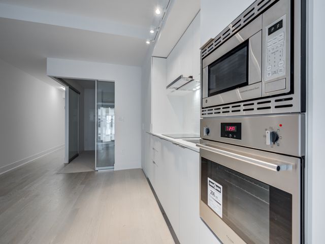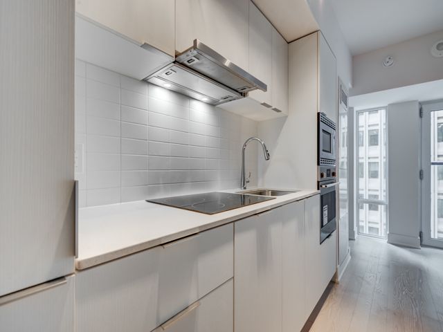 Stunning 1 bed, 1 bath premium & modern finishes. Open concept. Beautiful colour scheme w/ elegant design. Master w/ dbl mirrored closet, soft plush hardwood & glass doors. Modern kitchen w/ b/i fridge & dw, backsplash, track lighting & ample cabinetry. W/r w/ large vanity, full-sized bath & storage space. Living w/ w/o to balcony, nook - perfect for desks & computer, hardwood. Premium location!