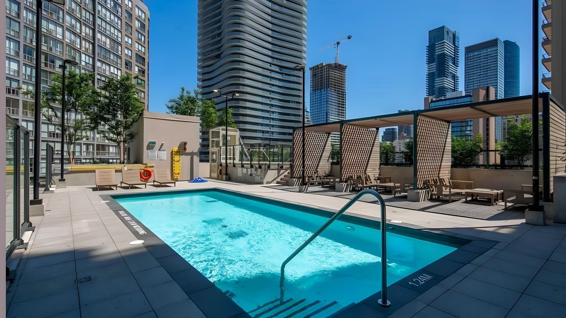 • Building includes 24-hour concierge, fitness centre, and outdoor pool.
