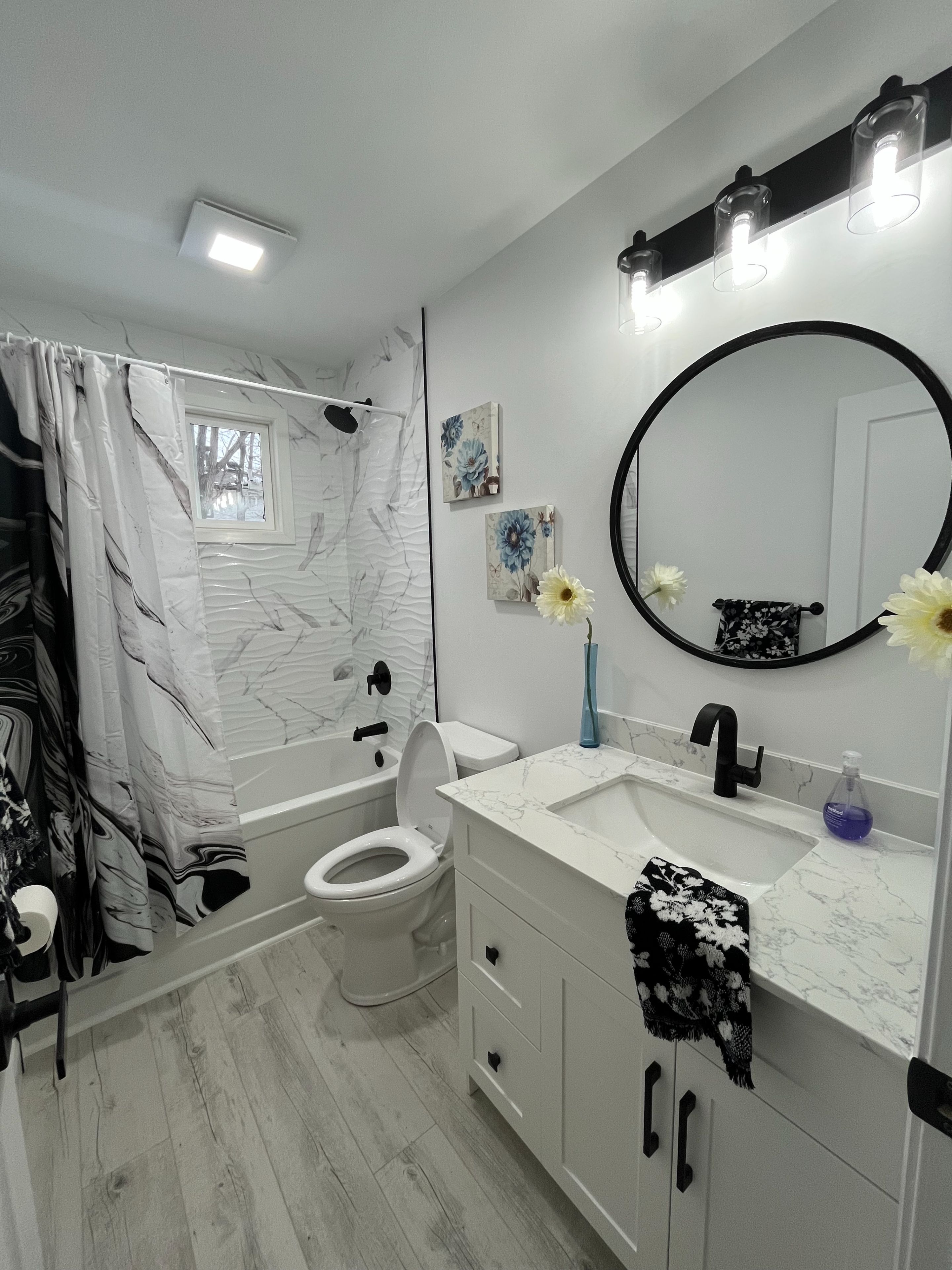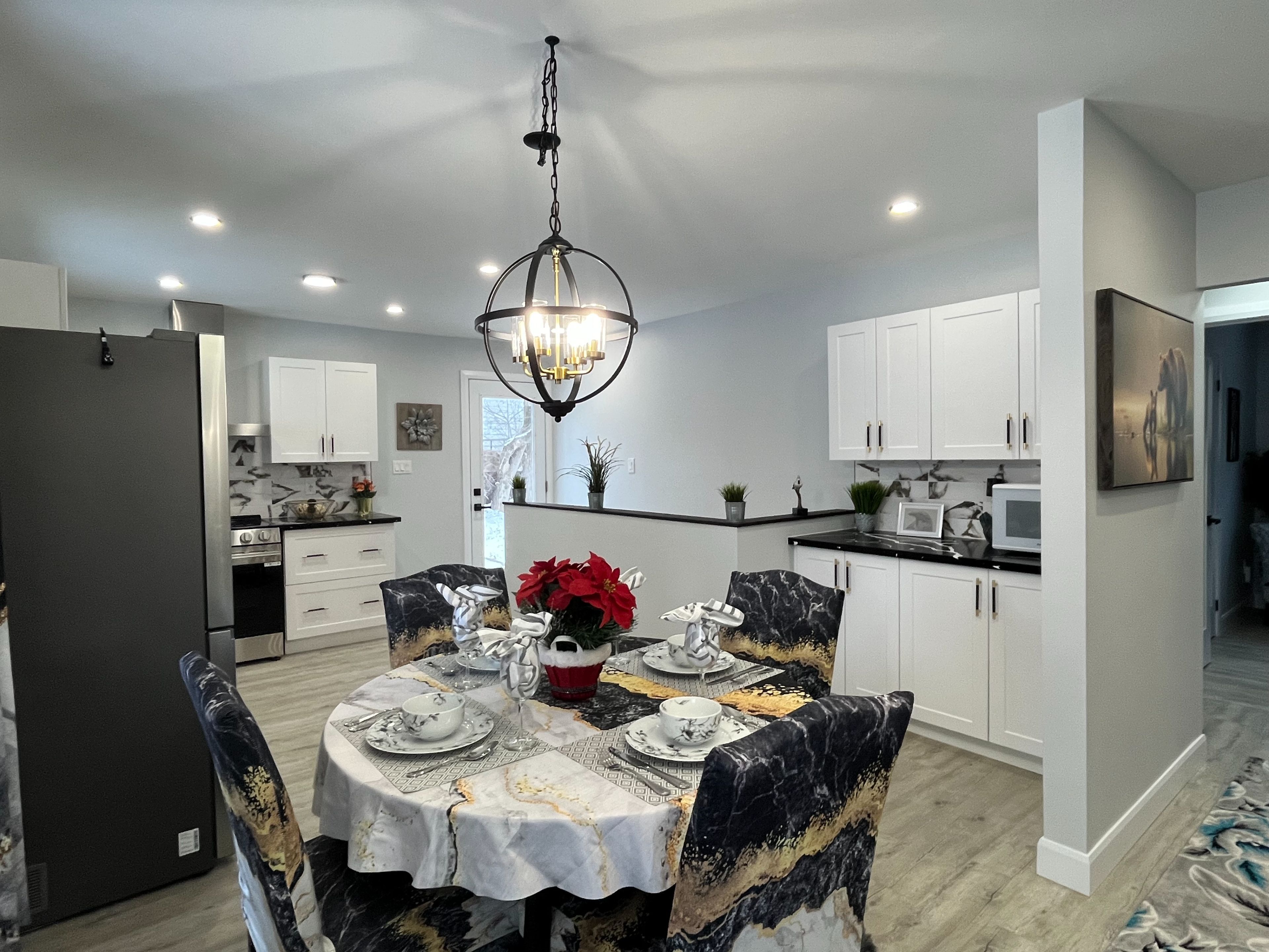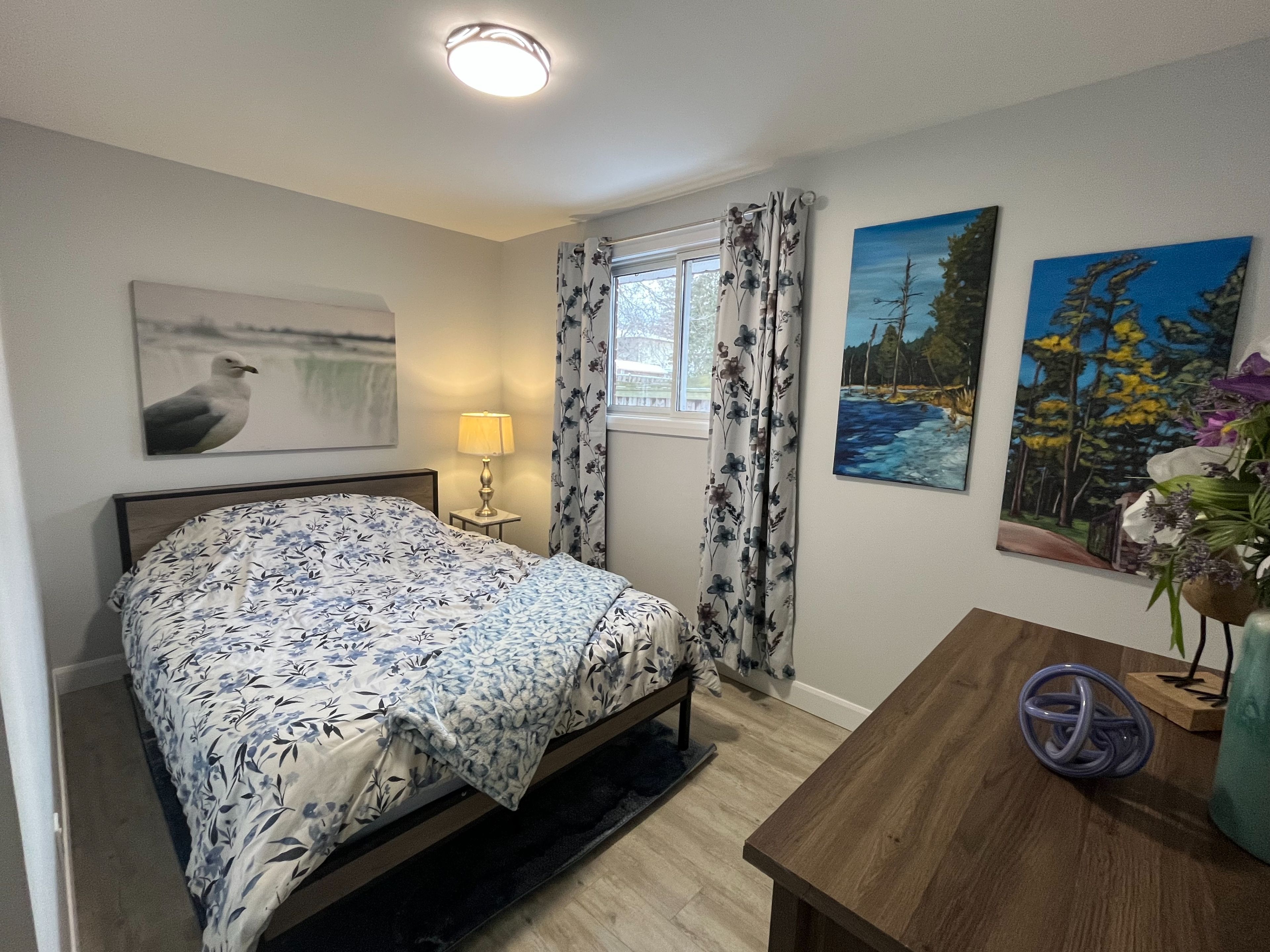 Nestled on a quiet court. Close to parks, walking trails, rec centre & the 401. 3 bedroom bungalow just full of upgrades. All brand new main floor windows, 2 exterior doors and a garage door. Kitchen has band new cabinets, quartz counters & appliances. All new flooring, doors, trim & paint on the main floor. The bathroom is fully renovated with quartz counter tops. The basement is unfinished but has a private entrance & rough in for both kitchen and bathroom. Income potential & added value for the future. House also has a brand new 200 amp breaker panel & there is parking for 5 vehicles.