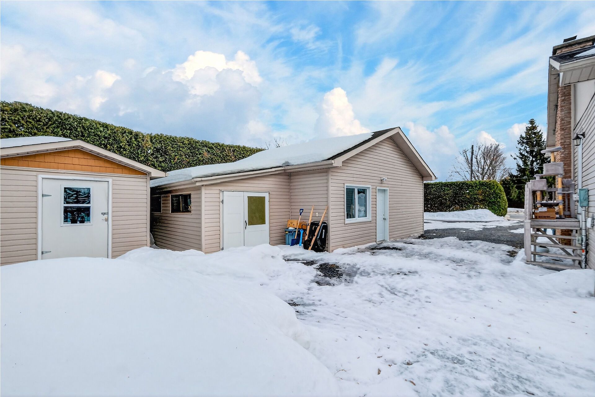 • Detached garage with an insulated workshop and additional storage options.