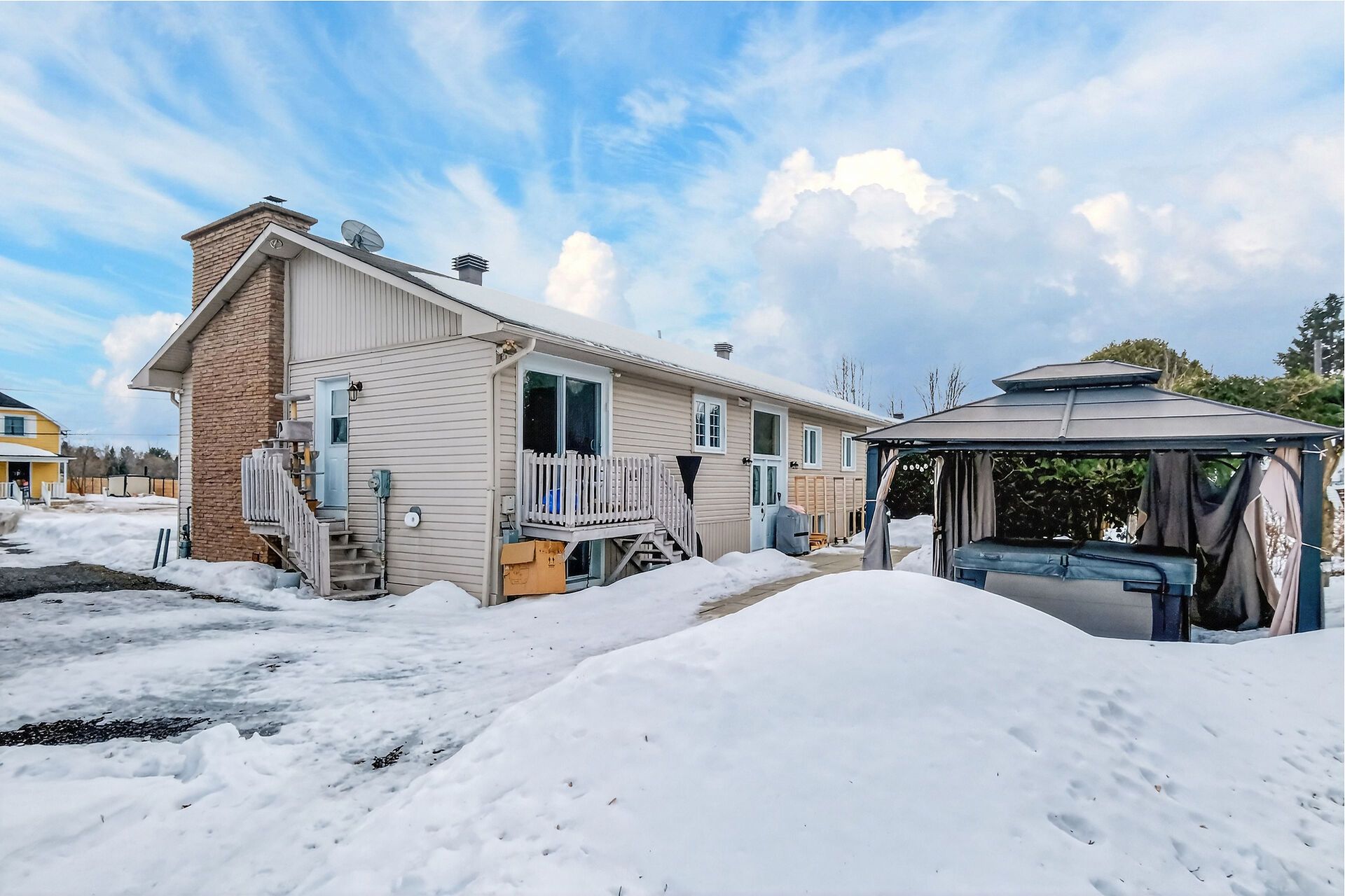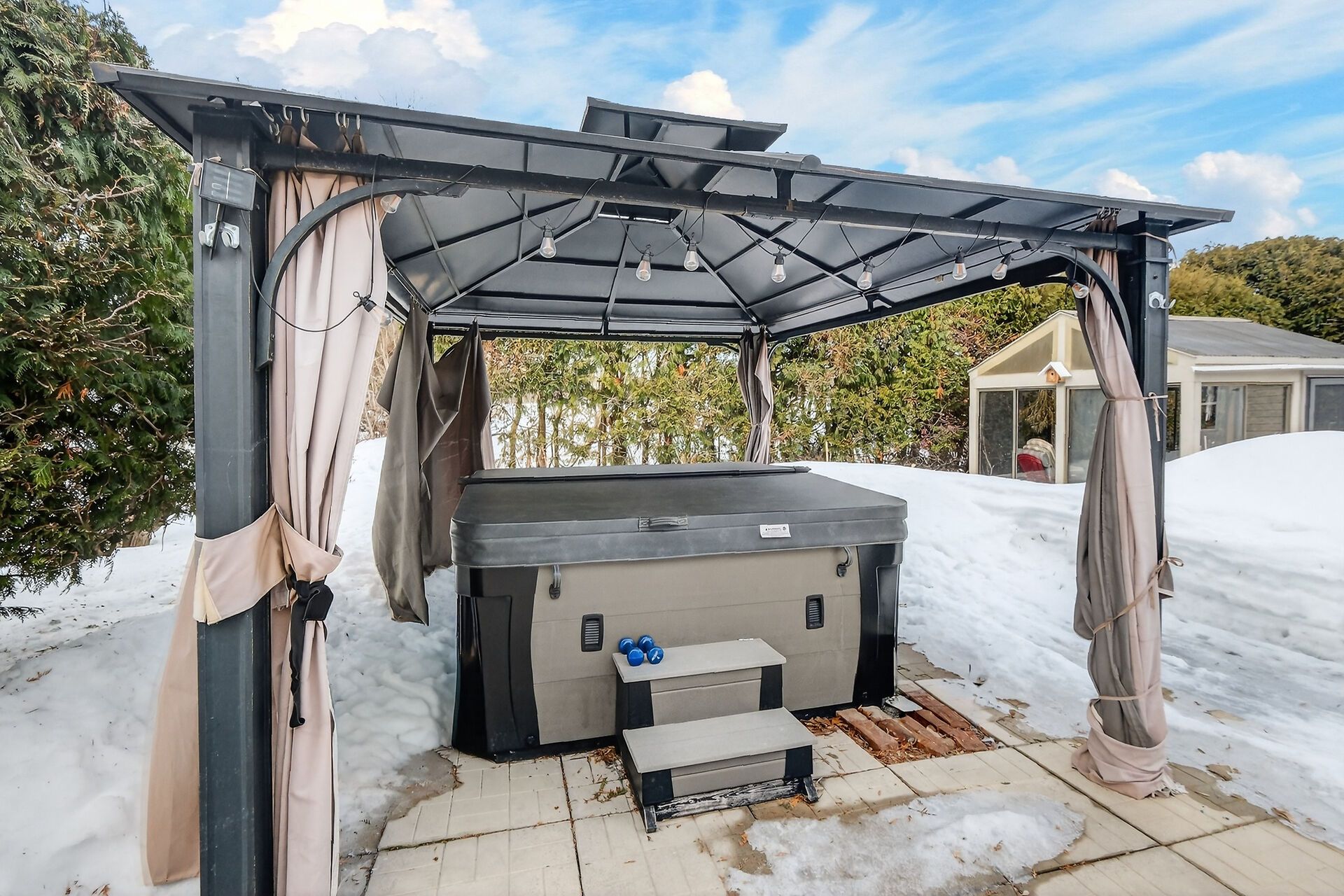 • Outdoor amenities include a patio, gazebo, hot tub, and ample parking.
