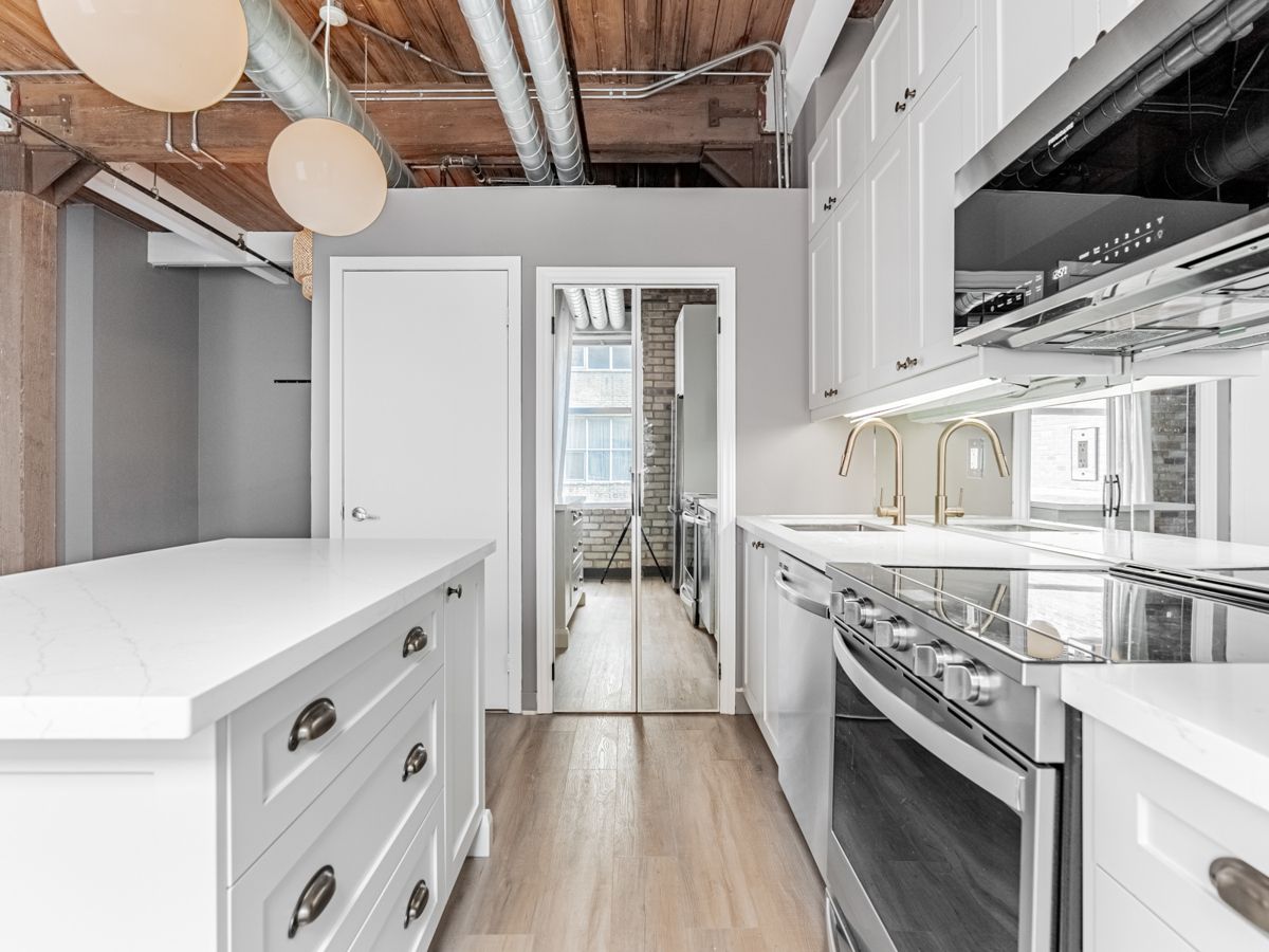 A rarely offered loft in one of toronto's most sought-after neighbourhoods! Tastefully updated with exposed wood/steel post & beams, natural brick & soaring 12 foot original wood ceilings. A stunning, brand new kitchen showcases all updated stainless steel appliances, quartz countertops, ample storage & a convenient center island. An oversized west-facing window allows an abundance of natural light throughout. Extras:directly across from trinity bellwoods park. Steps to dundas, ossington & queen street w shopping, cafes & galleries. Easy access to parkdale, martin goodman trail & lake ontario. Public transit at your door step.
