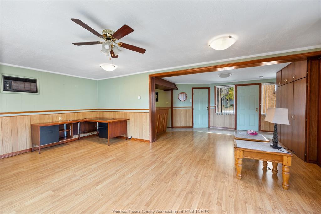 Don't miss the opportunity to own this residence. Located in a highly desirable neighborhood of south windsor, this brick ranch home (apprx. 1600 sq ft ) has been updated with windows, doors, and a furnace. The property boasts a spacious, fenced backyard with a large 11x16 powered shed and a six-car concrete driveway. Additionally, there is an attached one-car garage equipped with a separate 220-amp electrical box. Interior features include natural hardwood flooring, three bedrooms, a three-piece bathroom, and a laundry room. The open-concept kitchen and living area create a welcoming atmosphere, complemented by a generously sized family room with a built-in bar. This residence is move-in ready for its new owners. Traditional listing, open to offers.