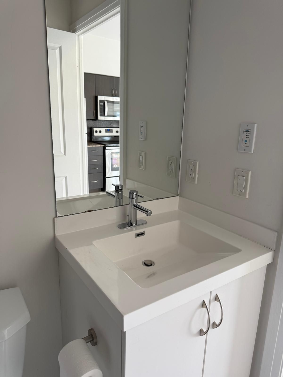 • Modern kitchen features quartz countertops and stainless steel appliances.