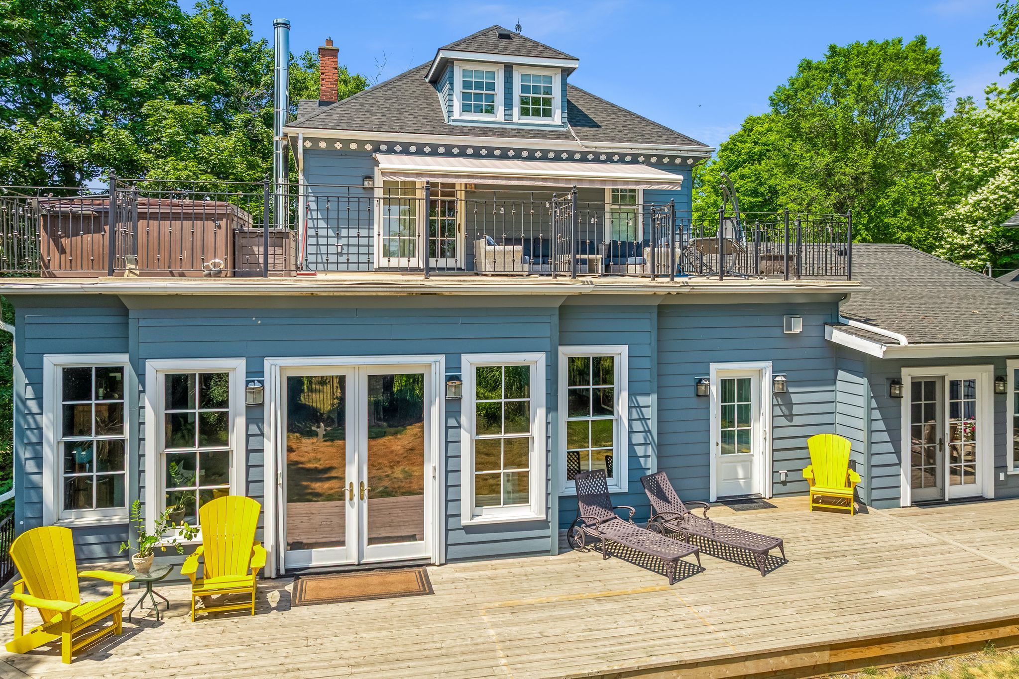 Welcome to an extraordinary waterfront property on prestigious beach boulevard in hamilton! With 104 feet of frontage, this designated historic gem offers breathtaking, unobstructed lake views-a rare find in this coveted location. The main residence seamlessly blends historic charm with modern upgrades, featuring 4 bedrooms, 2. 5 bathrooms, and a spacious layout. Stained glass windows, a wood-burning masonry heater fireplace w/ pizza oven at the heart of the home, and multiple living areas-including a living room, family room, and dining room-create a warm and inviting atmosphere. A major addition in 2008 expanded the space while maintaining its timeless character. Step outside to incredible outdoor living spaces-a wrap-around porch along the front of the house, a deck spanning the entire rear, and a massive second-floor balcony with a hot tub, all designed to take full advantage of the stunning lake views. The property also includes a separate in-law suite with 1 bedroom, 1 bathroom, kitchen, vaulted ceilings, and a cozy gas fireplace, offering an ideal space for guests, family or rental potential. Plenty of parking as well as a detached 2 car garage. This is truly a rare chance to own a piece of history in a prime lakeside setting.