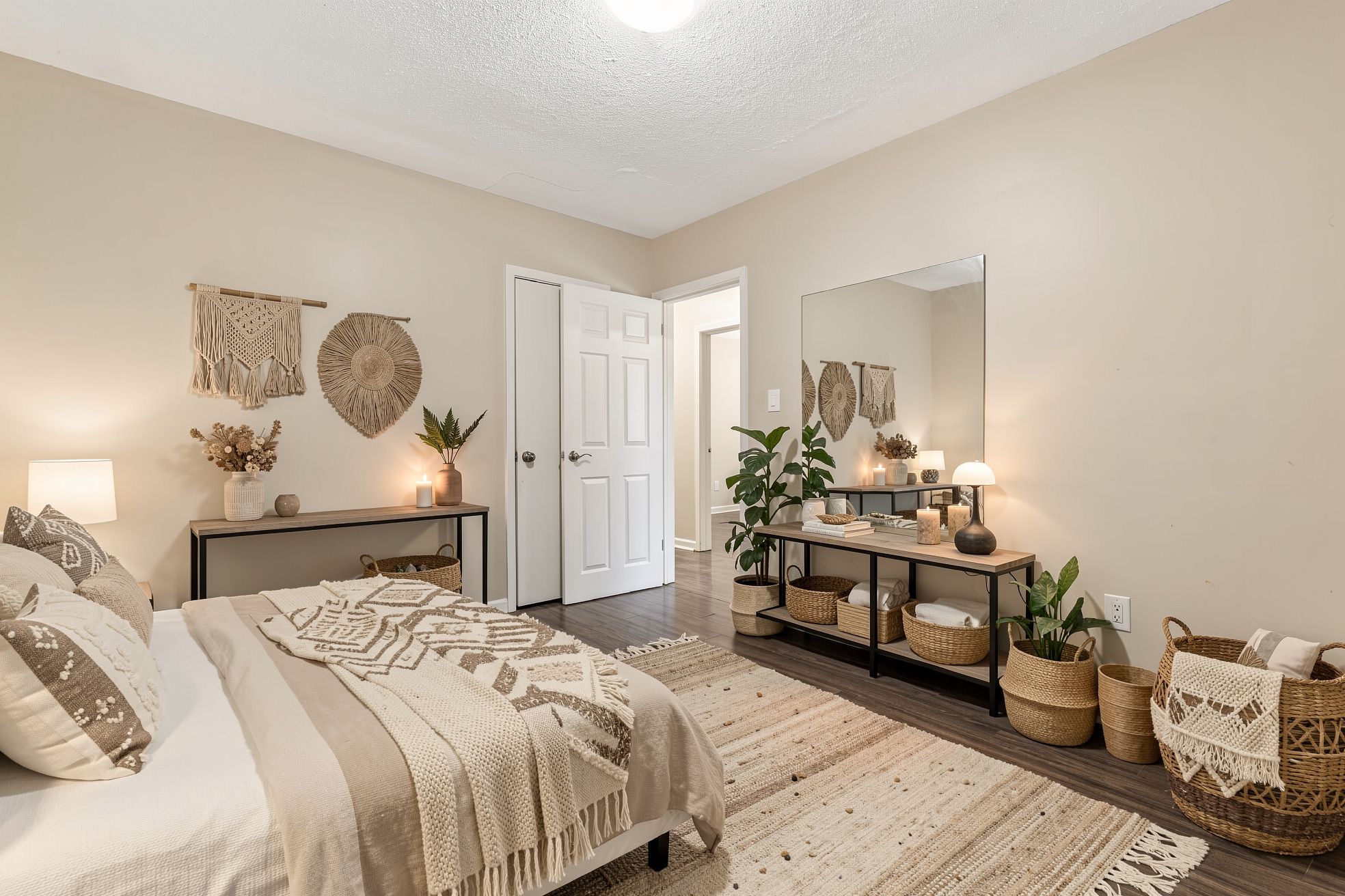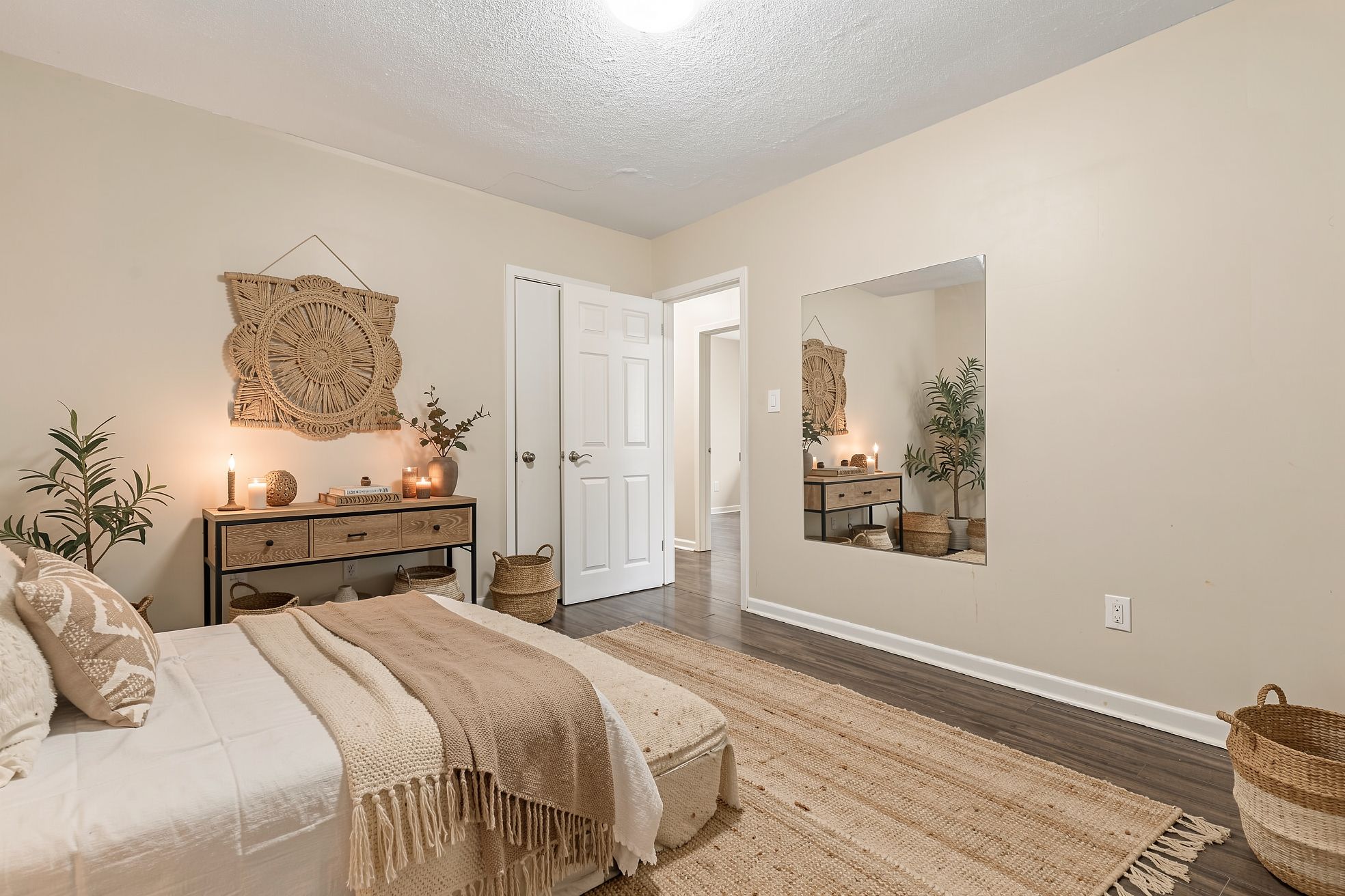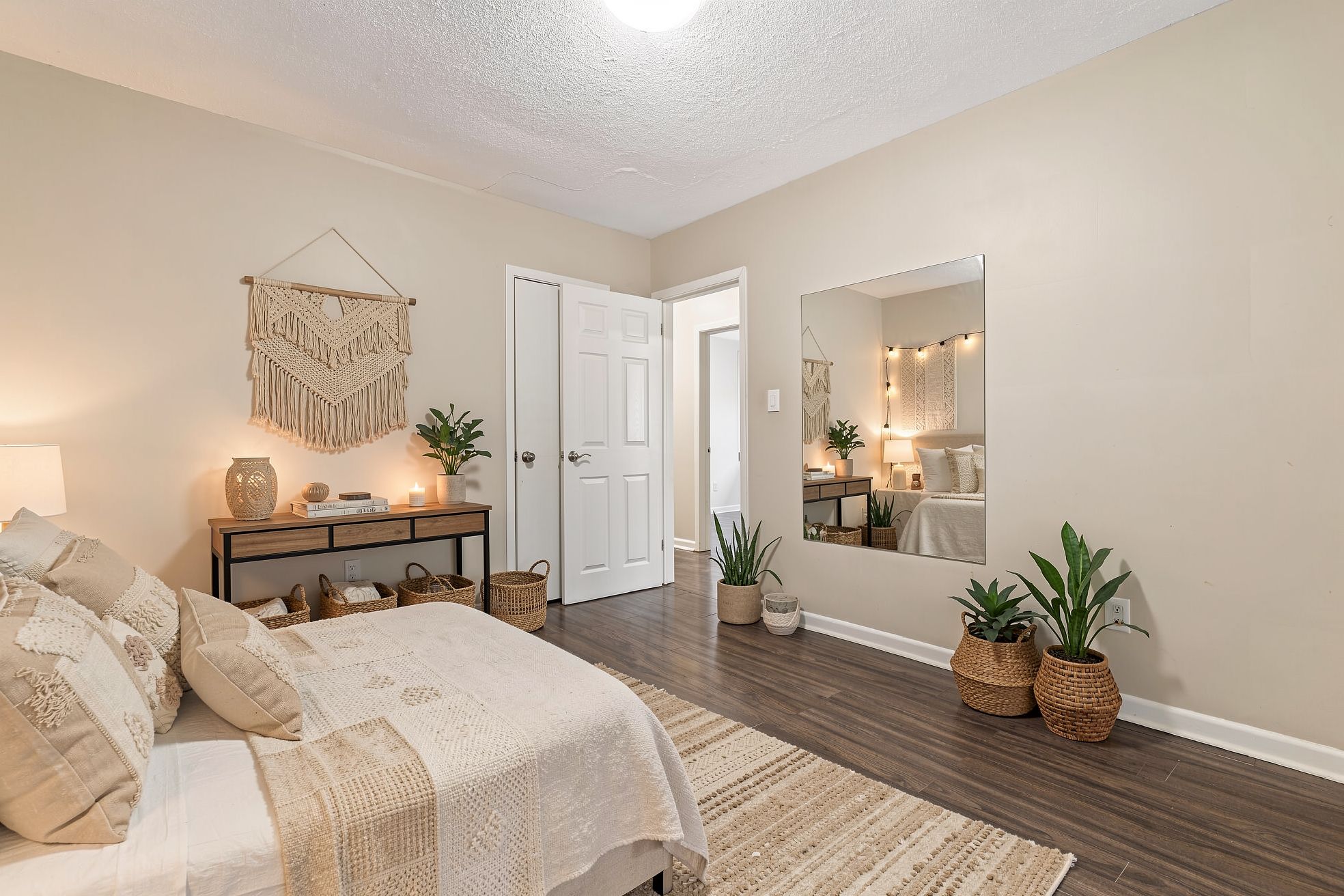 • Bright living space with natural light and laminate flooring.