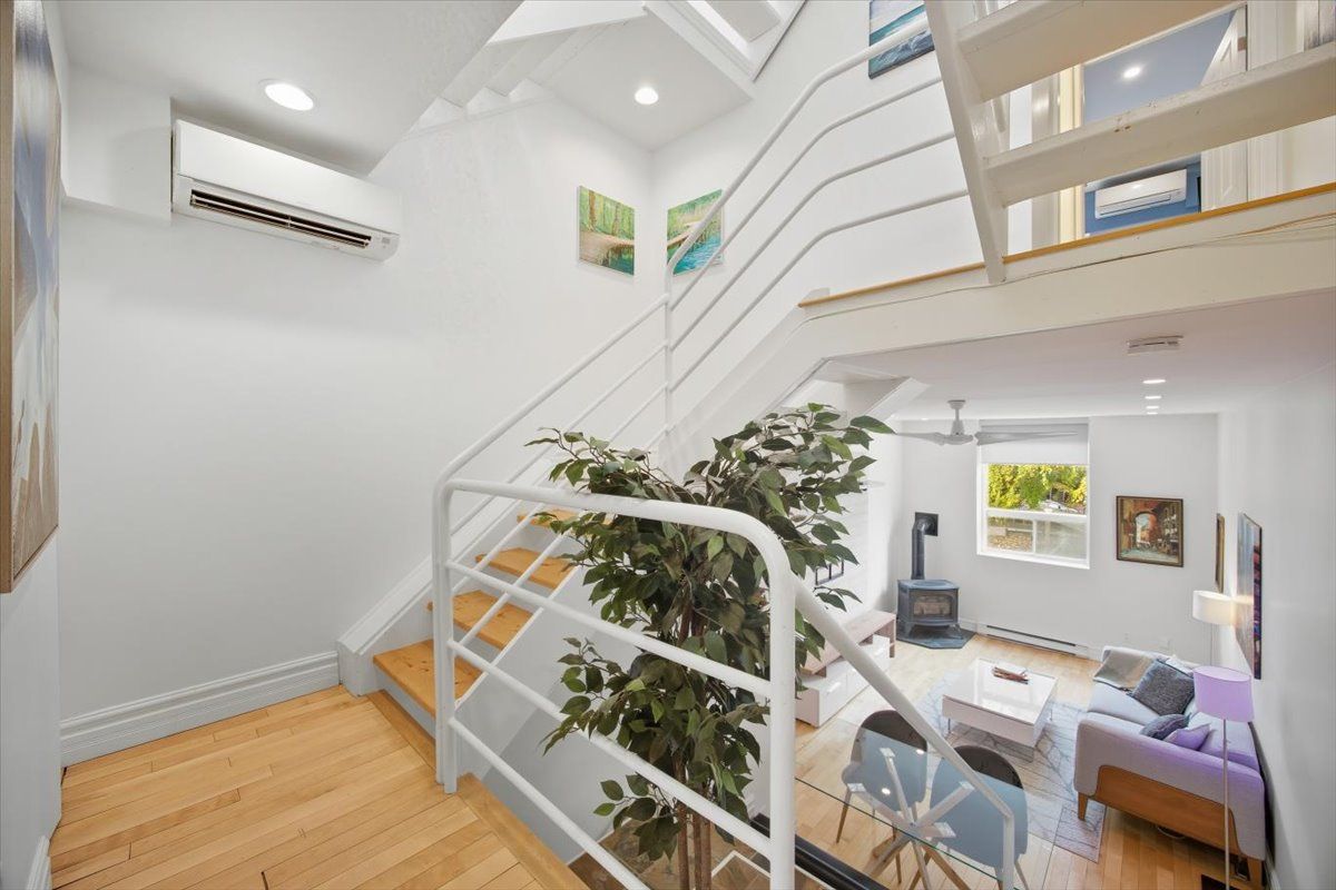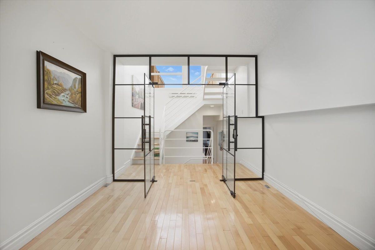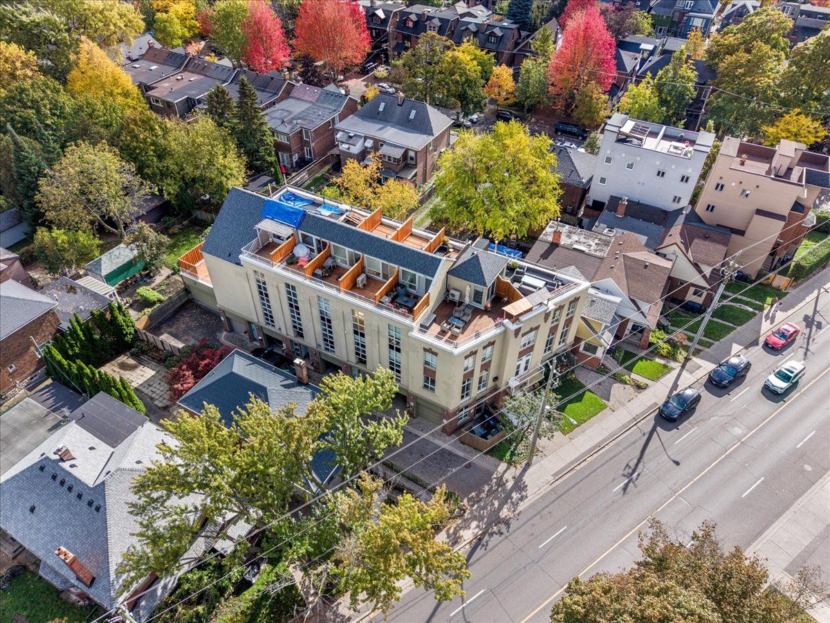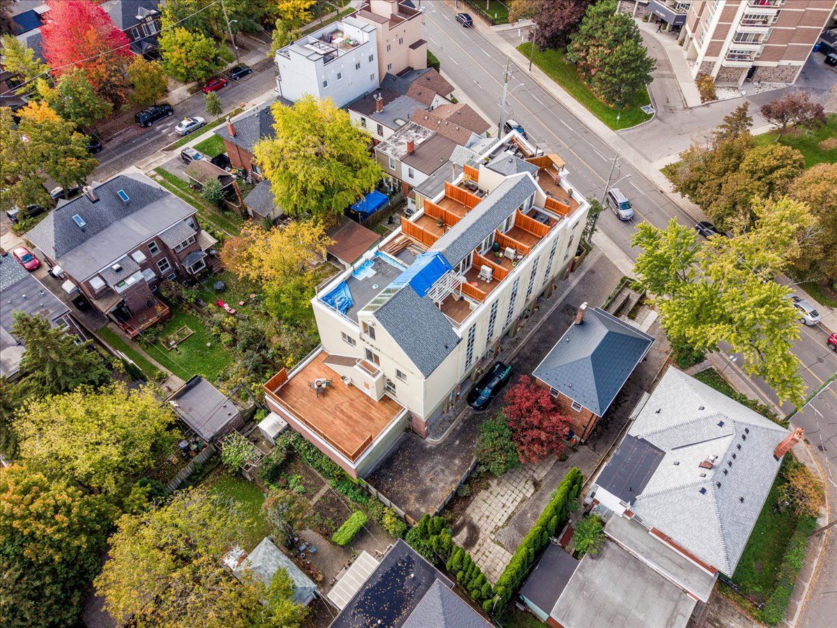 Discover a home that is anything but ordinary. Nestled within the coveted playter estates, the historical don hall lofts present a phenomenal 2-bedroom, 2-bathroom townhouse, once a vibrant 1920s dance hall and later a hippie commune. Now, this multi-level sanctuary is a light-filled retreat. Soaring 10-foot ceilings and massive, tall windows bathe the open-concept space in sunshine. The second bedroom is a masterpiece of flexibility, featuring a sleek glass wall system that can be a sun-drenched home office, a peaceful nursery, or a bright and airy bedroom. A gas fireplace creates a cozy ambiance, perfect for unwinding in your living/dining space. Step outside to your own private escape with two rooftop terraces that offer a serene perch above a quaint, tree-lined street. This is urban living with unparalleled tranquility, yet you're moments from the broadview transit hub, the don valley trail system, and the energy of the danforth. Parking and storage locker complete this exceptional offering. Seize the chance to own a truly artistic home in one of toronto's most sought-after neighbourhoods. Your history-rich oasis awaits.