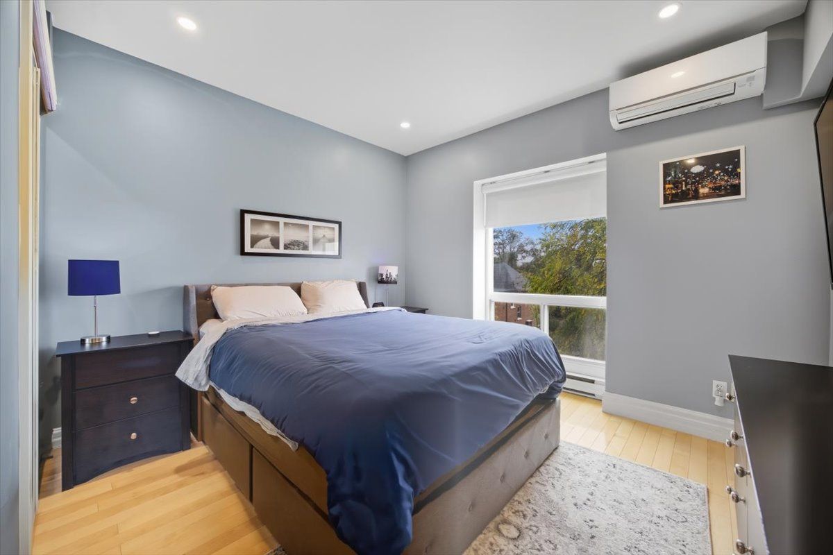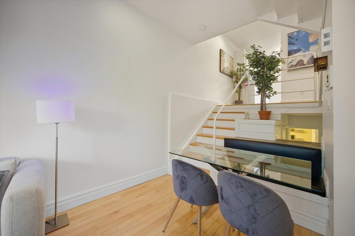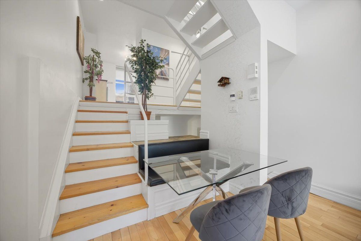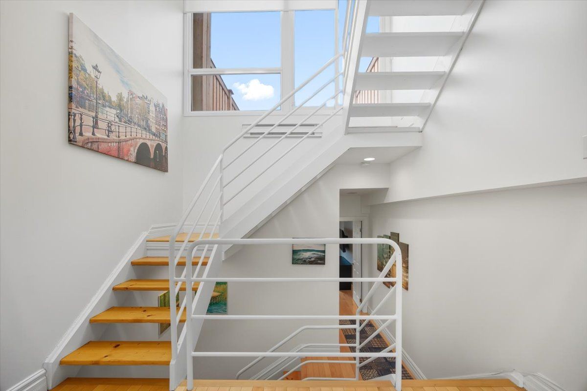 Discover a home that is anything but ordinary. Nestled within the coveted playter estates, the historical don hall lofts present a phenomenal 2-bedroom, 2-bathroom townhouse, once a vibrant 1920s dance hall and later a hippie commune. Now, this multi-level sanctuary is a light-filled retreat. Soaring 10-foot ceilings and massive, tall windows bathe the open-concept space in sunshine. The second bedroom is a masterpiece of flexibility, featuring a sleek glass wall system that can be a sun-drenched home office, a peaceful nursery, or a bright and airy bedroom. A gas fireplace creates a cozy ambiance, perfect for unwinding in your living/dining space. Step outside to your own private escape with two rooftop terraces that offer a serene perch above a quaint, tree-lined street. This is urban living with unparalleled tranquility, yet you're moments from the broadview transit hub, the don valley trail system, and the energy of the danforth. Parking and storage locker complete this exceptional offering. Seize the chance to own a truly artistic home in one of toronto's most sought-after neighbourhoods. Your history-rich oasis awaits.