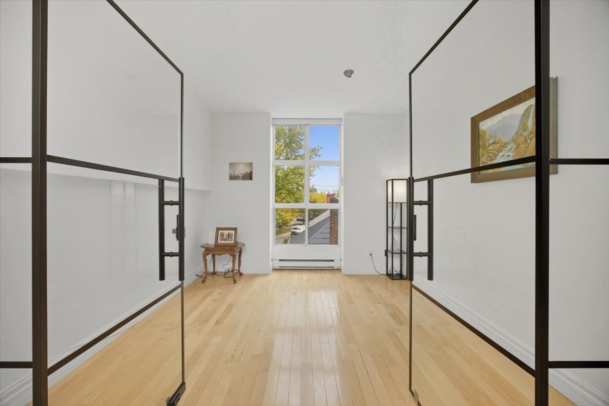 • Bright, open-concept space with high ceilings and large windows.