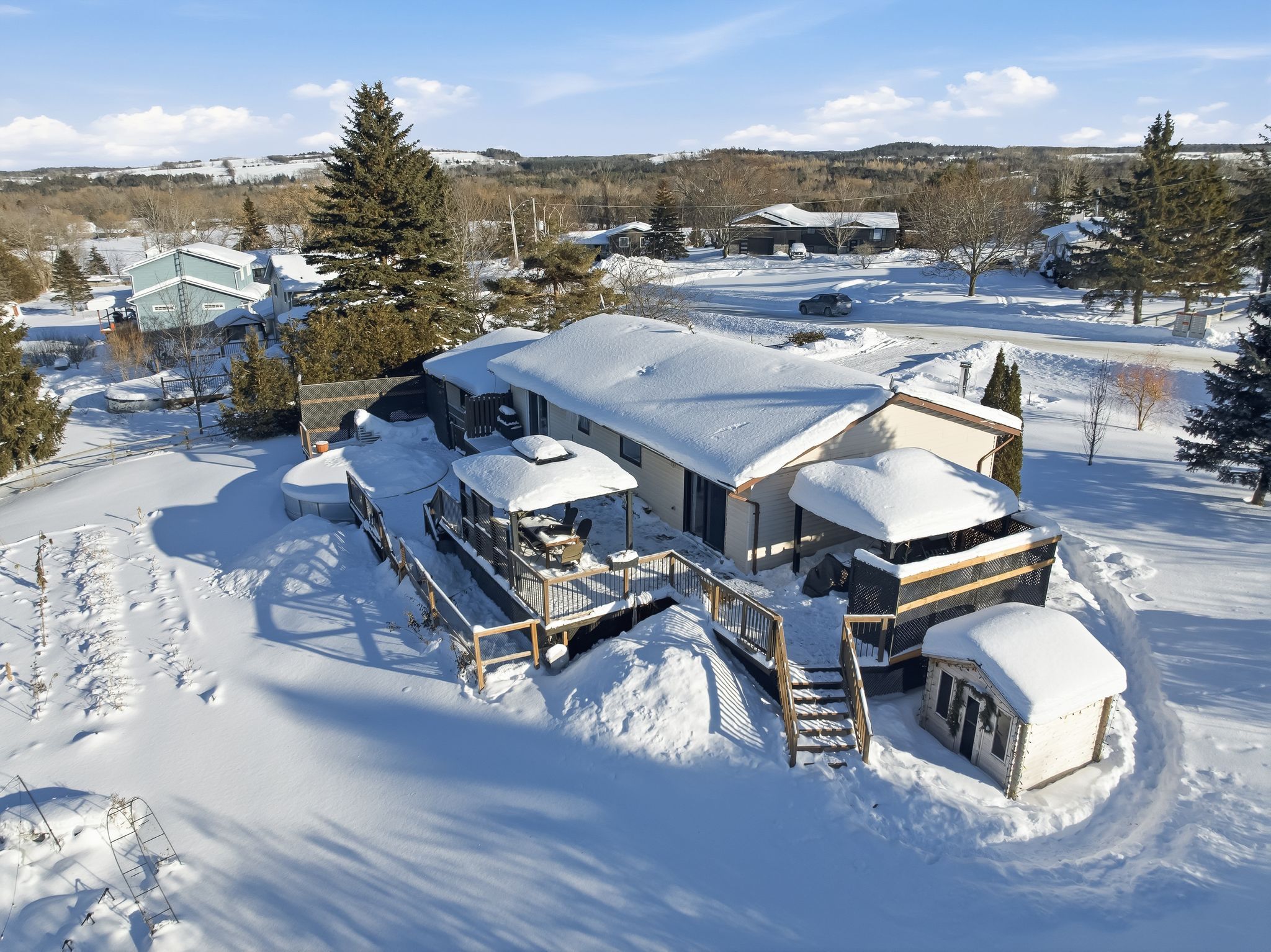 Walk through the front door from the beautiful newly stamped concrete walkway and instantly feel the gratification and tremendous sense of satisfaction provided by the complete transformation to everything that is the new 9574 ardagh crescent! Perfectly set on its private and mature . 58-acre lot, this 3 bedroom (easily converted into 4), 2-full bathroom home has been totally revitalized with an all-encompassing list of remodels, renovations, updates and upgrades, both inside and out. Brand new 3-piece bathroom w/ custom glass walk-in shower added in lower level, central air conditioning installed, light fixtures, accent walls, lvp flooring throughout, kitchen remodel featuring quartz counters, backsplash & island, new black windows, patio doors, garage doors, landscaping and freshly painted are a few notable additions worth mentioning. Highlighting the stunning main floor is the overhauled primary suite showcased by its large walk-in closet, neutralization of decor, patio walk-out and direct access to the breathtaking 5-piece bath. The lower level provides an abundance of possibilities for the new owners. The recently added bathroom and separate walk-up entrance offer opportunity for an in-law suite, rental income, multi-generational living and whatever else you can imagine. Easily convert home to propane forced air. The private backyard setting provides its own oasis w/ oversized deck space, gazebos, above ground pool, gardening and so much more. Entertain those closest to you or use the backdrop and tranquility to collect your thoughts and bask in some well-deserved mindfulness! Located in the scenic community of harwood, you are walking distance to rice lake and some of the best fishing in the country. Moments to parks, northumberland trails and positioned so you are just a short drive to cobourg, port hope and the city of peterborough. Welcome home, you will certainly not be disappointed! **must see video and sales brochure attached**