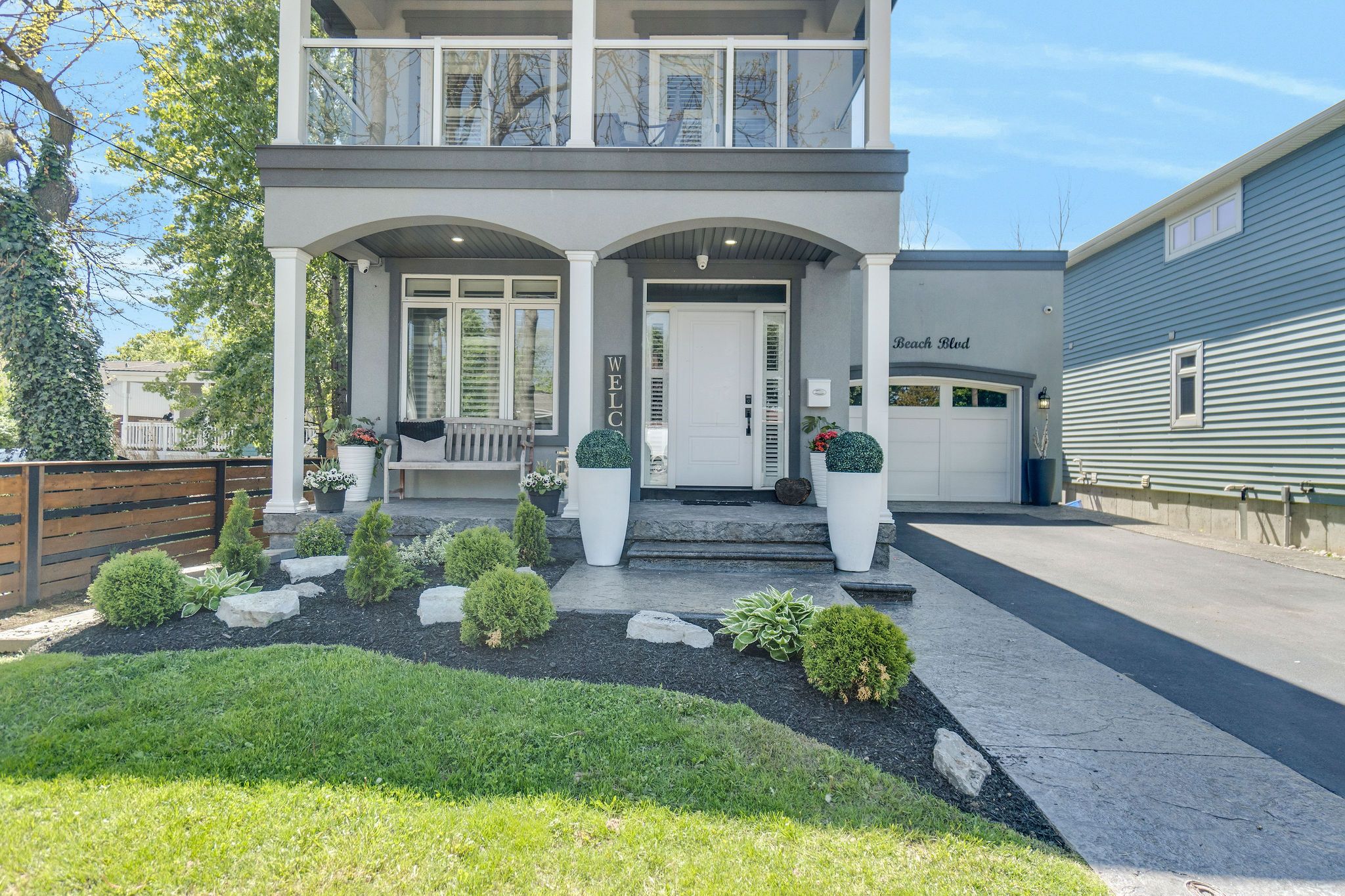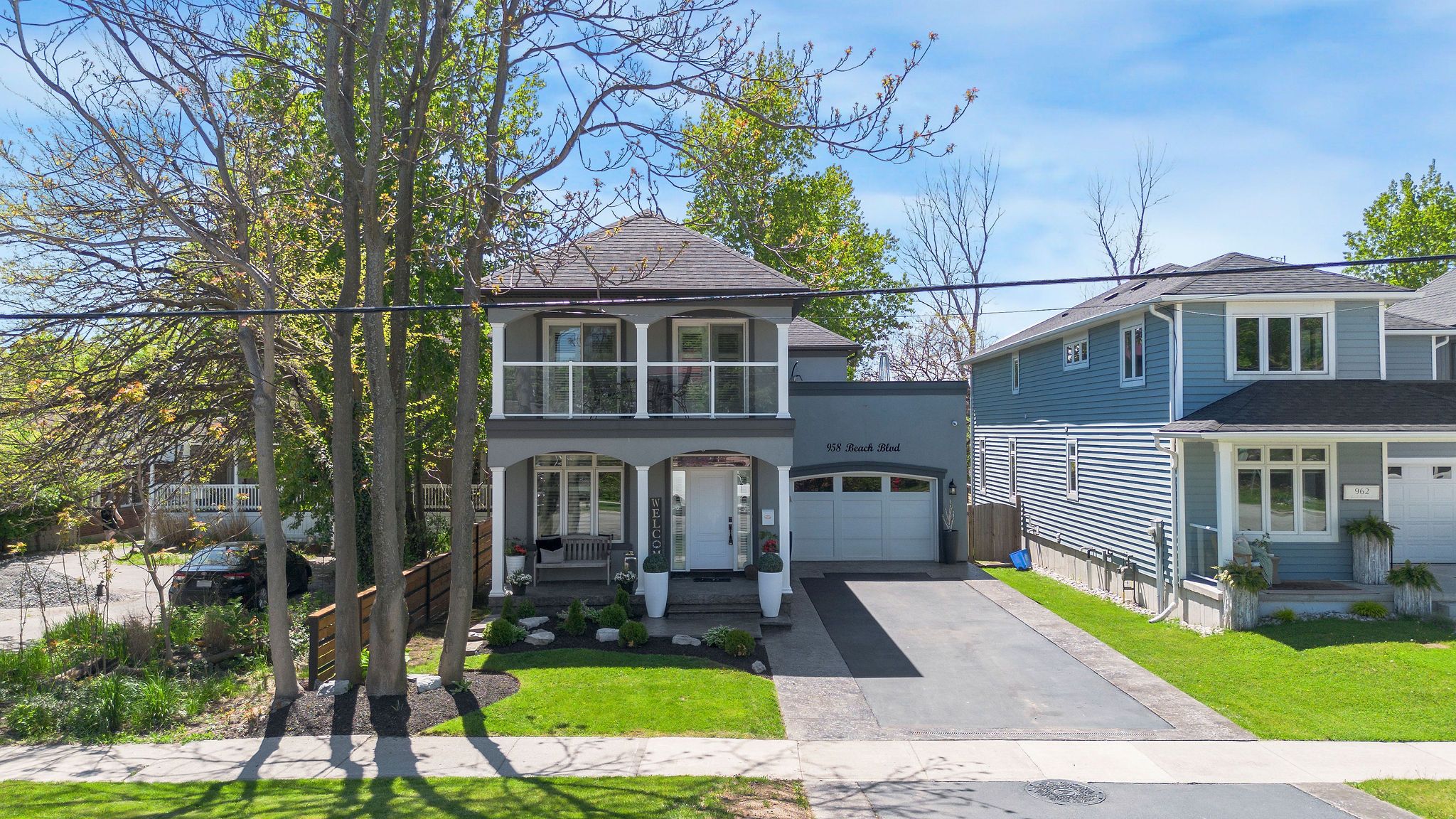 Welcome to 958 beach blvd! Stunning, custom built, 3 bed 3 bath home situated on a large 170 deep lot located in the desirable hamilton beach community. Bright and spacious with a functional, open concept floor plan. Located just steps to the waterfront trail & sandy beach. Stylish kitchen with centre island, granite counters, stainless steel appliances, custom cabinetry with under valence lighting. Pot lights, 9 ceilings, california shutters and engineered hardwood throughout. Main floor office or den area off the foyer. Laundry room with cabinetry & laundry sink on the main floor. Sliding doors off dining area to back deck to cabana with fireplace & tv. Off the back deck there is a massive, fenced backyard. Glass railing off living area leads to second floor sitting room, with sliding door walk out to 363 sq ft terrace with water views. Primary bedroom offers 5pc ensuite, walk-in closet and private 94 sq ft balcony also with water views. Second & third bedrooms are spacious with large closets. Watch the sun rise from your balcony, and relax in the evening with the sunset out back. Close proximity to downtown burlington, public transit, waterfront trail, parks, amenities & quick highway access.
