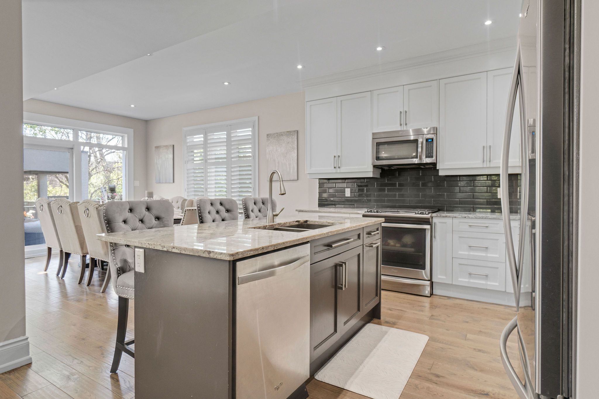 • Bright open concept layout with stylish kitchen and modern appliances.