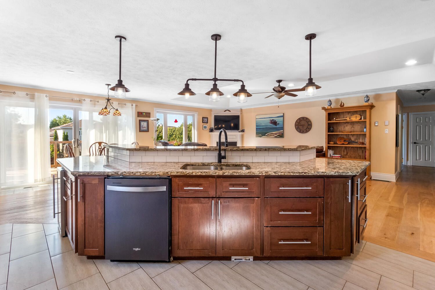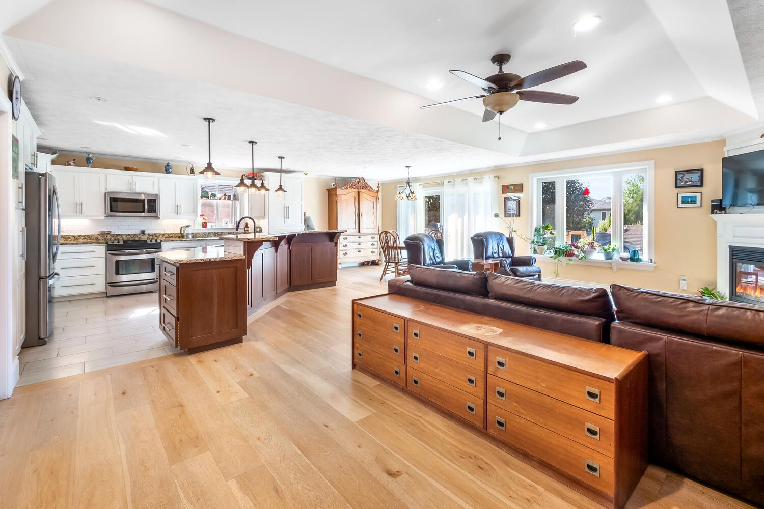 • Open-concept design with vaulted ceilings for a spacious and inviting feel.