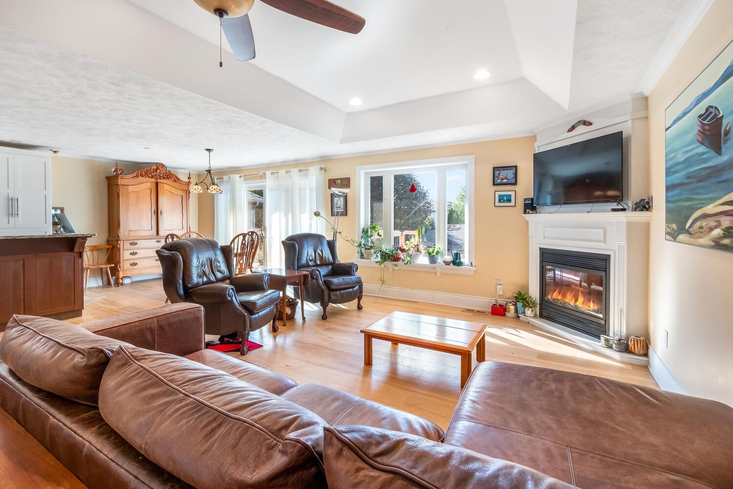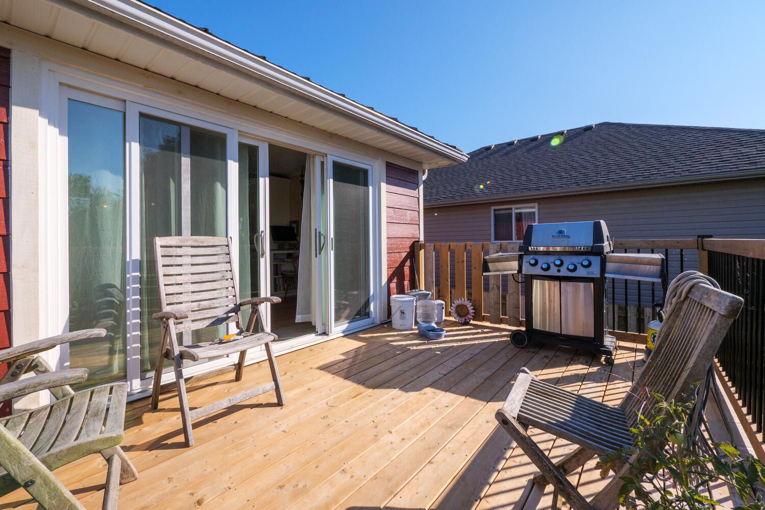 Discover the perfect setting for your family in this expansive home, ideally situated in a desirable port elgin neighbourhood. Built in 2004, this residence combines timeless comfort with modern features, including a durable steel roof, an attached garage, and a fully fenced backyard. Step inside the main level to find an open-concept design that's both inviting and functional. The vaulted ceilings create an airy atmosphere, while the gas fireplace makes the living room a comfortable gathering spot. The kitchen is a standout with beautiful cherry and maple cabinets, handcrafted by hutterites, and flows seamlessly into the dining area. From here, oversized patio doors lead out to a raised deck, perfect for summer barbecues. The main floor provides ample living space with three large bedrooms, a four-piece bathroom, and a dedicated laundry room. The primary suite is a private retreat, offering a spacious walk-in closet and a recently renovated ensuite with a soaker tub and separate shower. The fully finished lower level is a bonus, providing a large recreation room, a guest bedroom, and a three-piece bathroom. Two additional rooms on the lower level, currently set up as an office and a craft space with built-in storage, offer incredible flexibility and could easily be converted into extra bedrooms to accommodate a growing family. This isn't just a house; it's the home you've been waiting for, designed for comfort, space, and a lifetime of memories.