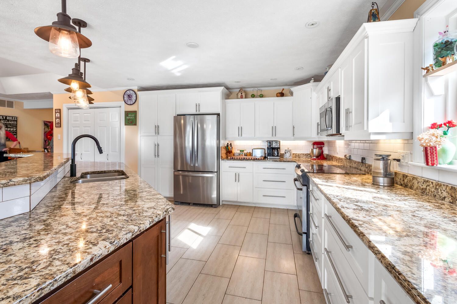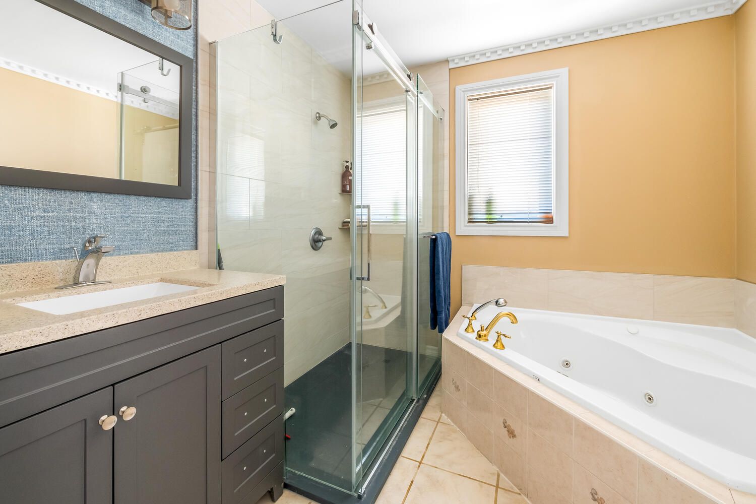 • Private primary suite with walk-in closet and renovated ensuite bathroom.