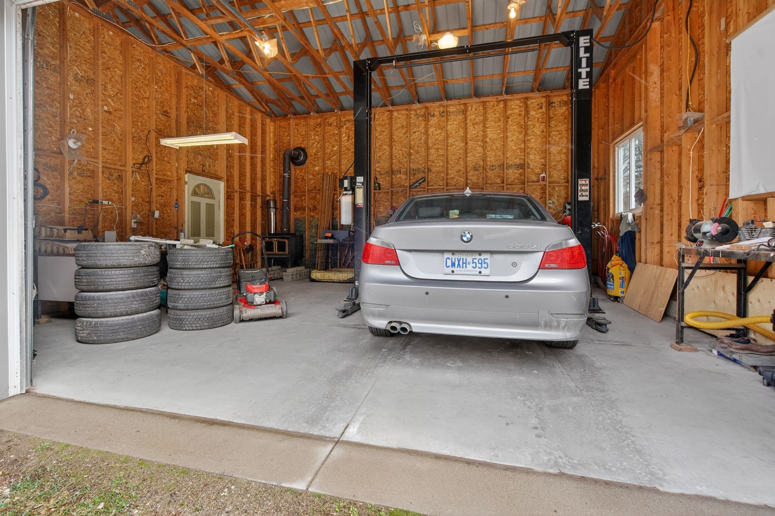 • Recently built 4 car garage with hoist and additional storage options.