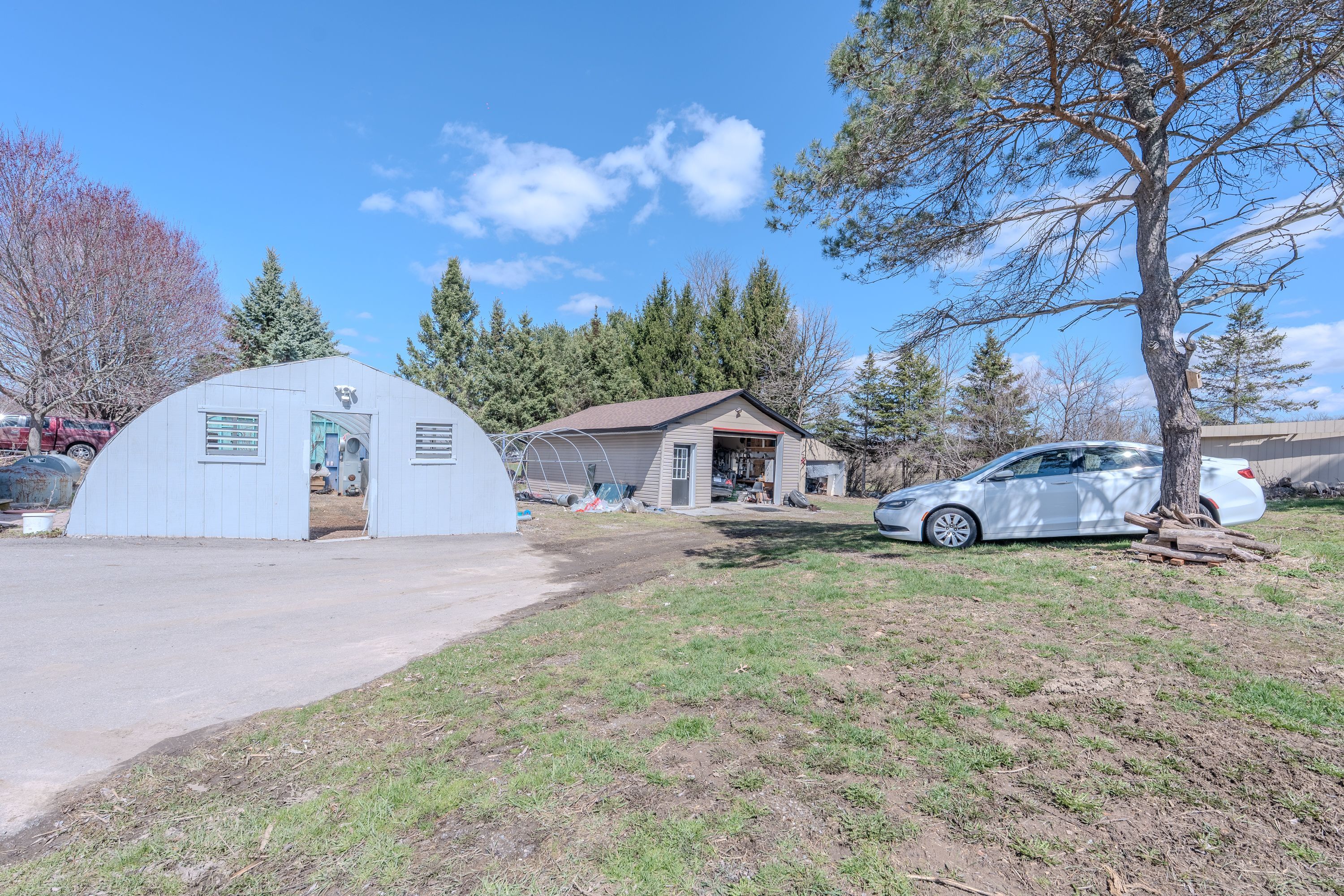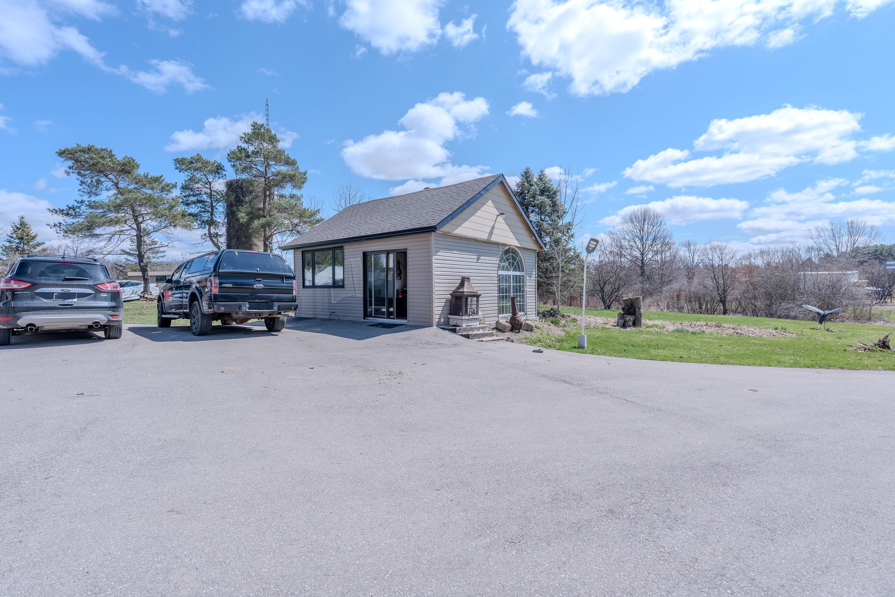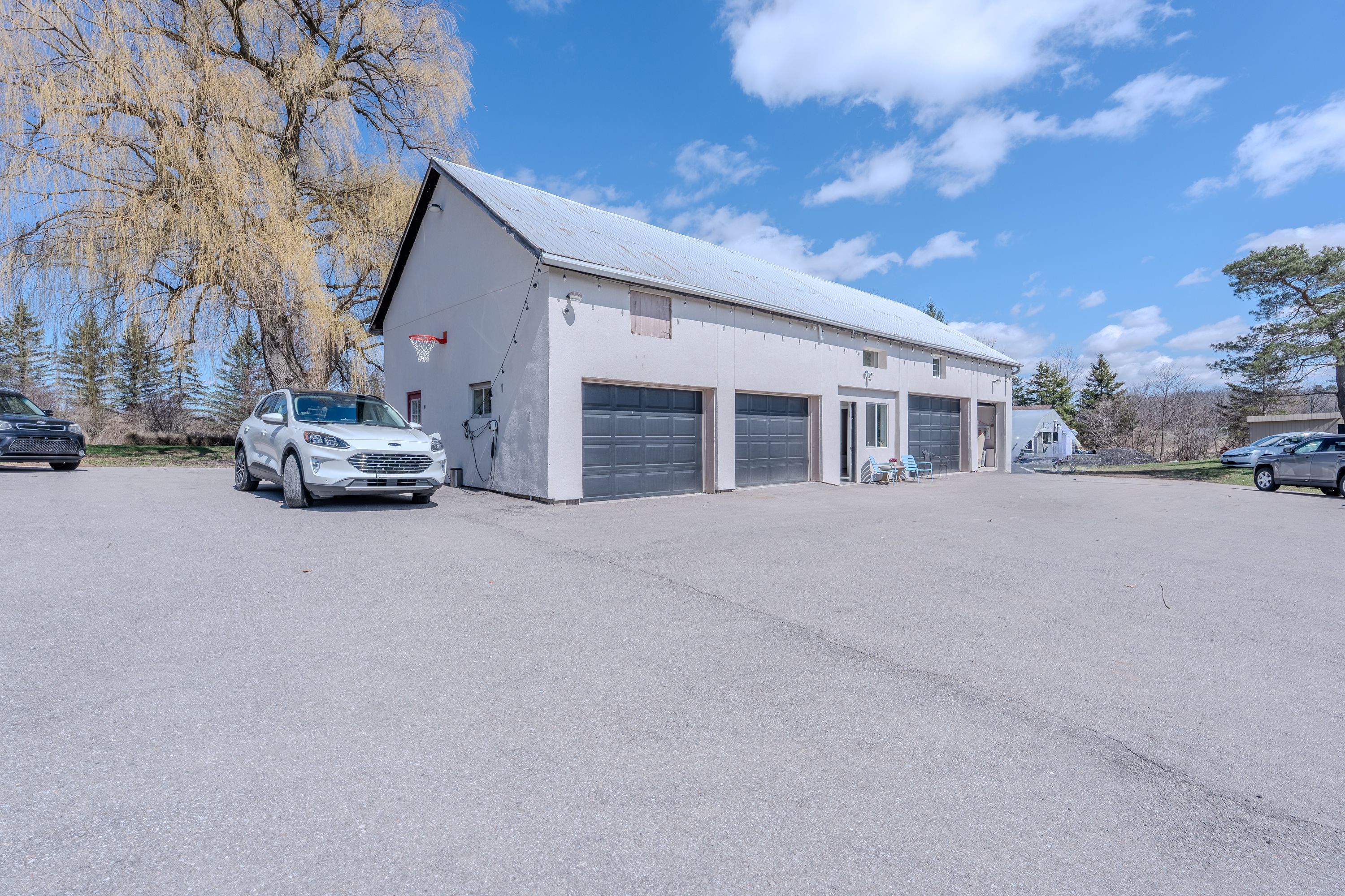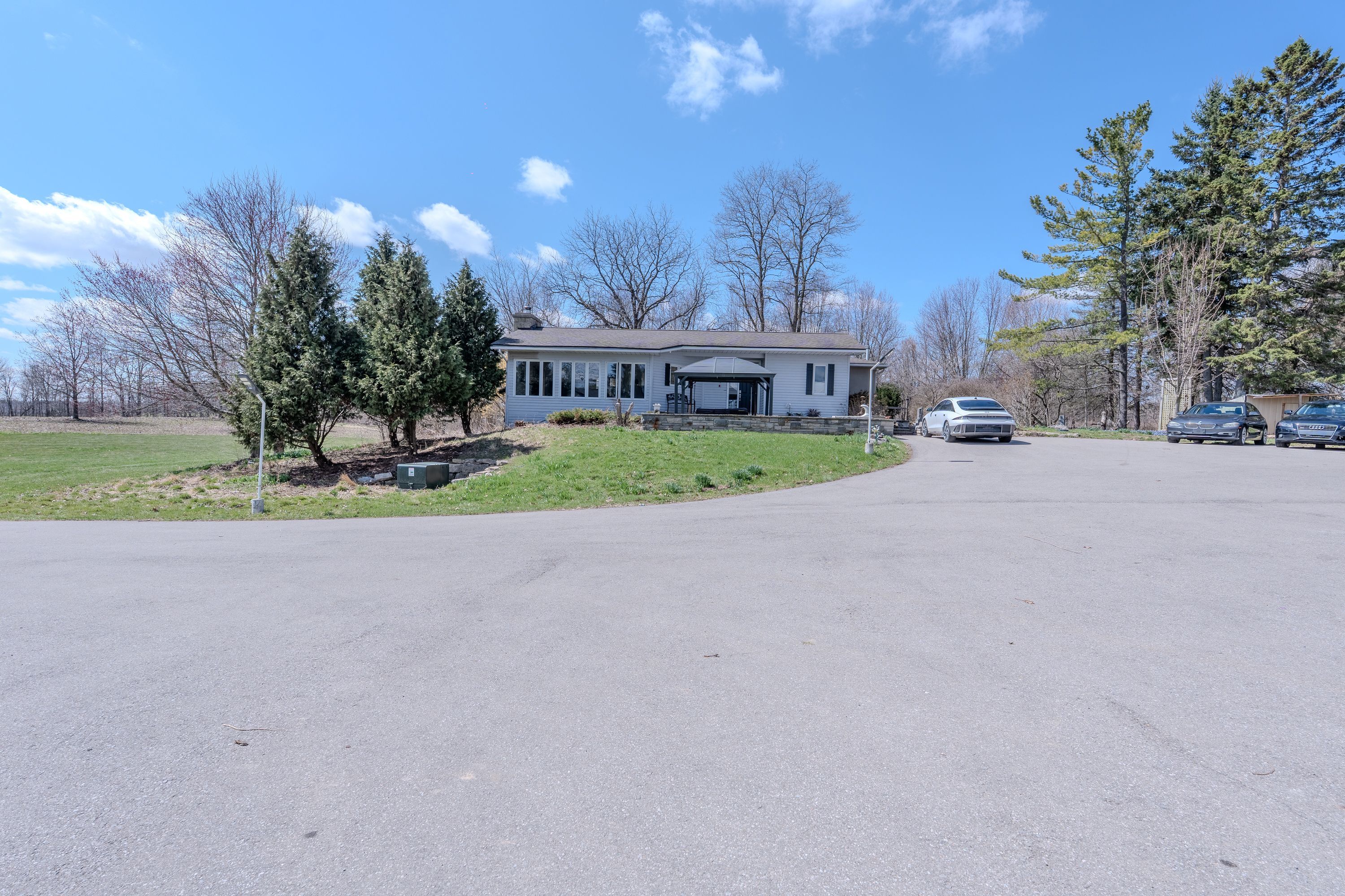 Looking for peace and quiet without sacrificing convenience? This stunning 10. 75-acre country property offers theperfect blend of privacy, space, and proximity to town. Surrounded by nature, it is an ideal setting for family life, withclear night skies full of stars and a peaceful meadow of wildflowers right outside your window, the home is warm,bright, and inviting, featuring exposed wood rafters and a dramatic wall of windows that bring the outdoors in. Spaciousprincipal rooms, hardwood floors, wood and gas fireplaces, main floor laundry, and thoughtful updates throughoutmake this home as functional as it is charming. The impressive great room is perfect for family gatherings, quietrelaxation, or cozy evenings by the fire, the private primary bedroom wing offers a gas fireplace, its own outdoor patio,and a luxurious ensuite with a heated floor and oversized walk-in shower. The finished basement provides exceptionaladditional living space, almost like a second home, outside, the property continues to impress with a 1,500 sq. Ft. Outbuilding featuring 2 separate bays , plus a guest house. Gardeners will appreciate the small greenhouse andoutdoor planting beds, while the scenic pond and tree-lined driveway create a memorable first impression, additionalhighlights include high-speed fiber optic internet, natural gas heating, and a new septic system installed in 2017.