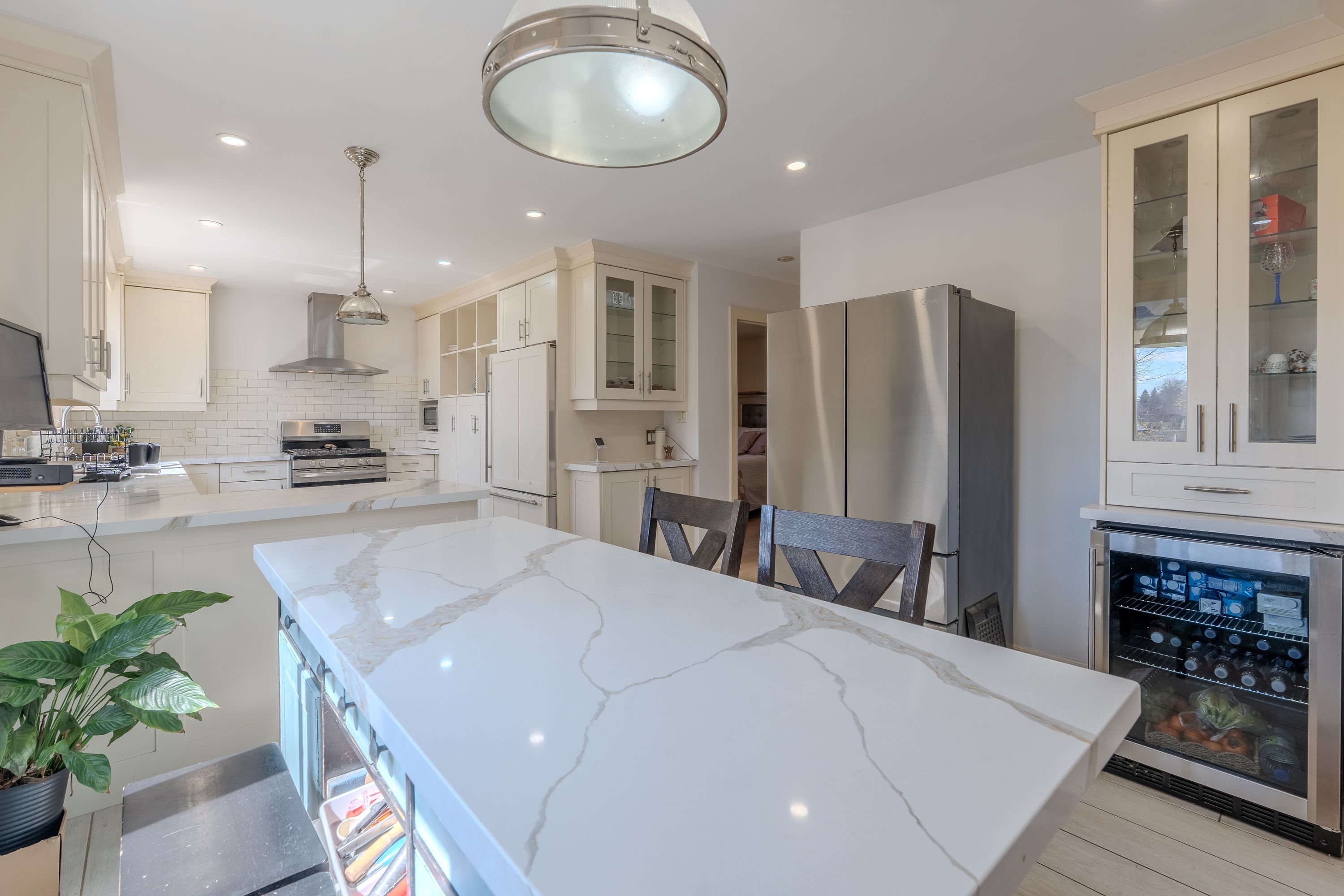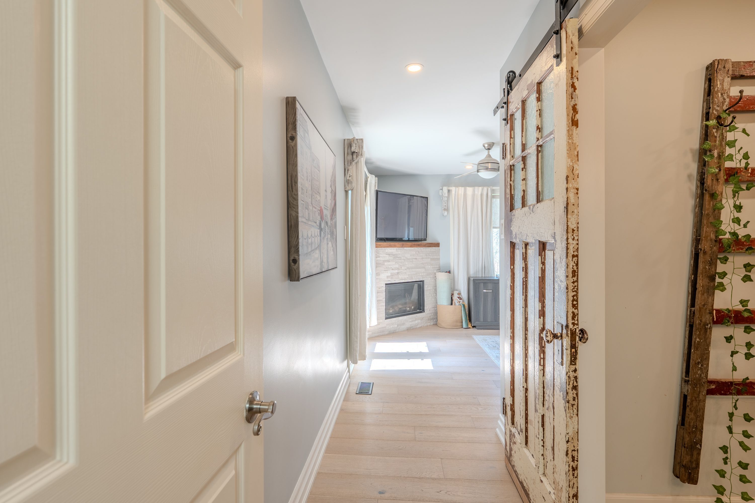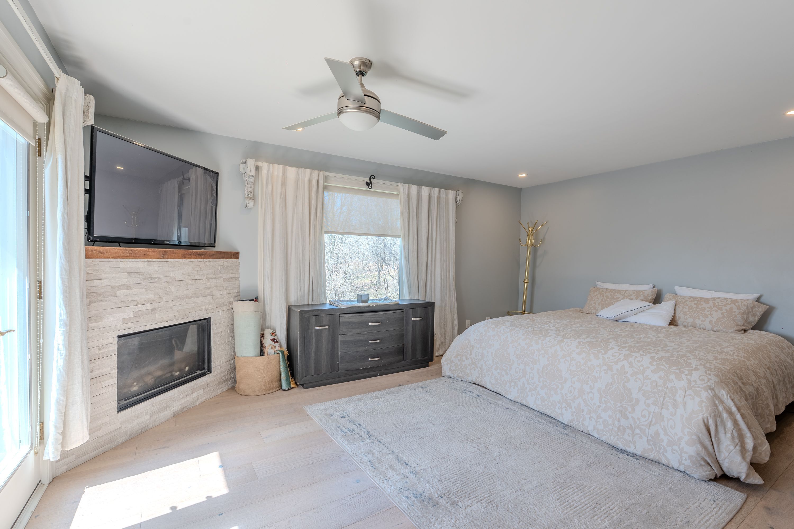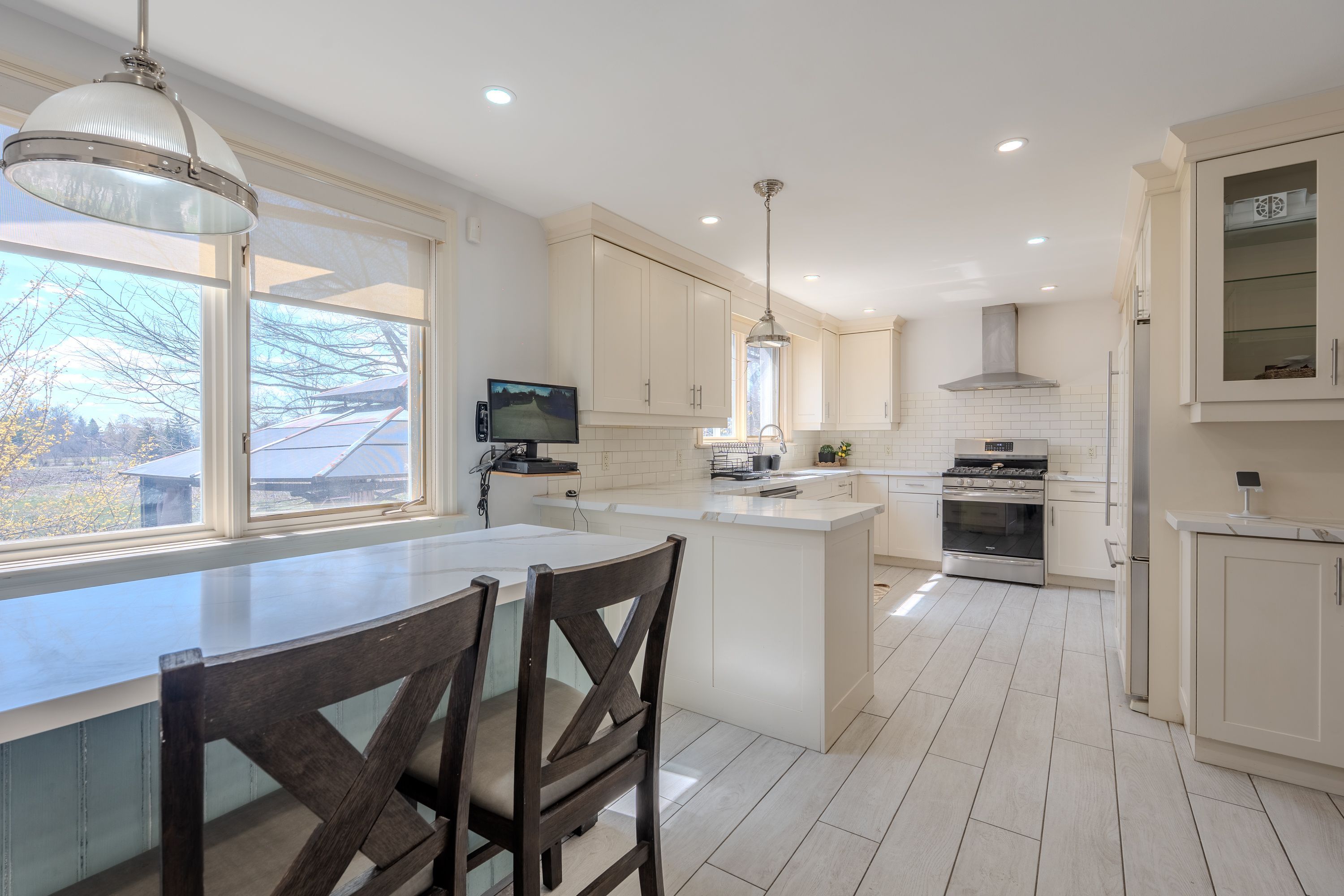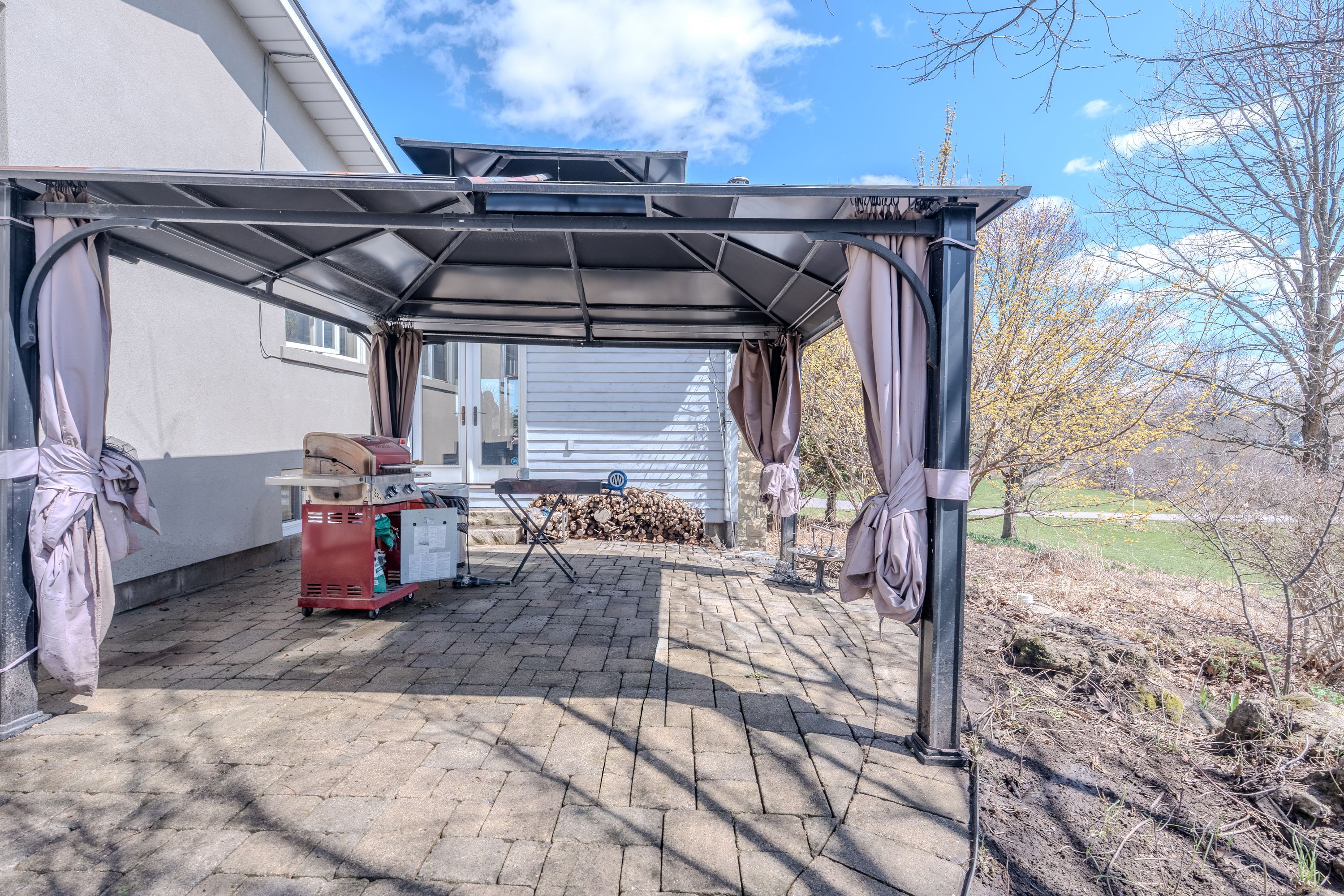 Looking for peace and quiet without sacrificing convenience? This stunning 10. 75-acre country property offers theperfect blend of privacy, space, and proximity to town. Surrounded by nature, it is an ideal setting for family life, withclear night skies full of stars and a peaceful meadow of wildflowers right outside your window, the home is warm,bright, and inviting, featuring exposed wood rafters and a dramatic wall of windows that bring the outdoors in. Spaciousprincipal rooms, hardwood floors, wood and gas fireplaces, main floor laundry, and thoughtful updates throughoutmake this home as functional as it is charming. The impressive great room is perfect for family gatherings, quietrelaxation, or cozy evenings by the fire, the private primary bedroom wing offers a gas fireplace, its own outdoor patio,and a luxurious ensuite with a heated floor and oversized walk-in shower. The finished basement provides exceptionaladditional living space, almost like a second home, outside, the property continues to impress with a 1,500 sq. Ft. Outbuilding featuring 2 separate bays , plus a guest house. Gardeners will appreciate the small greenhouse andoutdoor planting beds, while the scenic pond and tree-lined driveway create a memorable first impression, additionalhighlights include high-speed fiber optic internet, natural gas heating, and a new septic system installed in 2017.