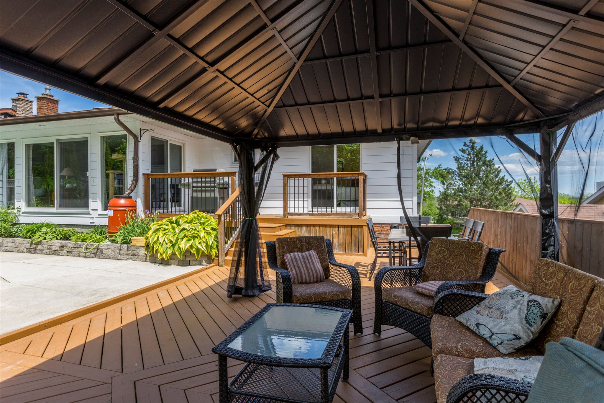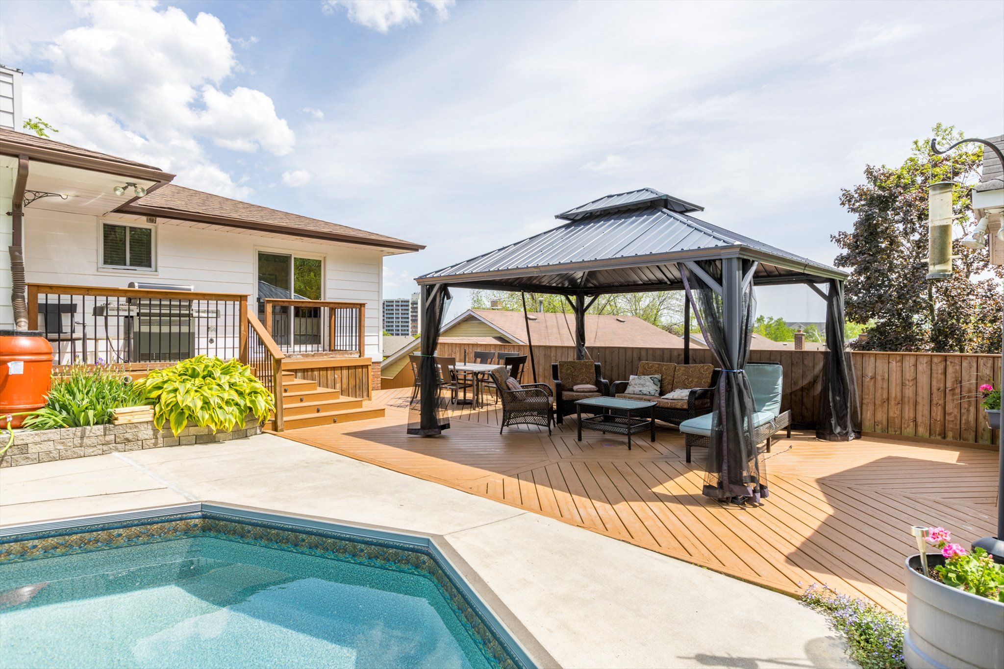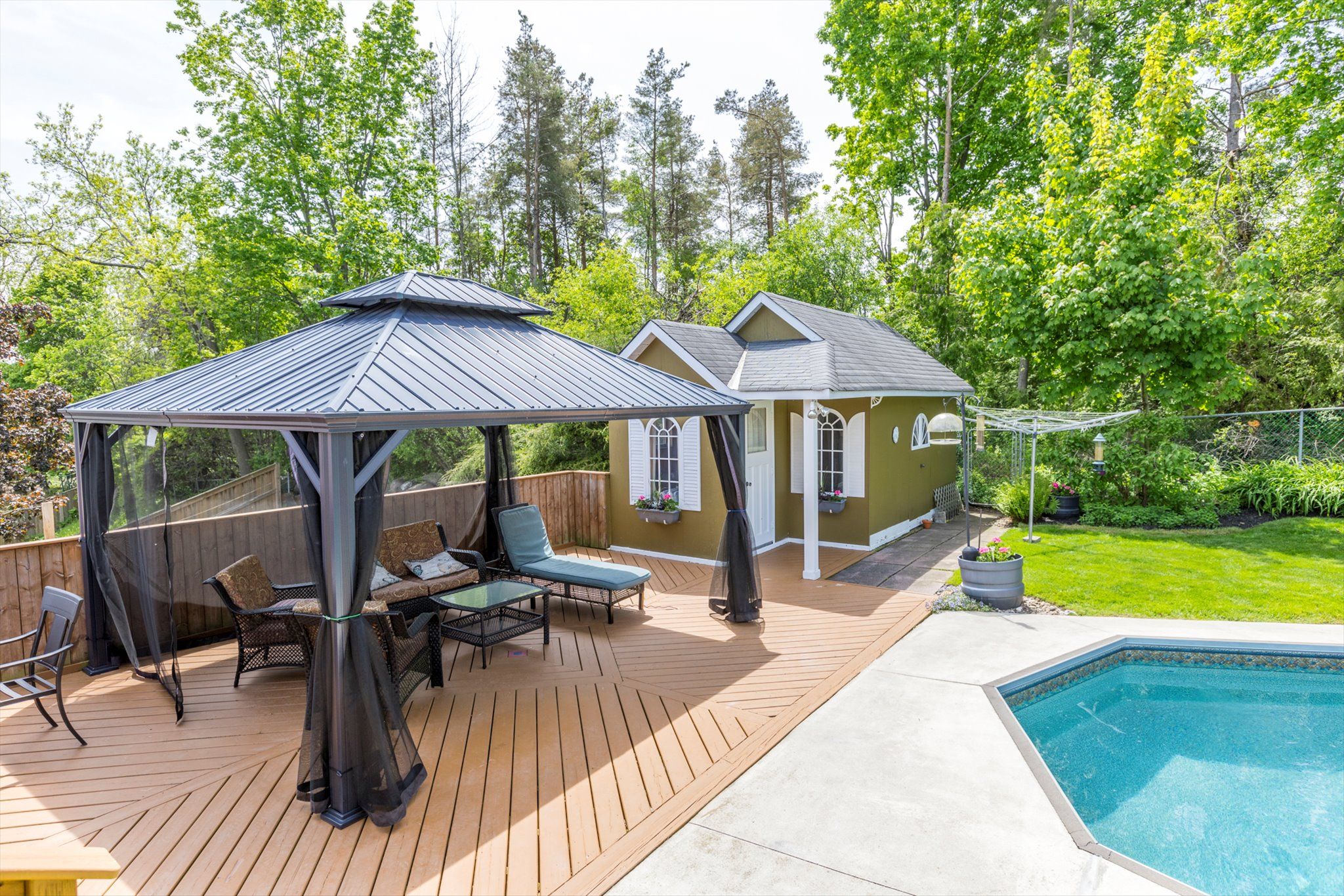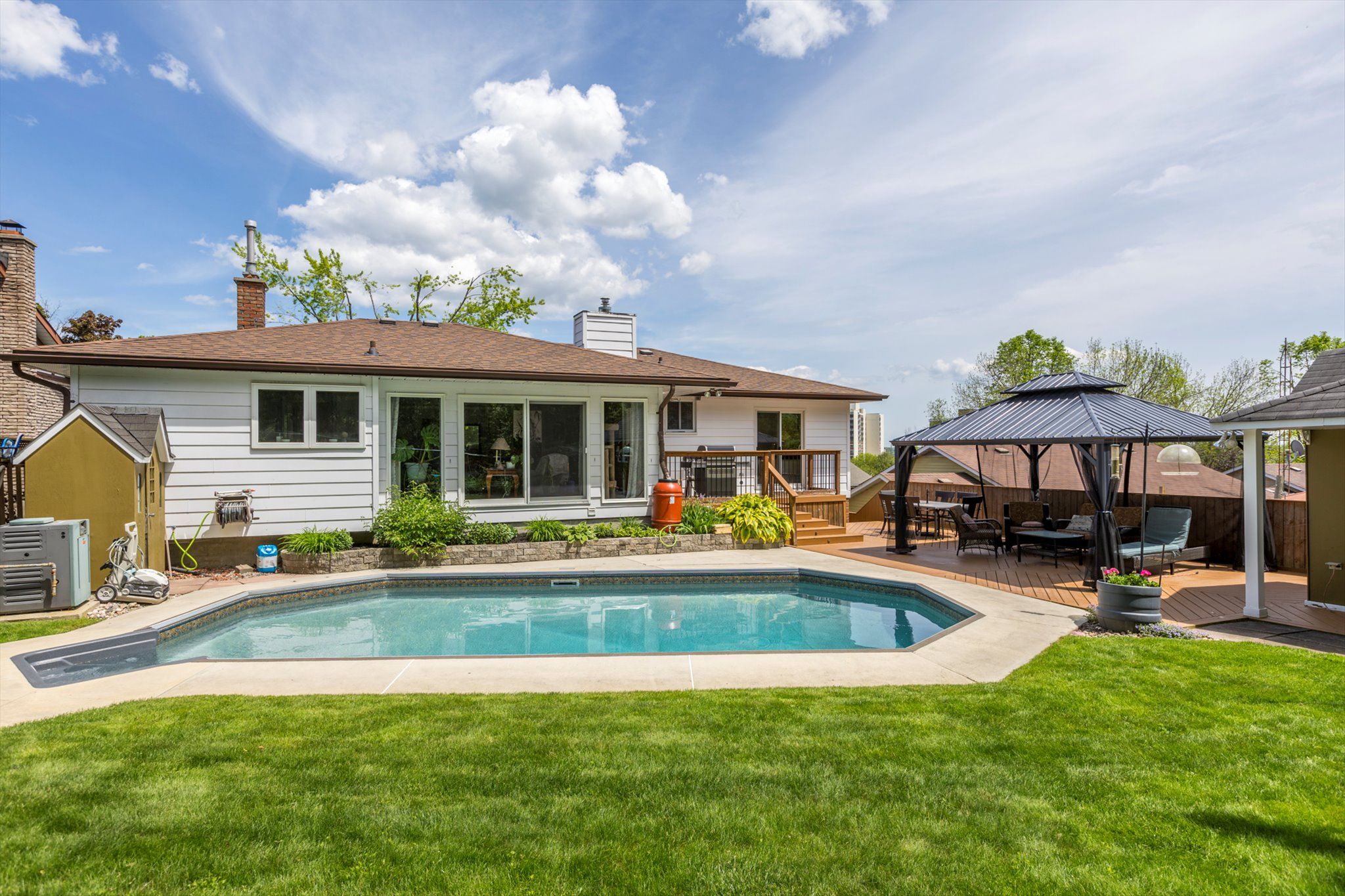 • Private backyard features a fenced inground pool and gazebo for gatherings.