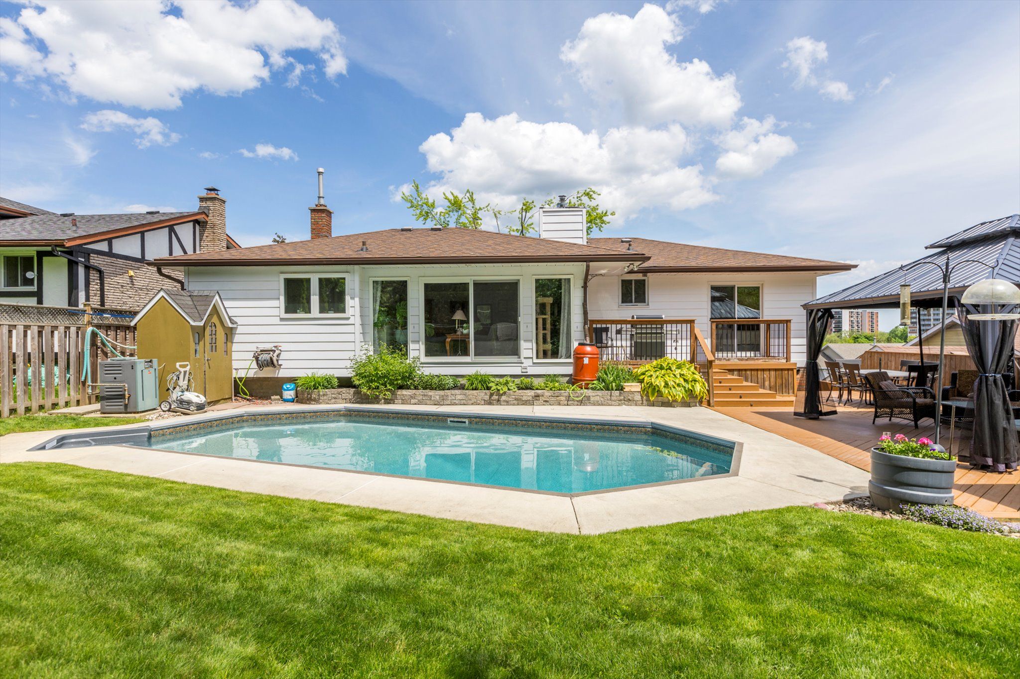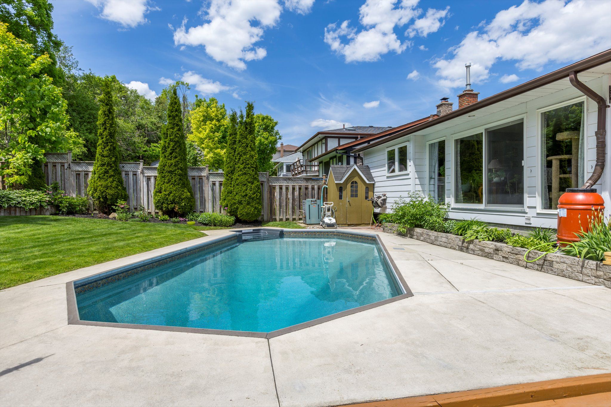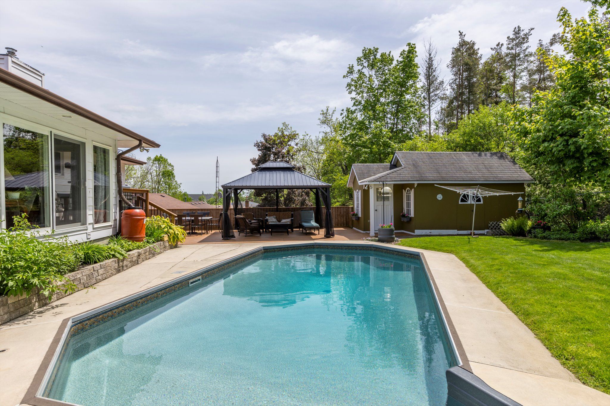 Welcome to 959 golfview road- backing onto kawartha golf & country club. This well-maintained 3 bedroom, 2-bath bungalow offers the perfect blend of privacy, space and location. Backing onto the lush fairways of kawartha golf & country club, this home is nestled in one of peterborough's most desirable neighborhoods, just minutes from amenities and highway 115. Step inside to find a spacious kitchen, and a sun-filled main floor featuring a large living room, bright updated kitchen, and a cozy family room with a gas fireplace overlooking beautifully landscaped backyard. Hardwood floors run throughout the main living area. Three generously sized bedrooms share a 4-piece bathroom with jacuzzi tub. The lower level is ideal for entertaining, boasting a large rec room with wet bar and gas fireplace, an office, 3-piece bath, and a dedicated laundry and storage area. Enjoy your morning coffee on the recently resurfaced front porch with glass railings, or host family and friends in the private backyard retreat featuring a fenced inground pool, deck with12*14 gazebo, and a versatile workshop/change room. Complete with a 1. 5 car garage, this property offers lifestyle and location. Don't miss this rare opportunity to live beside the golf course in a move-in-ready home with unbeatable outdoor space.