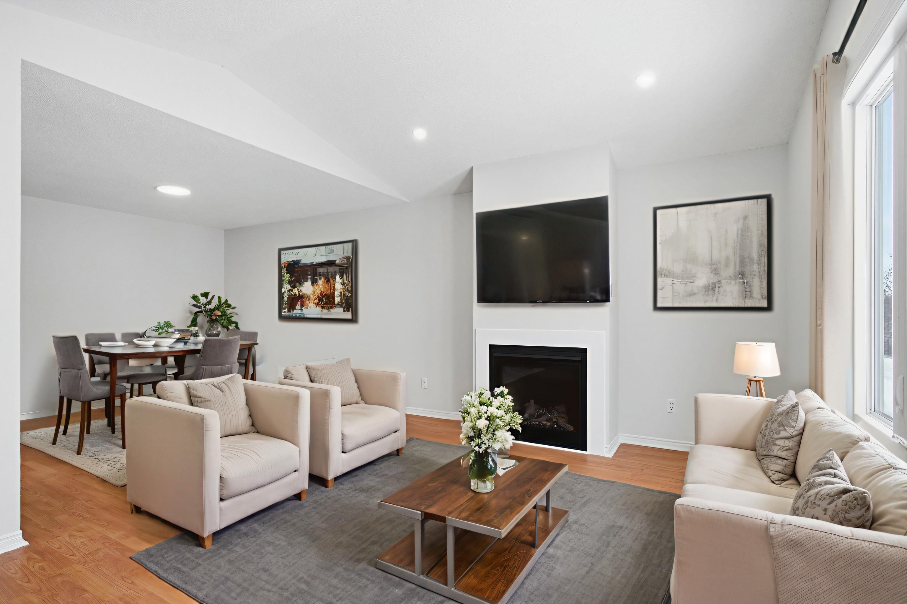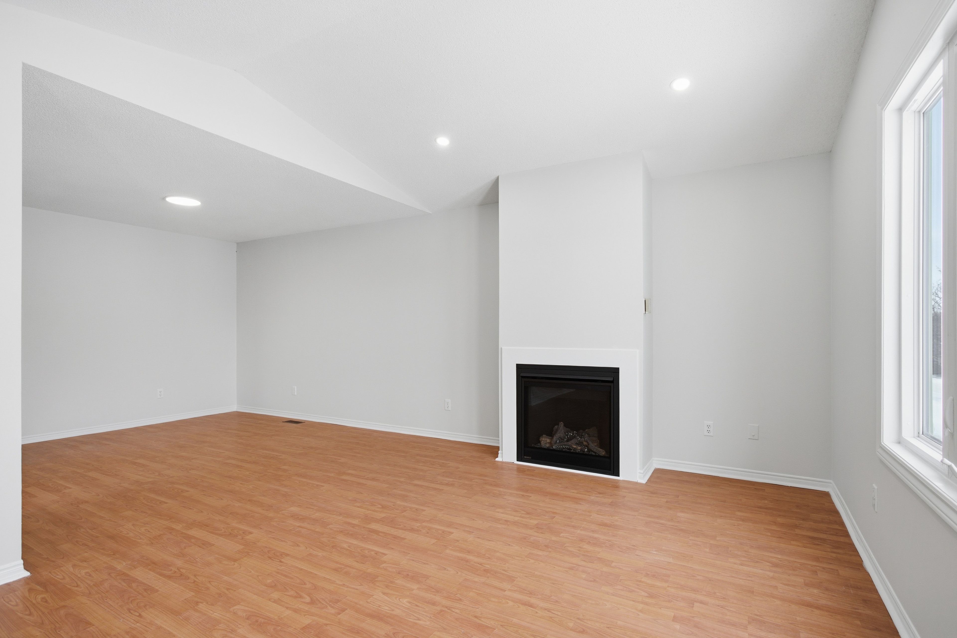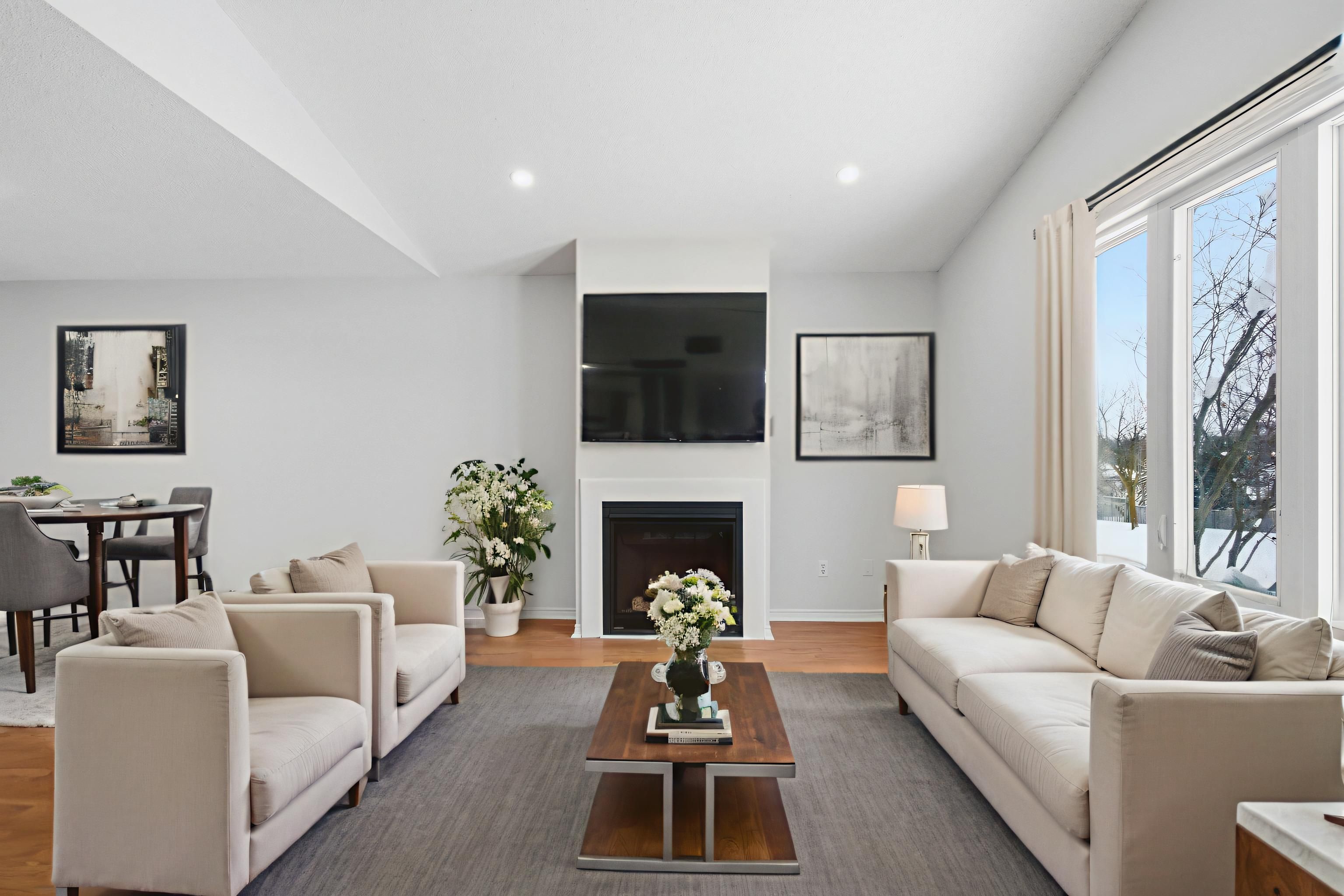 • Bright living room features a cozy gas fireplace for relaxation.